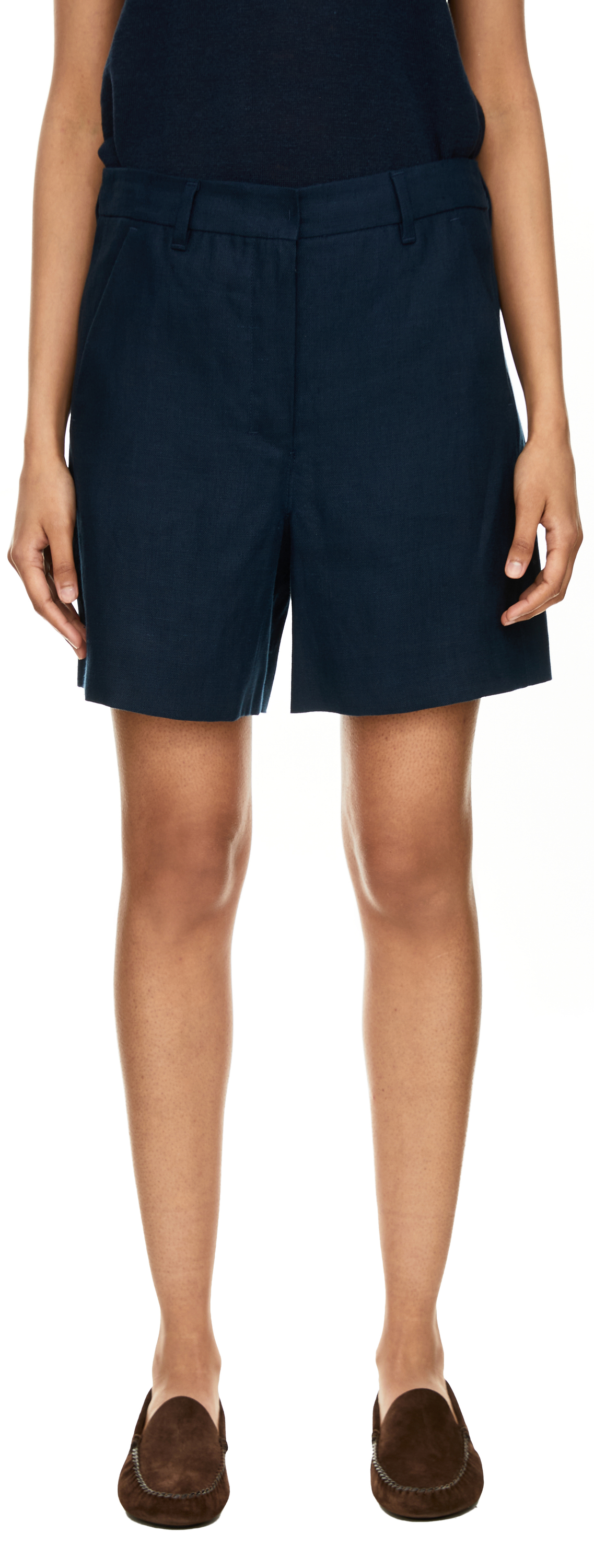 Die Shorts 'Party' in Marineblau von 'S Max Mara wurden aus reinem Leinen gefertigt und besticht durch das zeitlose Design. Der Haken-, Knopf- und Reißverschluss sowie seitliche Eingrifftaschen und rückseitige Paspeltaschen runden das Modell funktional ab.