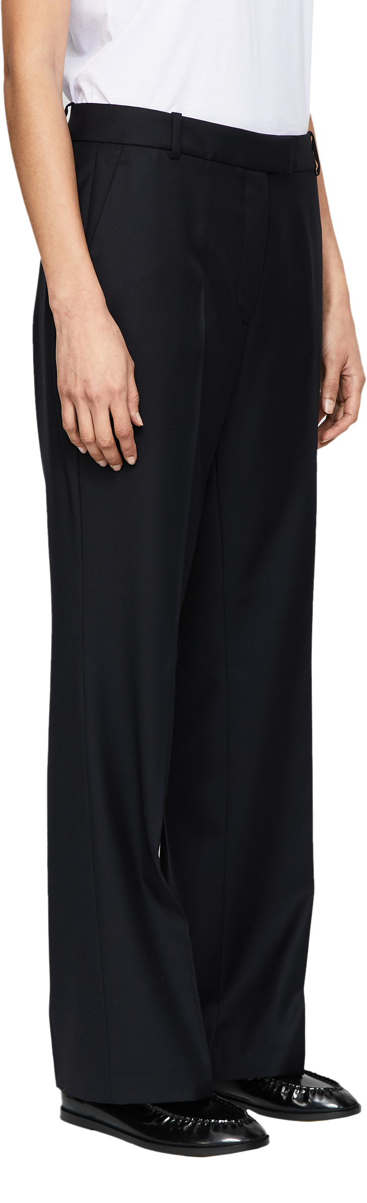 Die Hose 'Lumira Wool' in Navy von Iris von Arnim wurde aus hochwertiger Wolle gefertigt und besticht durch das zeitlose Design. Das Modell verfügt über ein ausgestelltes Bein, das durch Bügelfalten elegant betont wird. Die Gürtelschlaufen, seitliche Eingrifftaschen sowie rückseitige Paspeltaschen vollenden das Design auf klassische Weise.