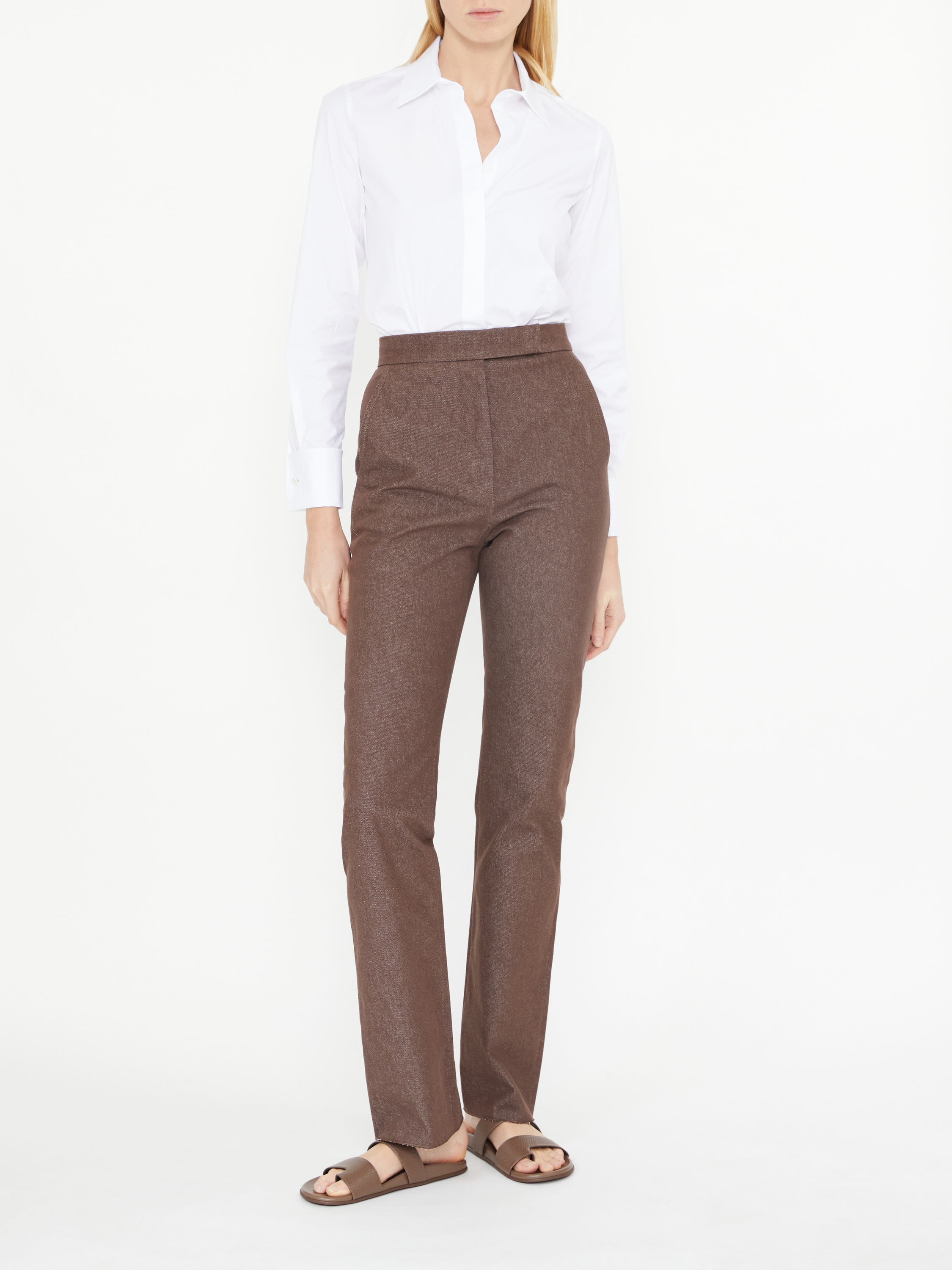 Die Hose 'Galizia' in Dunkelbraun von Max Mara wurde aus reiner Baumwolle gefertigt und besticht durch ihr weites Bein. Abgerundet wird das Design durch eine hohe Taille und elegante Bundfalten.