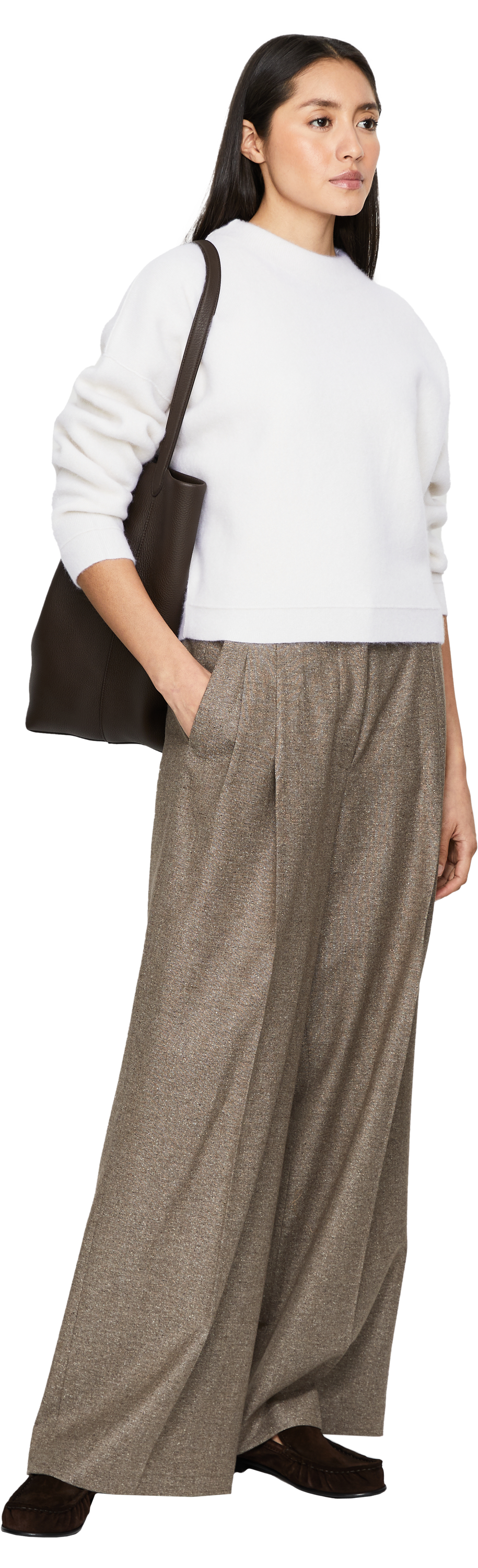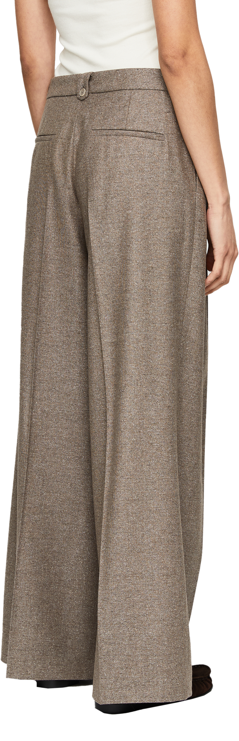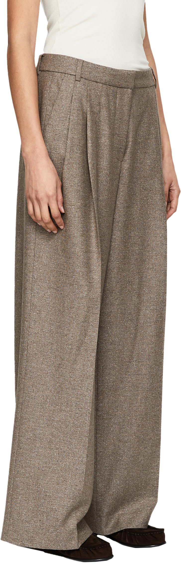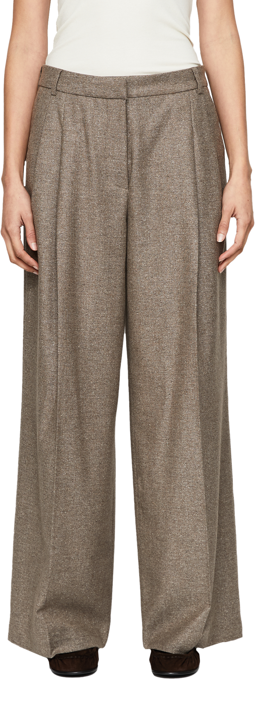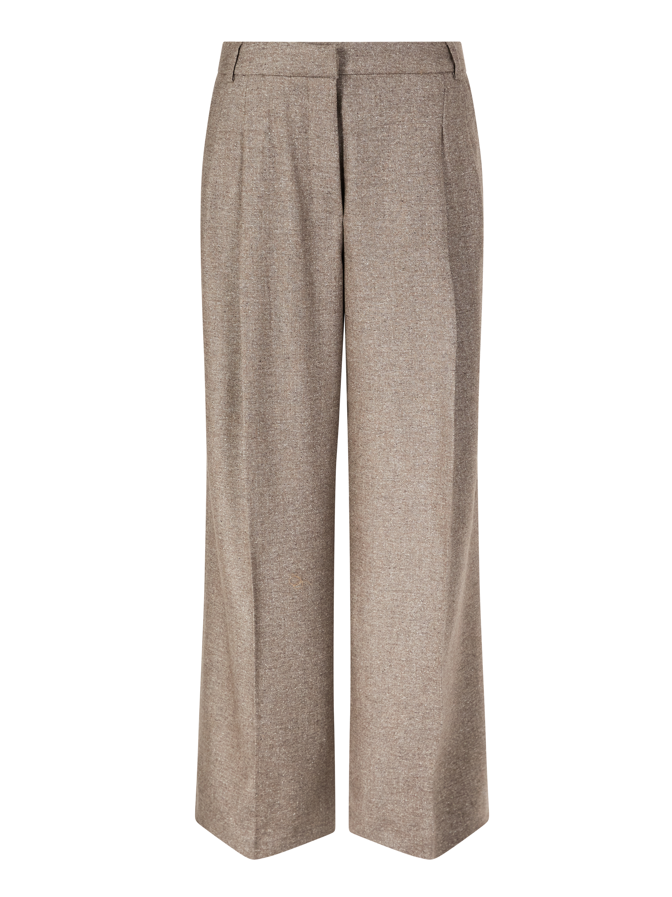 Die Hose 'Lupina Mouline' in Braun von Iris von Arnim wurde aus einer hochwertigen Woll-Seidenmischung gefertigt und besticht durch die weite Passform. Das gerade Bein, der gewebte Stoff in Mouliné-Optik, die Gürtelschlaufen und die Bundfalten runden das Design stilvoll ab.