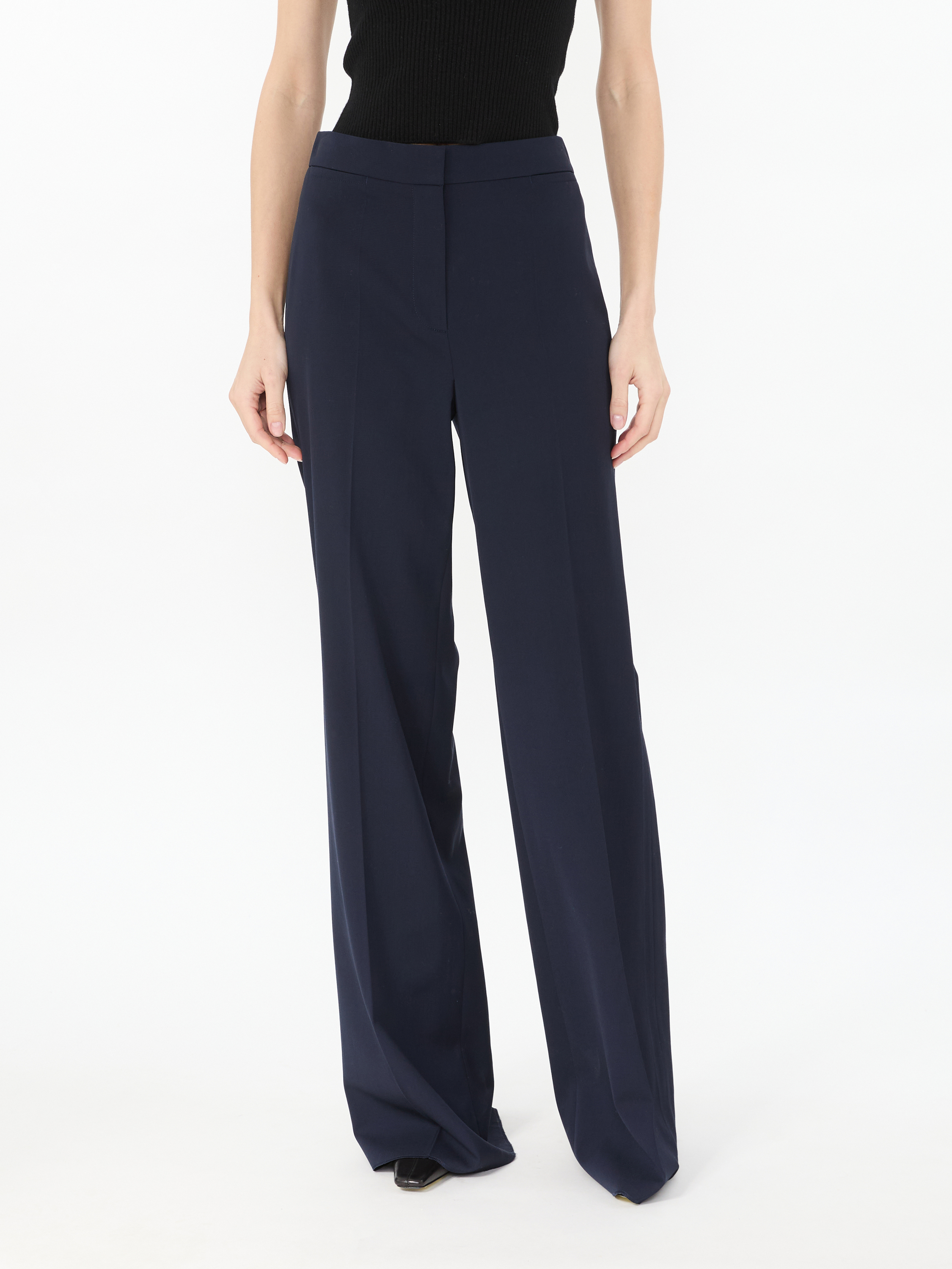 Diese Hose in Marineblau von Stella McCartney wurde aus hochwertigen Woll-Mischung gefertigt und besticht durch den klassischen Schnitt. Die angenehme Haptik und die hohe Leibhöhe zeichnen diesen femininen Look aus.