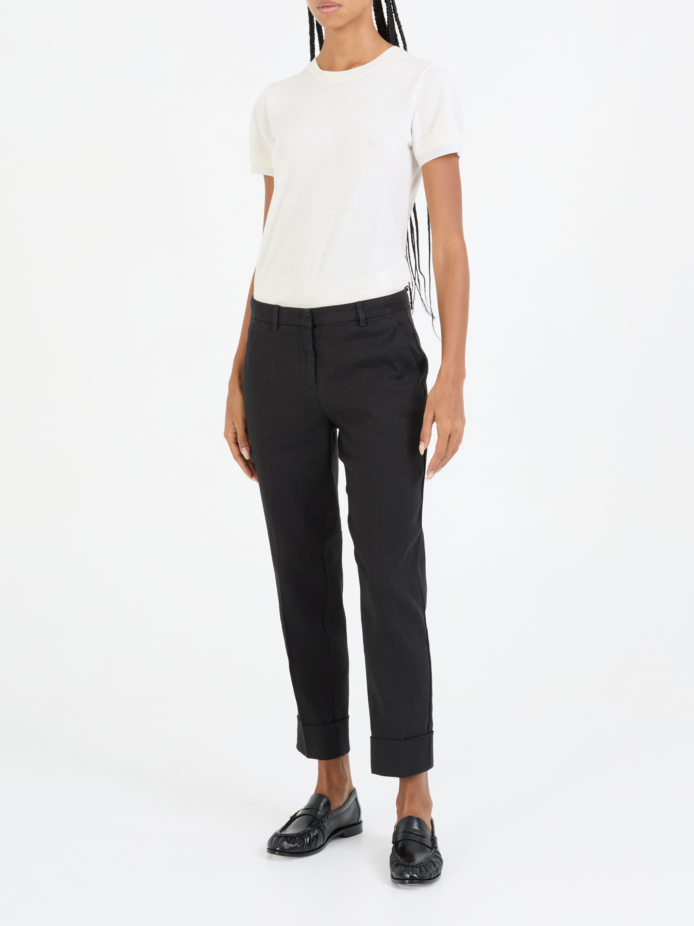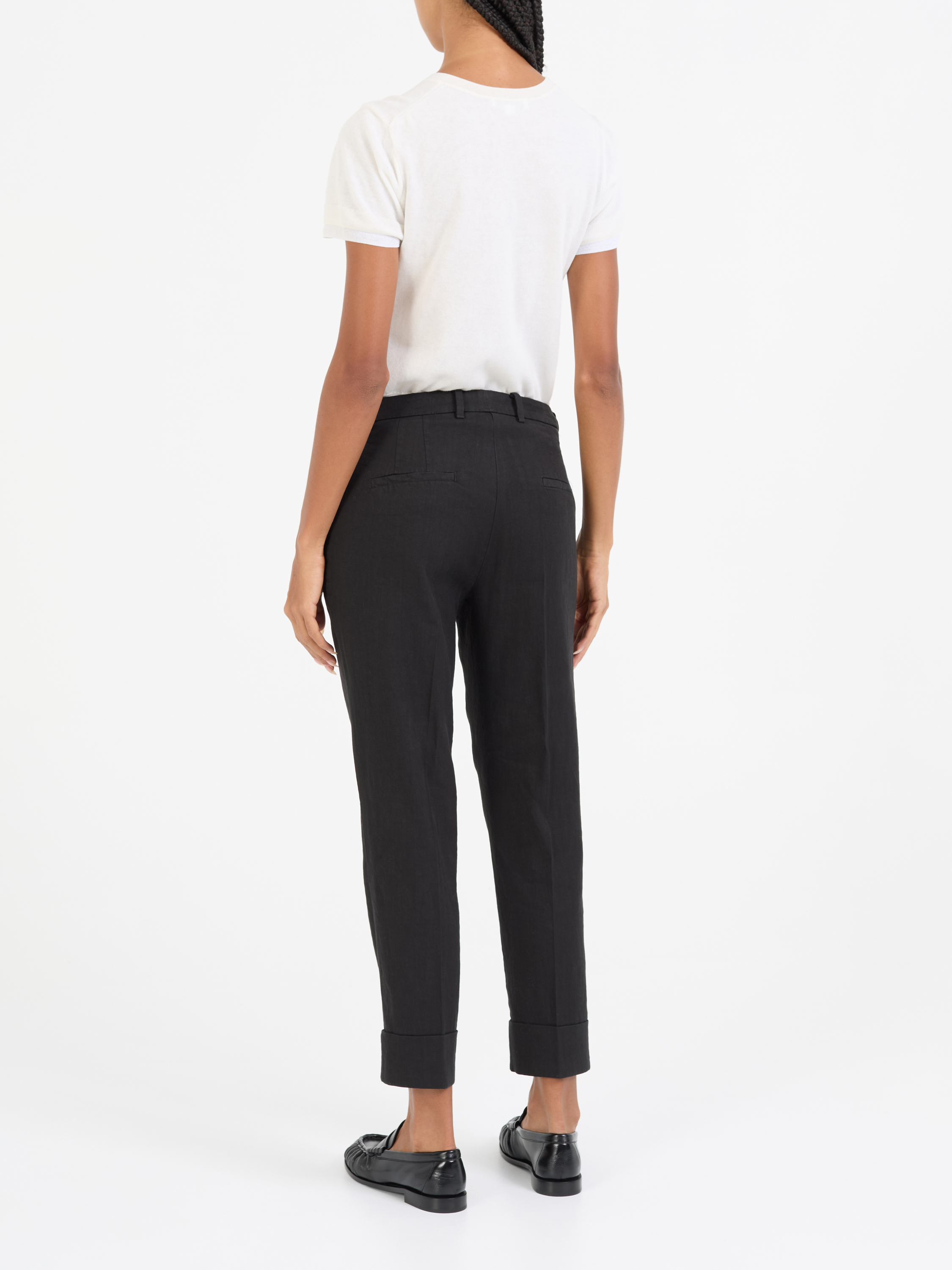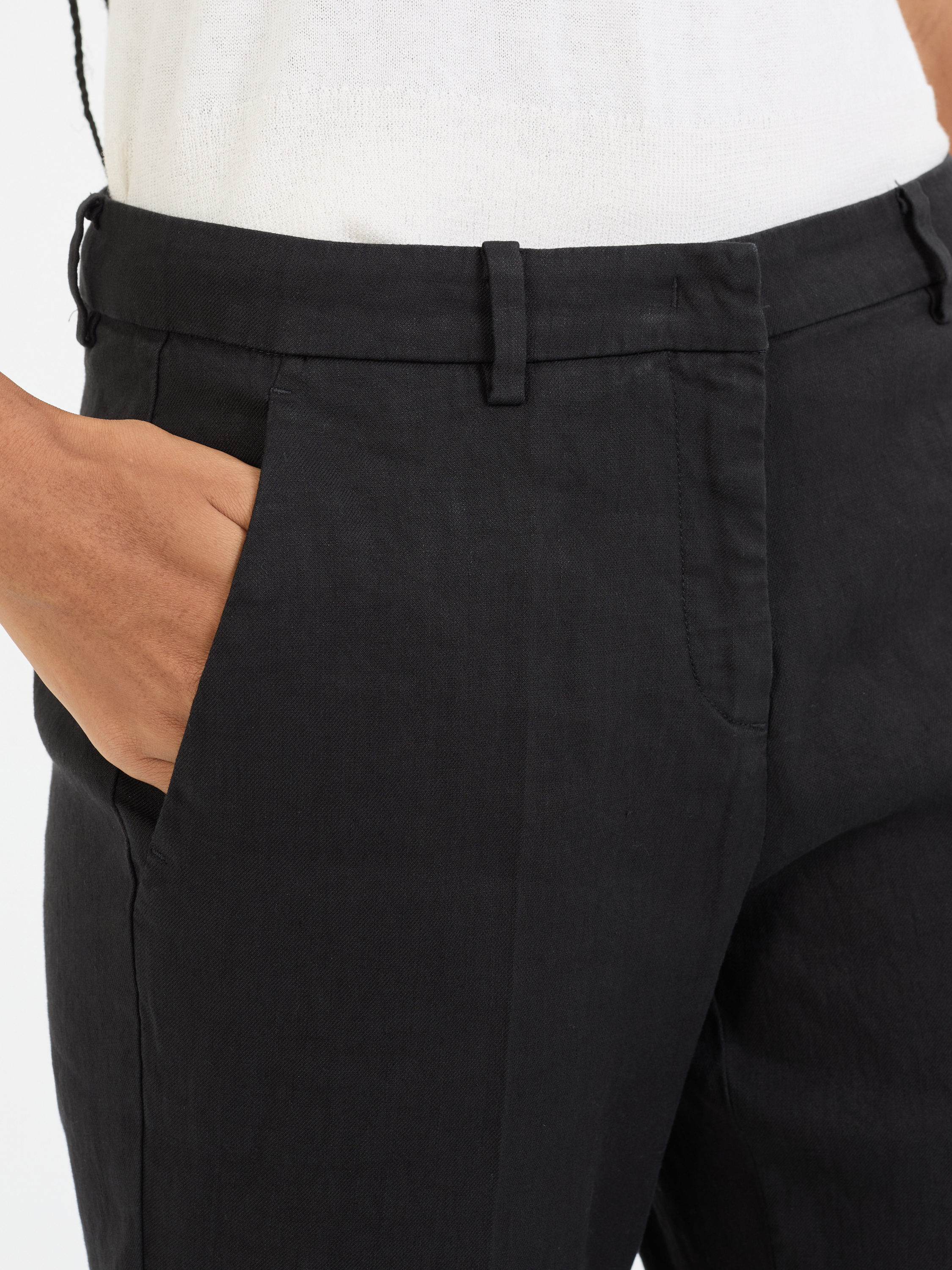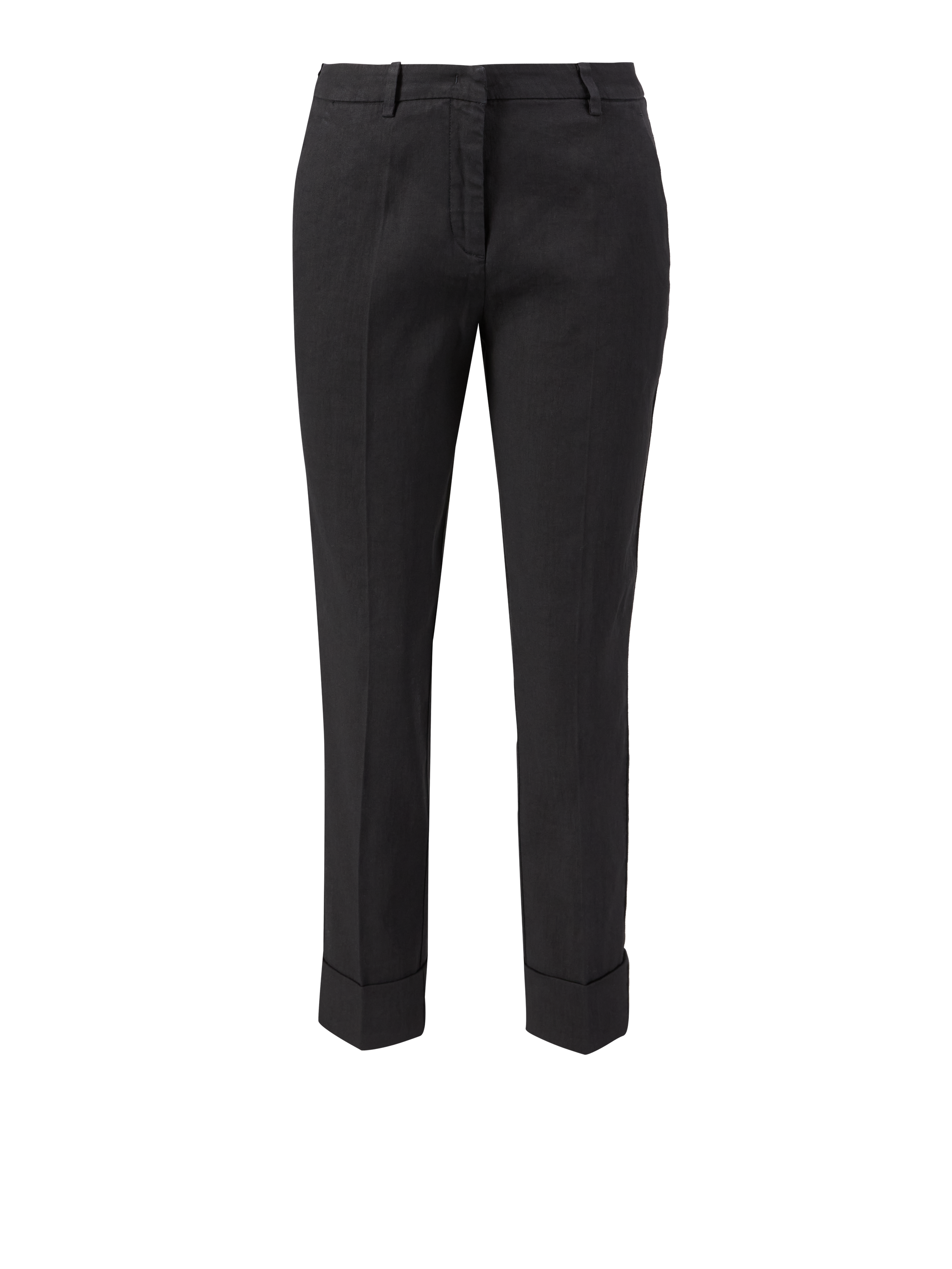 Die Hose 'Krystal' in Schwarz von Cambio wurde aus Leinen und Baumwolle gefertigt und besticht durch ein klassisches Design. Die mittlere Leibhöhe, die schmale Passform und die seitlichen Eingrifftaschen perfektionieren dieses Modell.