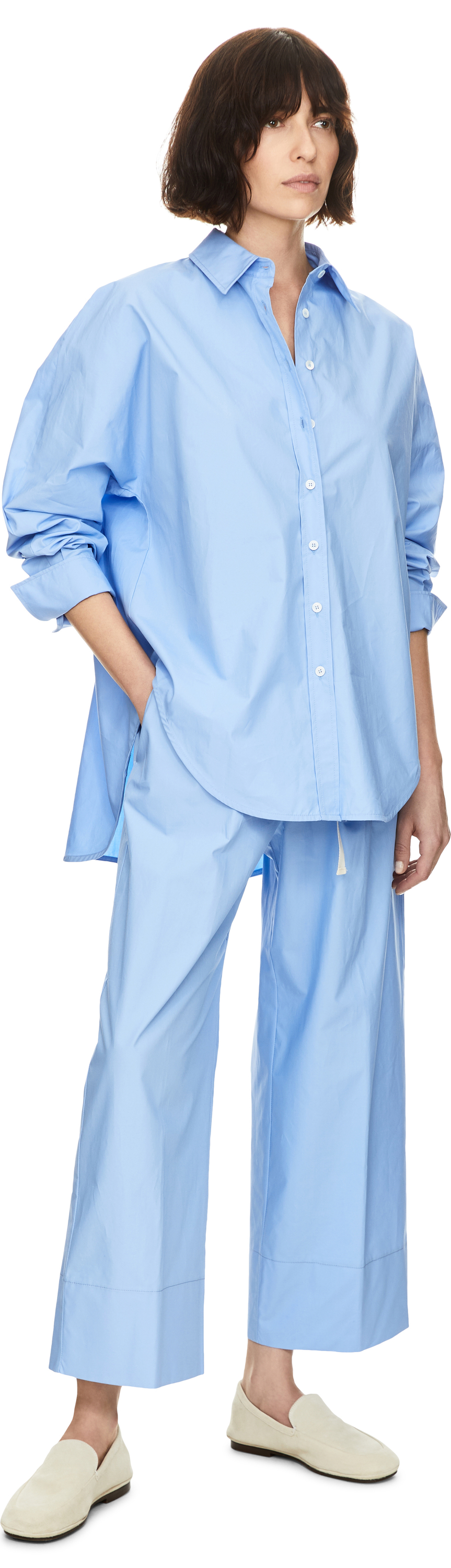 Durch die besonders hochgedrehte, dicht gewebte Baumwolle erhält jedes Stück einen luxuriösen Look und eignet sich ideal für den sommerlichen City-Alltag, ohne an Stil einzubüßen. Kombinieren Sie die Teile entweder ton-in-ton oder setzen Sie gezielt auf spannende Color-Blocking-Looks.