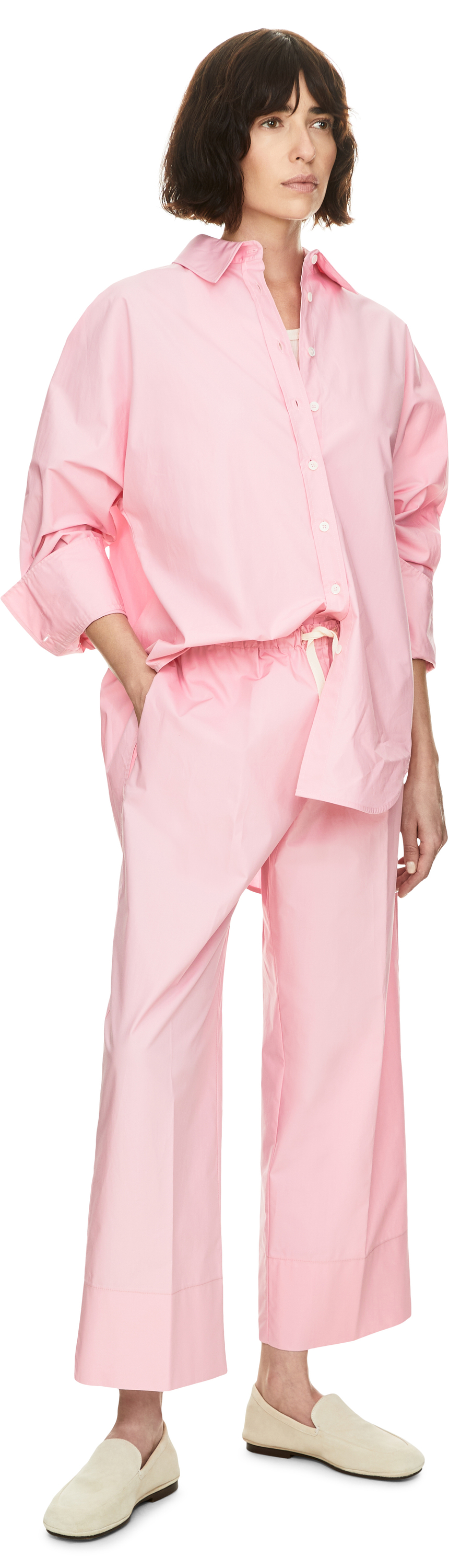 Durch die besonders hochgedrehte, dicht gewebte Baumwolle erhält jedes Stück einen luxuriösen Look und eignet sich ideal für den sommerlichen City-Alltag, ohne an Stil einzubüßen. Kombinieren Sie die Teile entweder ton-in-ton oder setzen Sie gezielt auf spannende Color-Blocking-Looks.