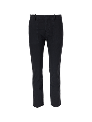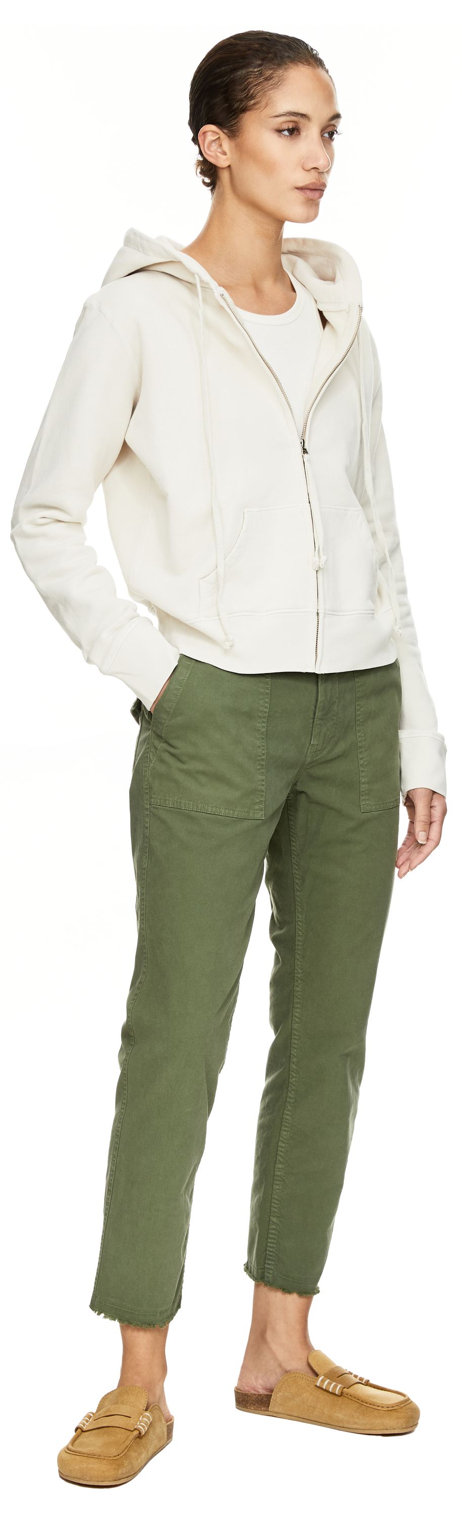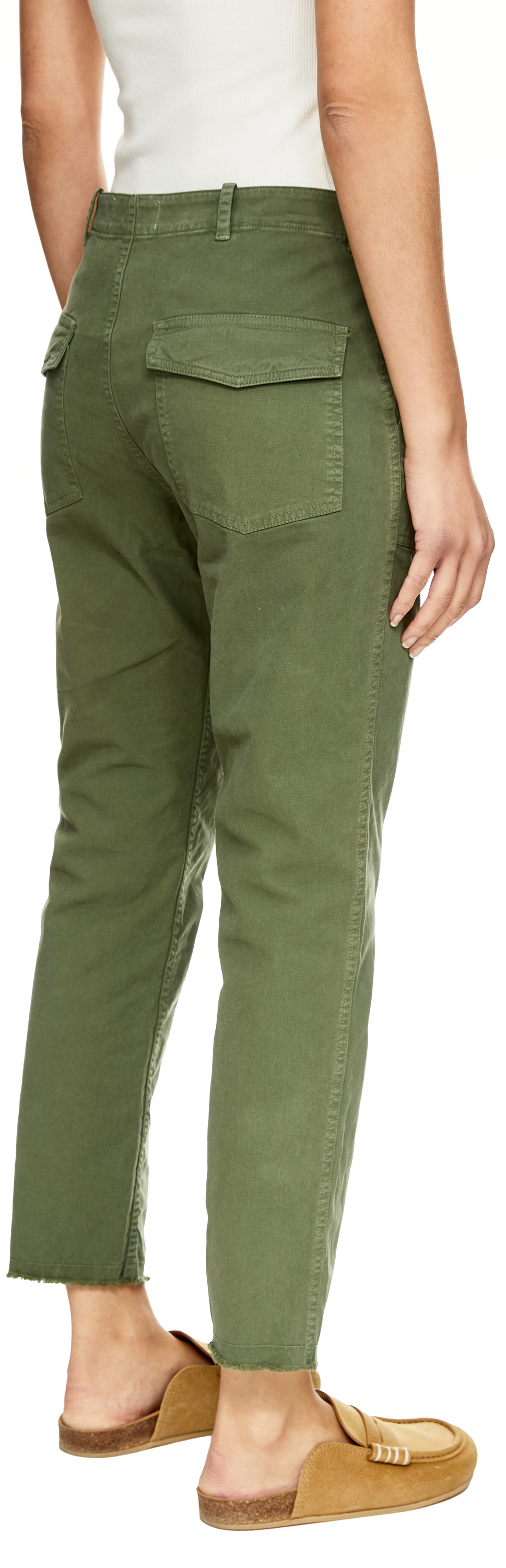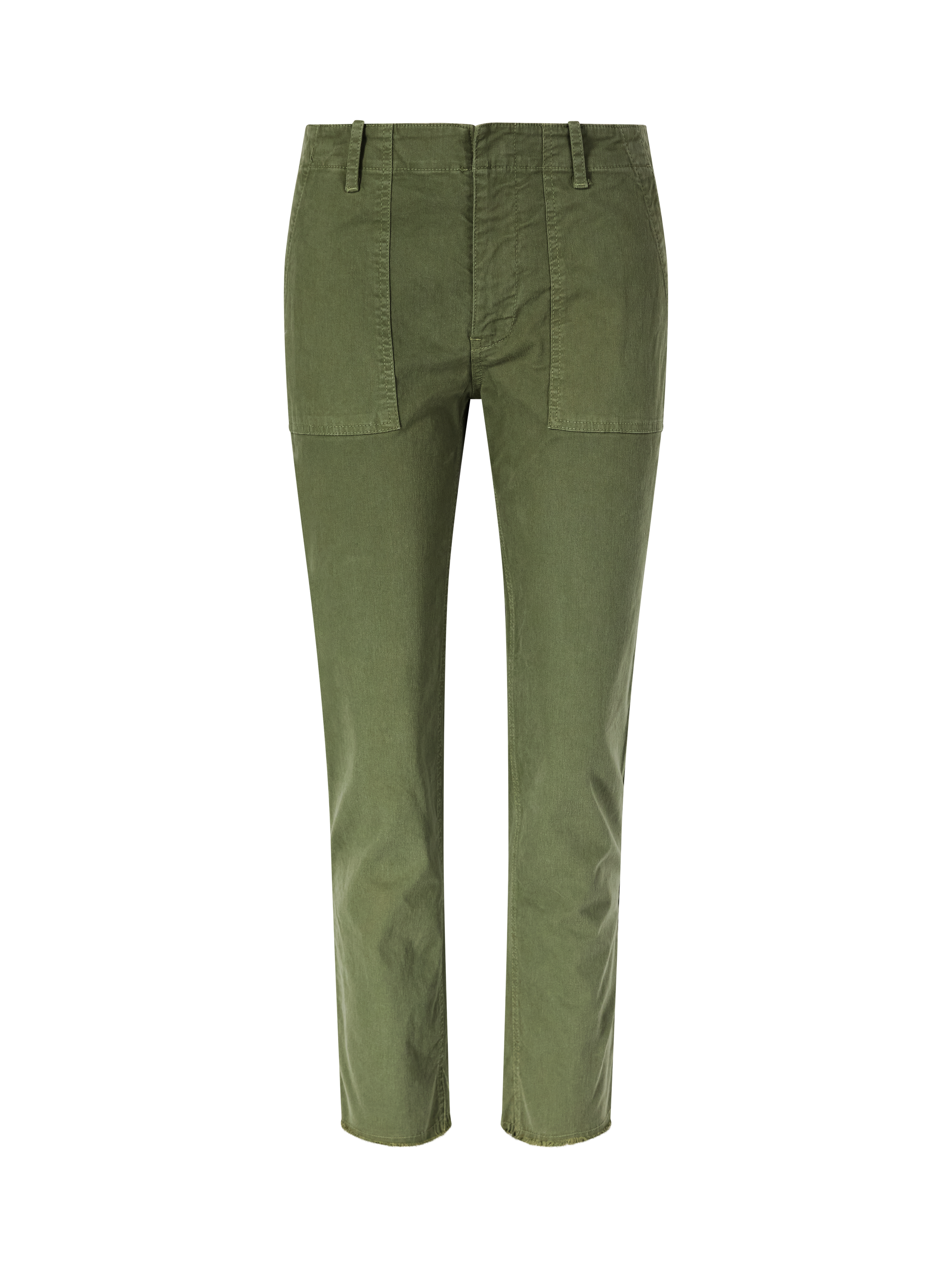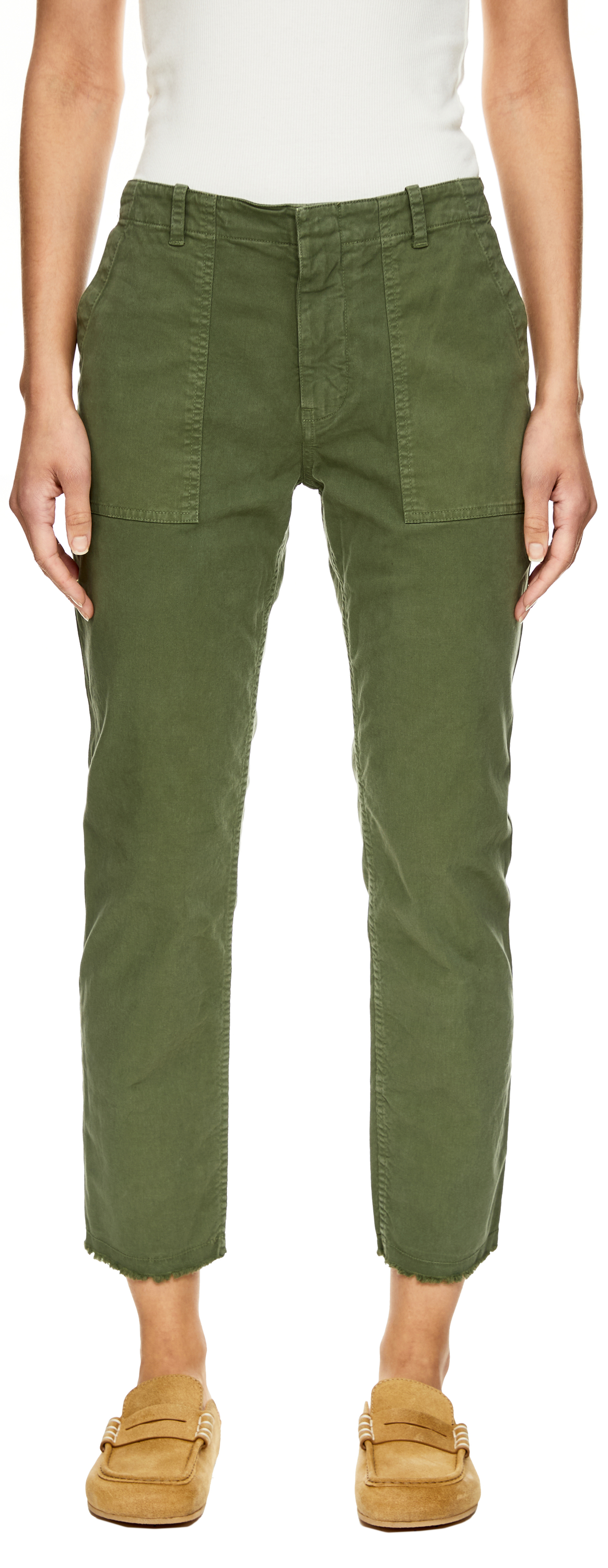 Die Hose 'Jenna' in Grün von NILI LOTAN wurde aus hochwertiger Baumwolle gefertigt und besticht durch das knöchellange Bein mit feinem Fransensaum. Der Slim Fit und die niedrige Leibhöhe formen eine feminine Silhouette. Ergänzt wird das Modell durch funktionale Details wie seitliche Eingrifftaschen und Gesäßtaschen mit Patten.
