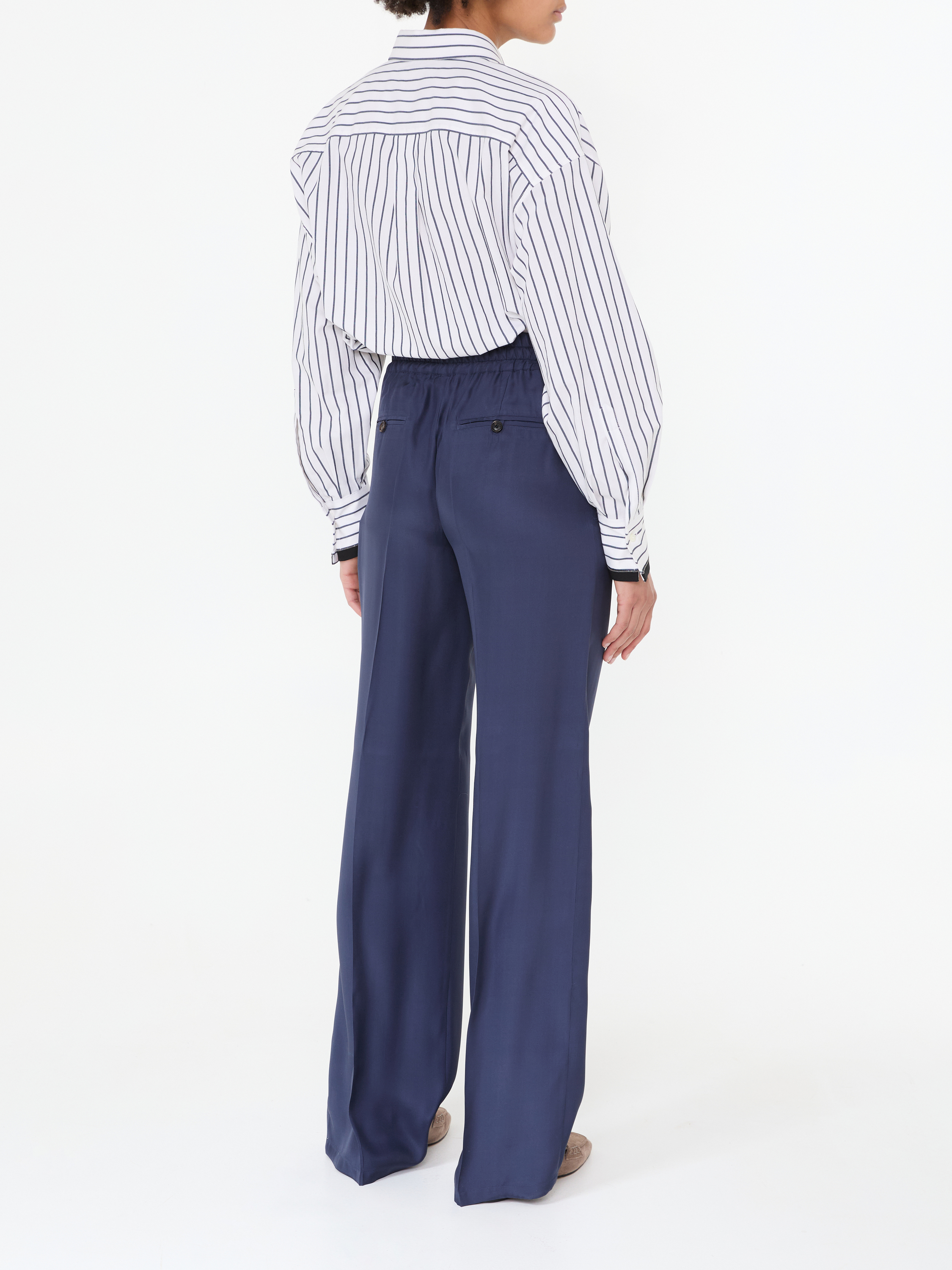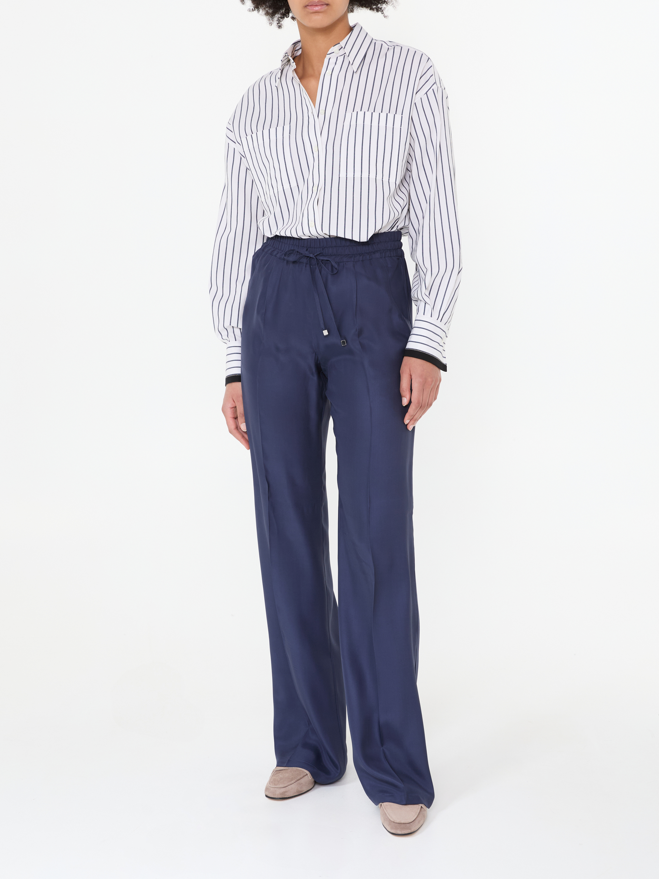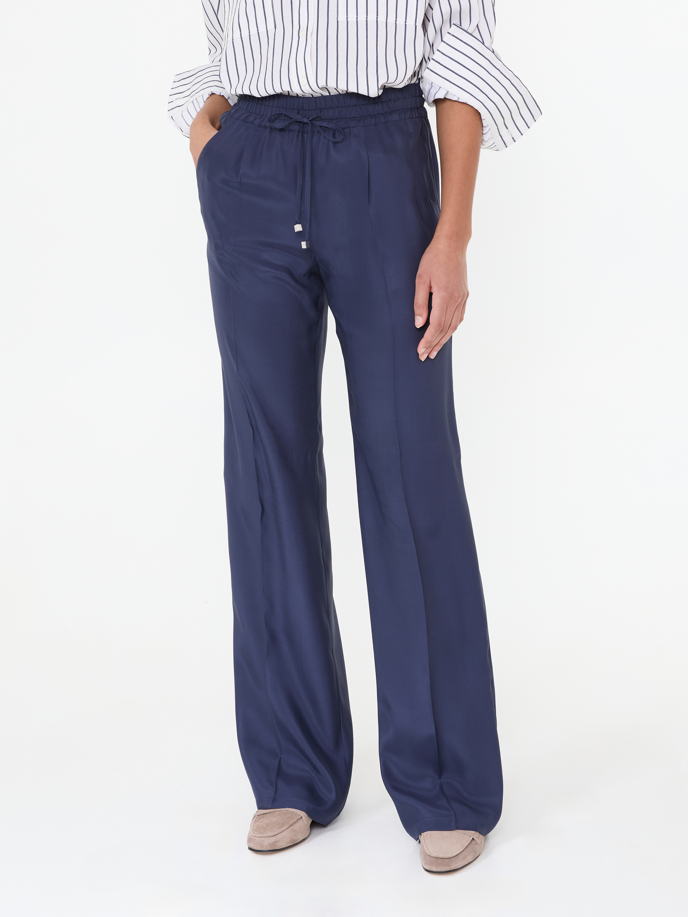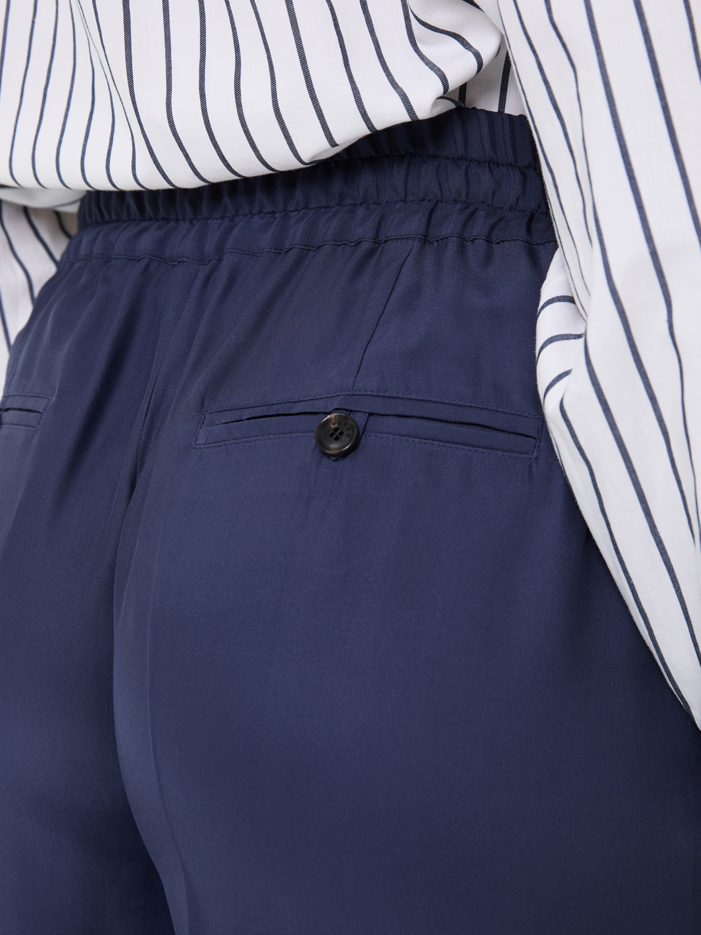 Diese Hose in Blau von Kiton wurde aus hochwertiger Seide gefertigt und besticht durch das klassische Design. Die Bügelfalten und der legere Bund mit Tunnelzug sorgen für einen eleganten Fall des hochwertigen Stoffes. Die seitlichen Eingrifftaschen und die rückseitigen Paspeltaschen mit Knopfverschluss runden das Design stilvoll ab.