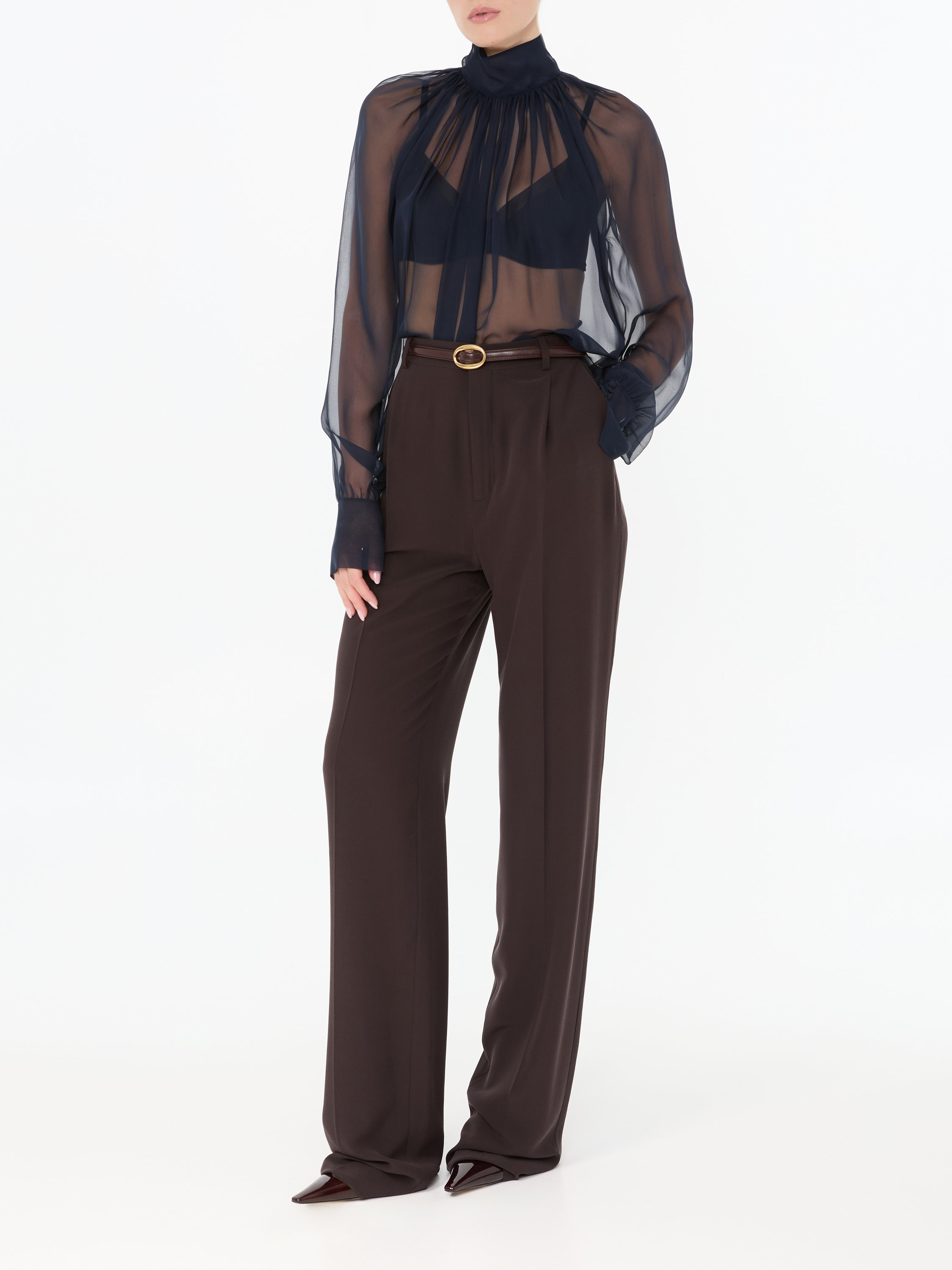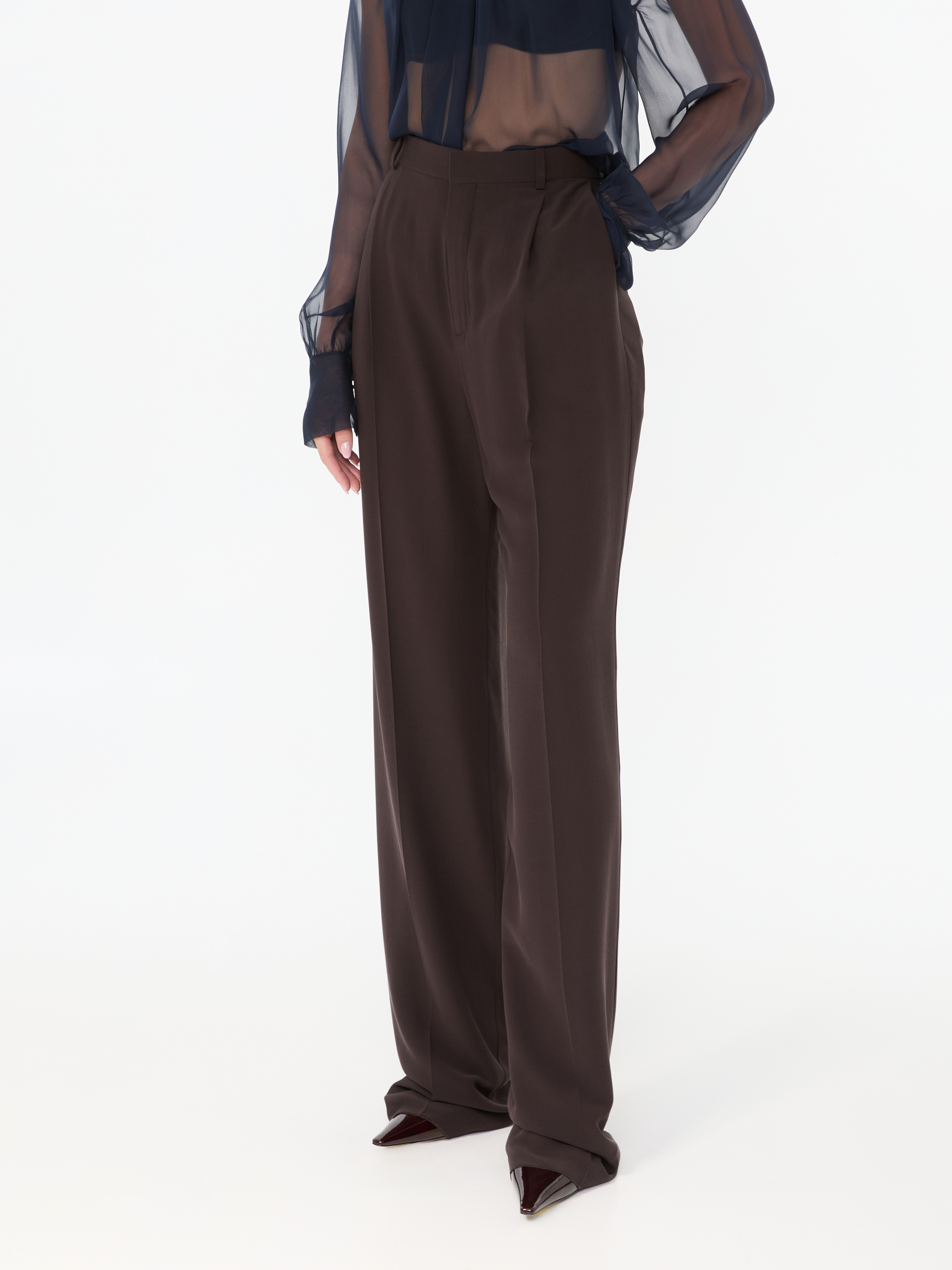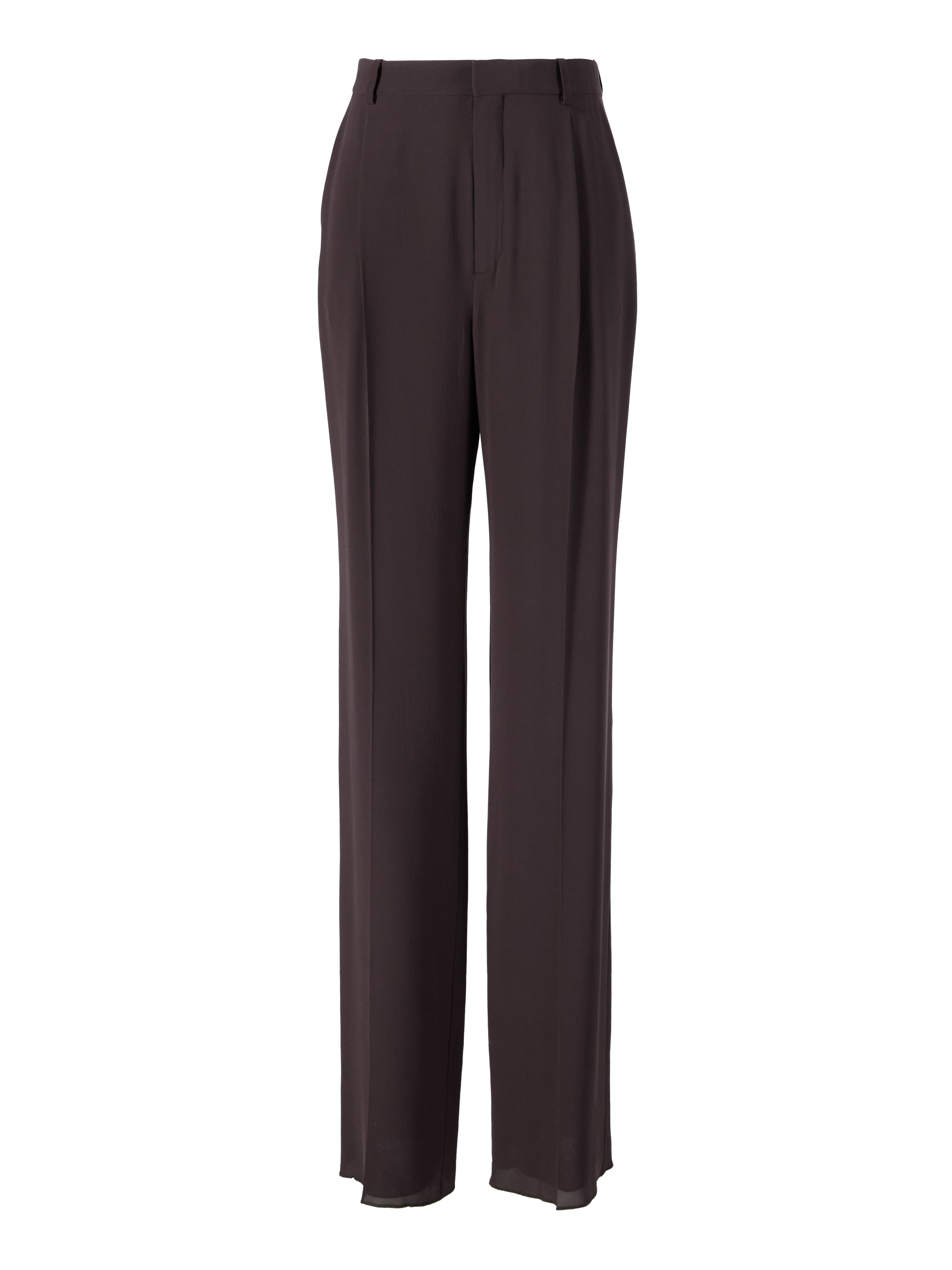 Diese Hose in Braun von Saint Laurent wurde aus reiner Seide gefertigt und besticht durch das klassische Design. Der gerade Schnitt und die Bügelfalten runden dieses zeitlose Design stilvoll ab.