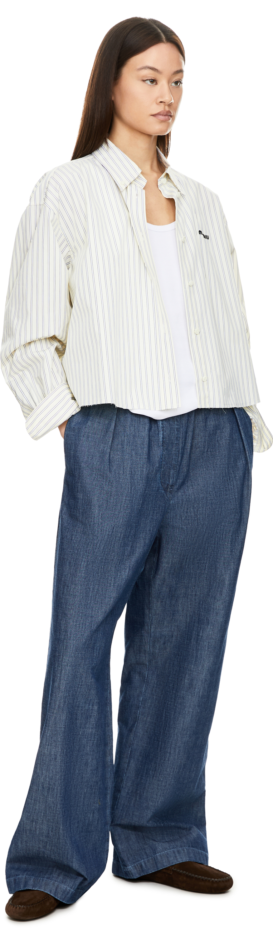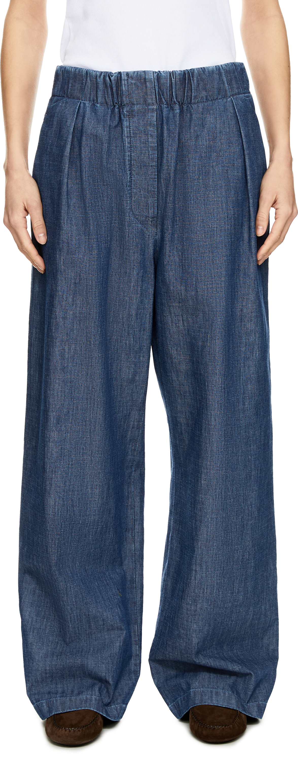 Diese Stoffhose in Mittelblau von JIL SANDER wurde aus Baumwoll-Chambray gefertigt und besticht durch die lässige Passform. Das weite Bein, der tief sitzende Schritt sowie die Seiten- und Gesäßtaschen runden diese Hose perfekt ab.