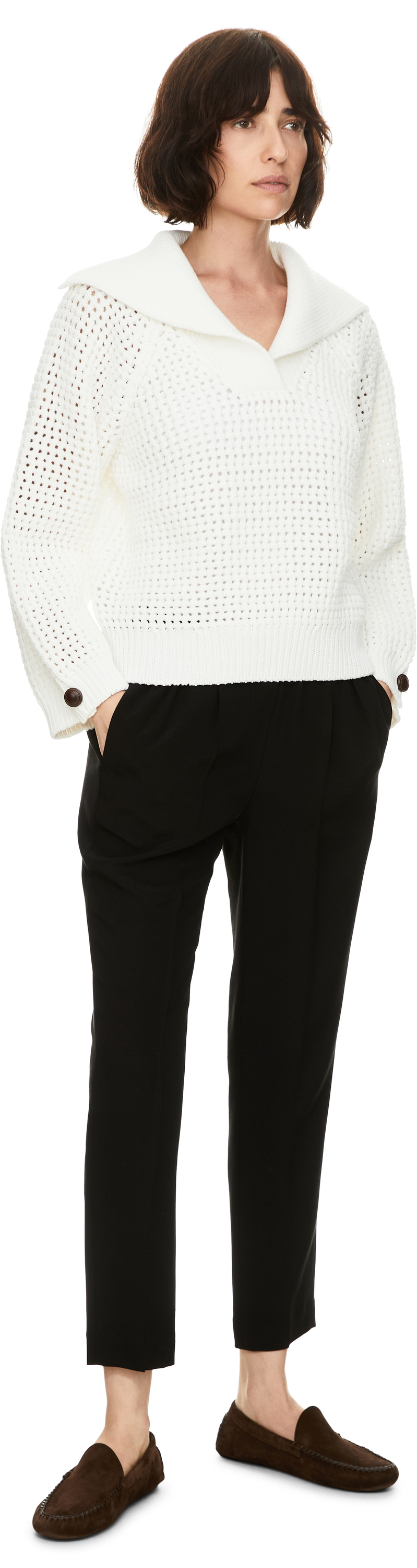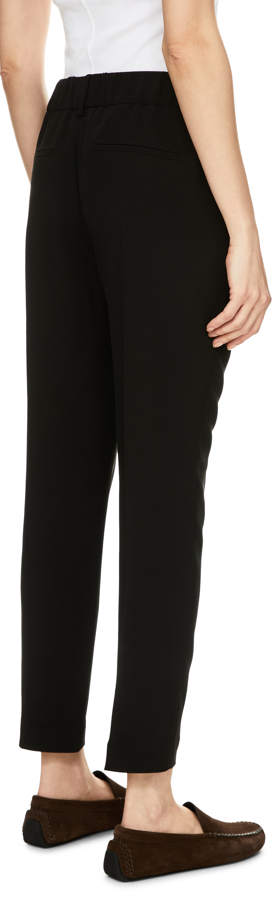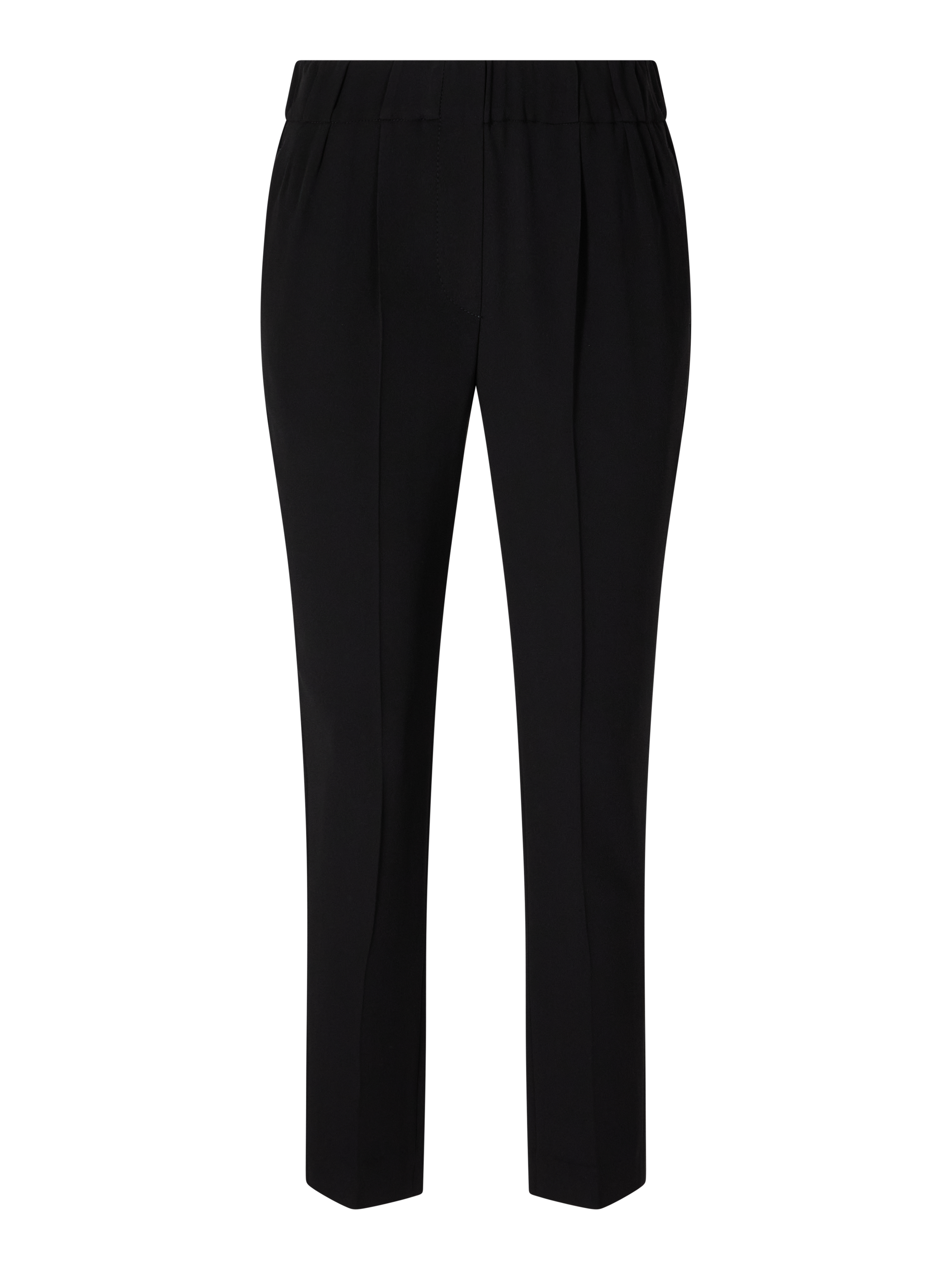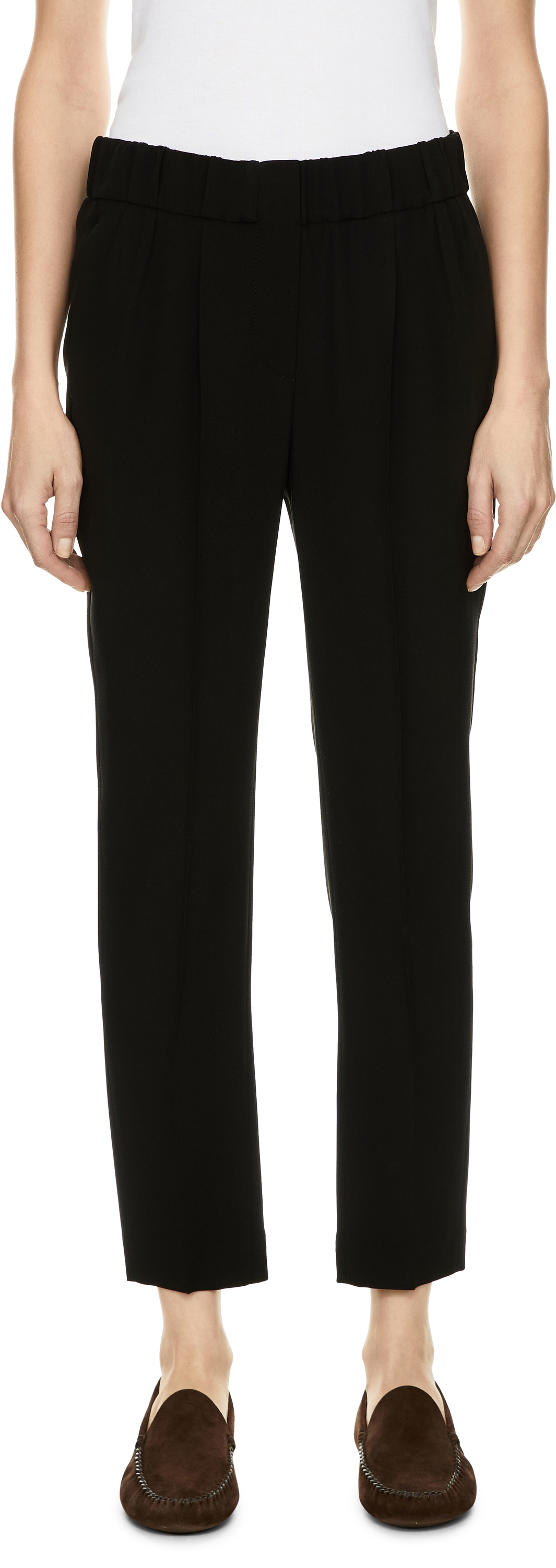 Diese Stoffhose in Schwarz von Brunello Cucinelli wurde aus Crêpe-Cady gefertigt und besticht durch eine fließende Optik. Der elastische Innenbund, der mittelhohe Leibhöhe und die seitlichen Eingrifftaschen zeichnen dieses Modell aus.