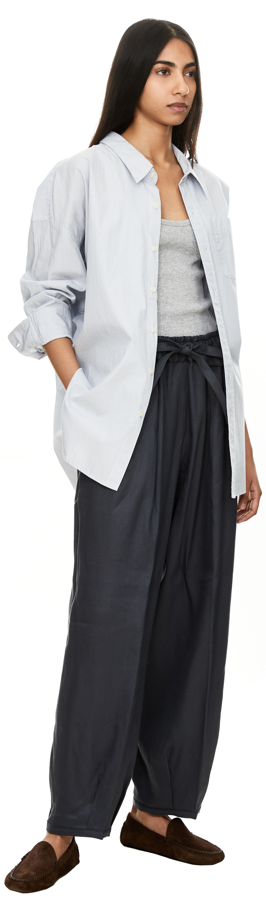 Das Model ist 175 cm groß und trägt Größe 27.