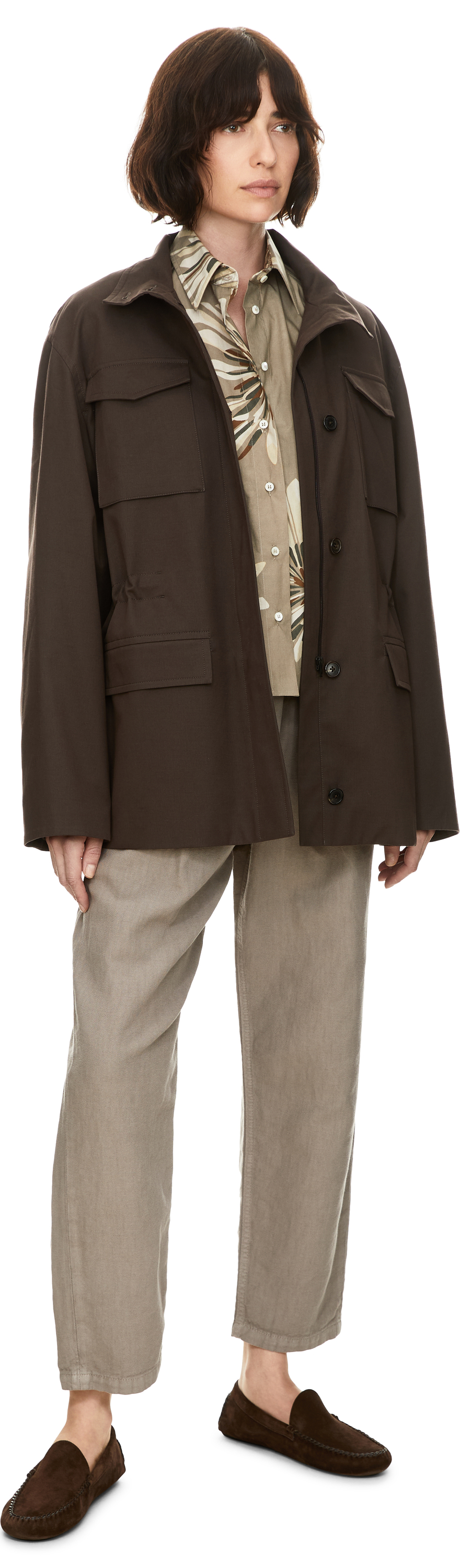 Das Model ist 178 cm groß und trägt Größe 34.