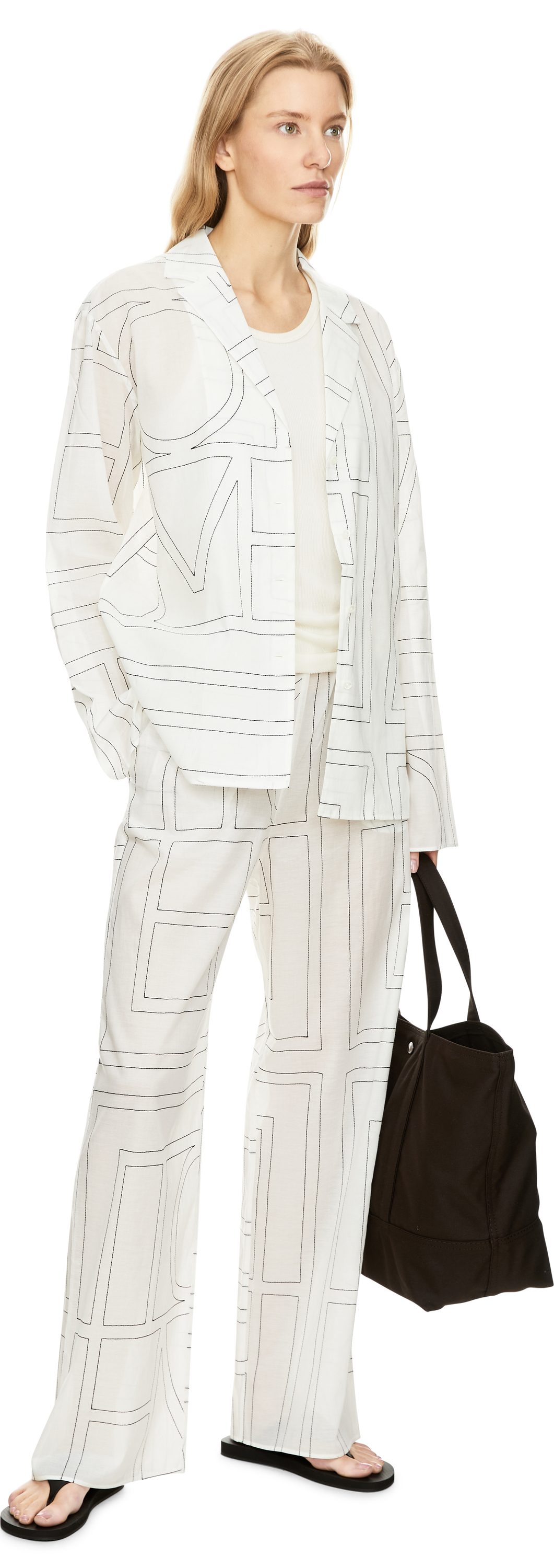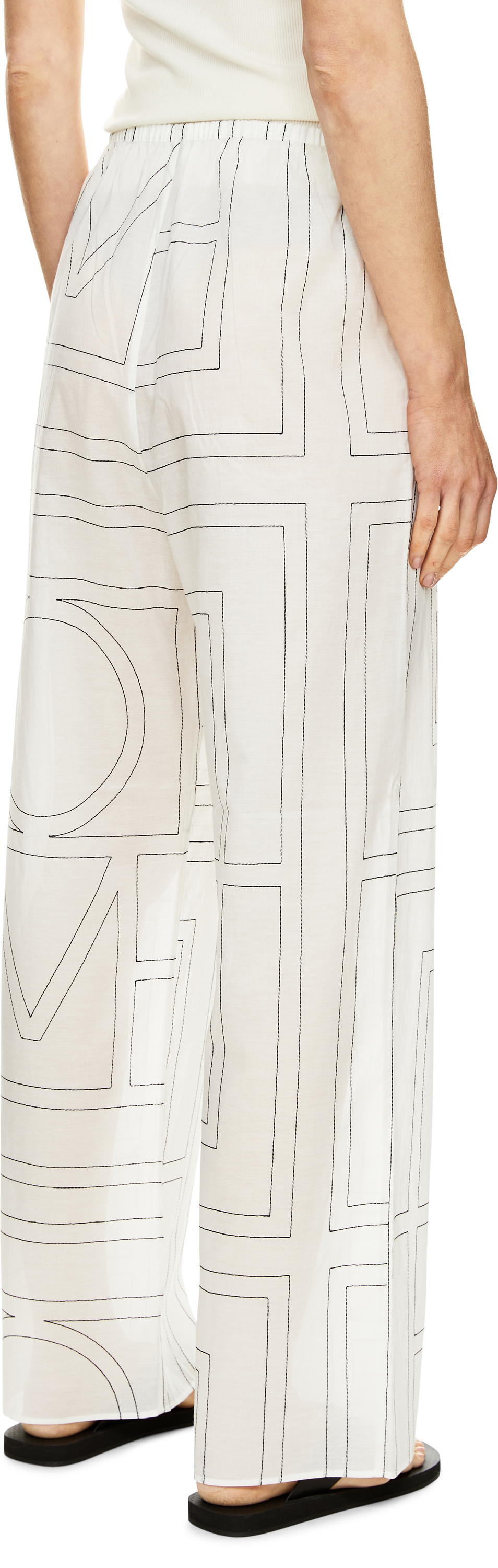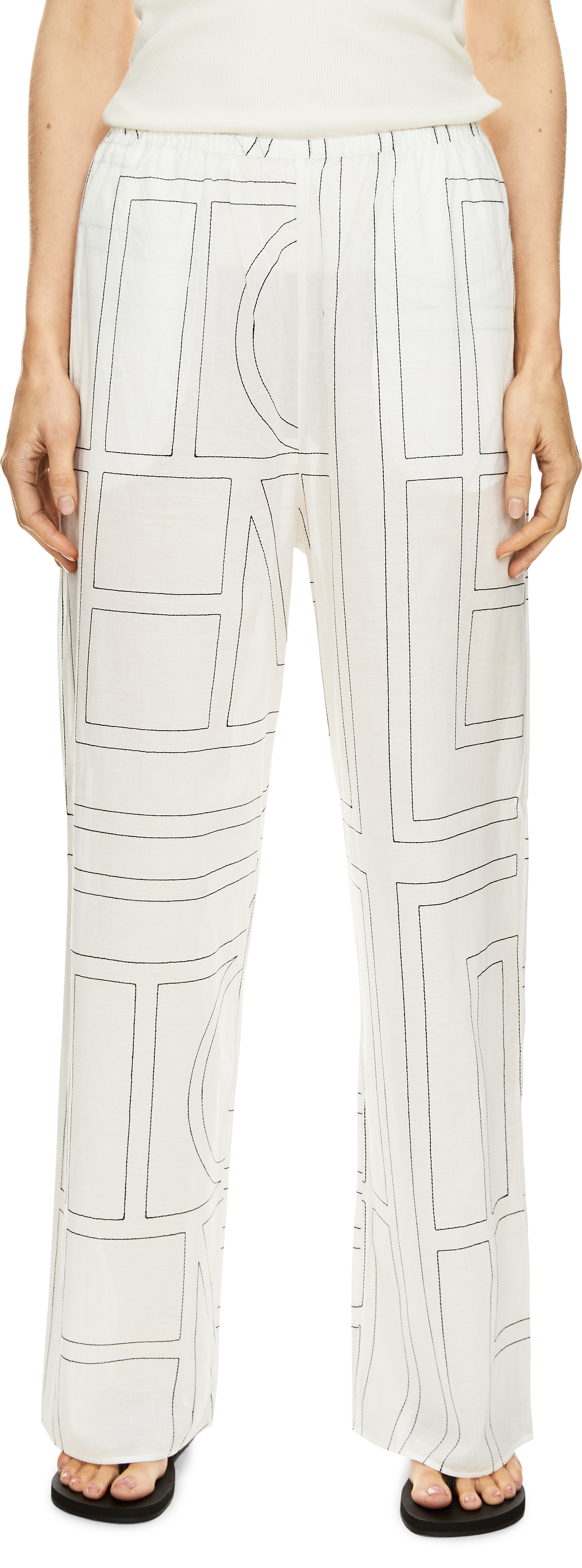 Diese Hose in Weiß von TOTEME wurde aus einer Baumwollmischung gefertigt und besticht durch die lässige, gerade Passform. Das kontrastierend schwarz bestickte Monogramm sowie der elastische Bund und die Seitentaschen runden dieses modische Design ab.