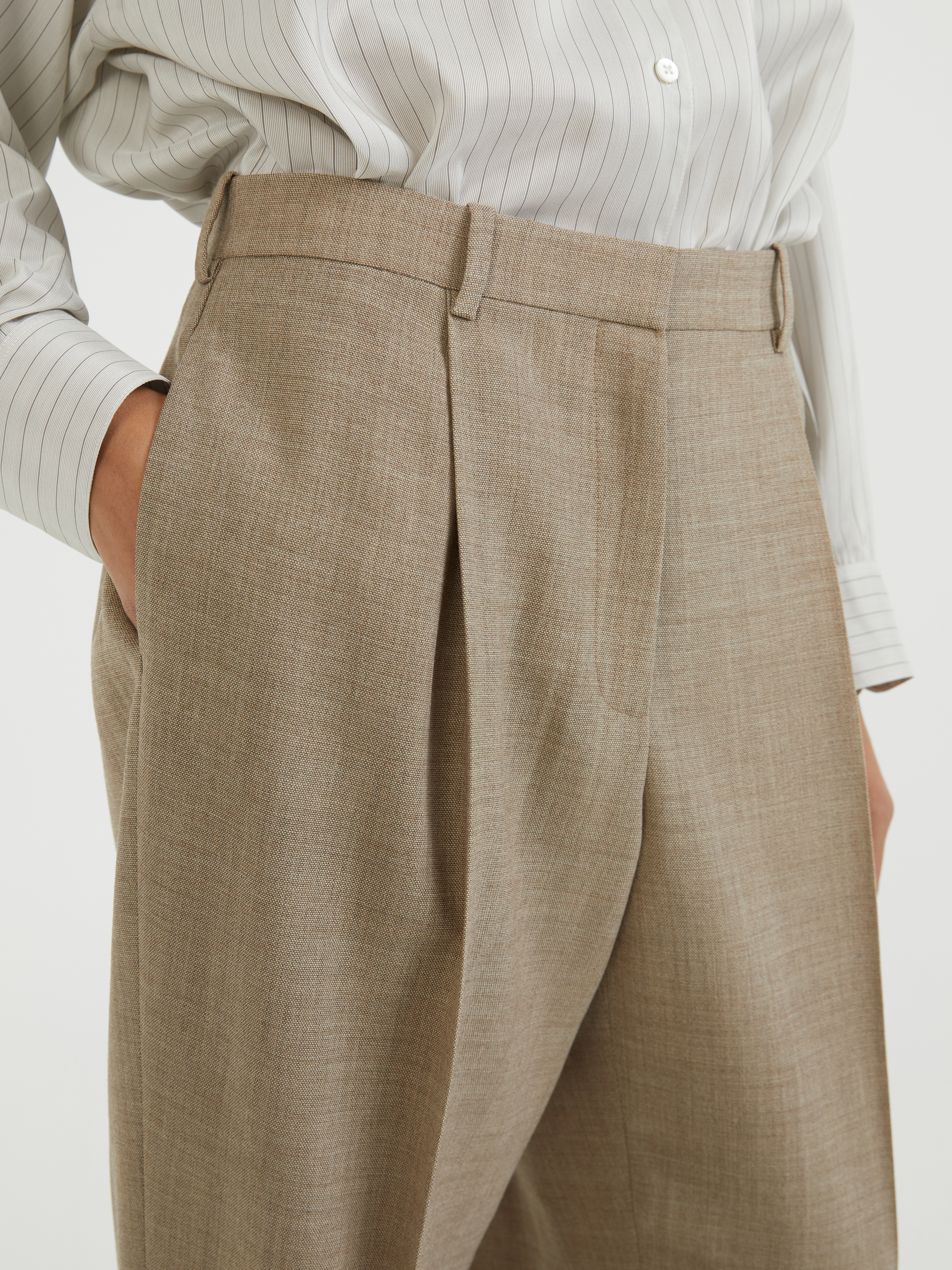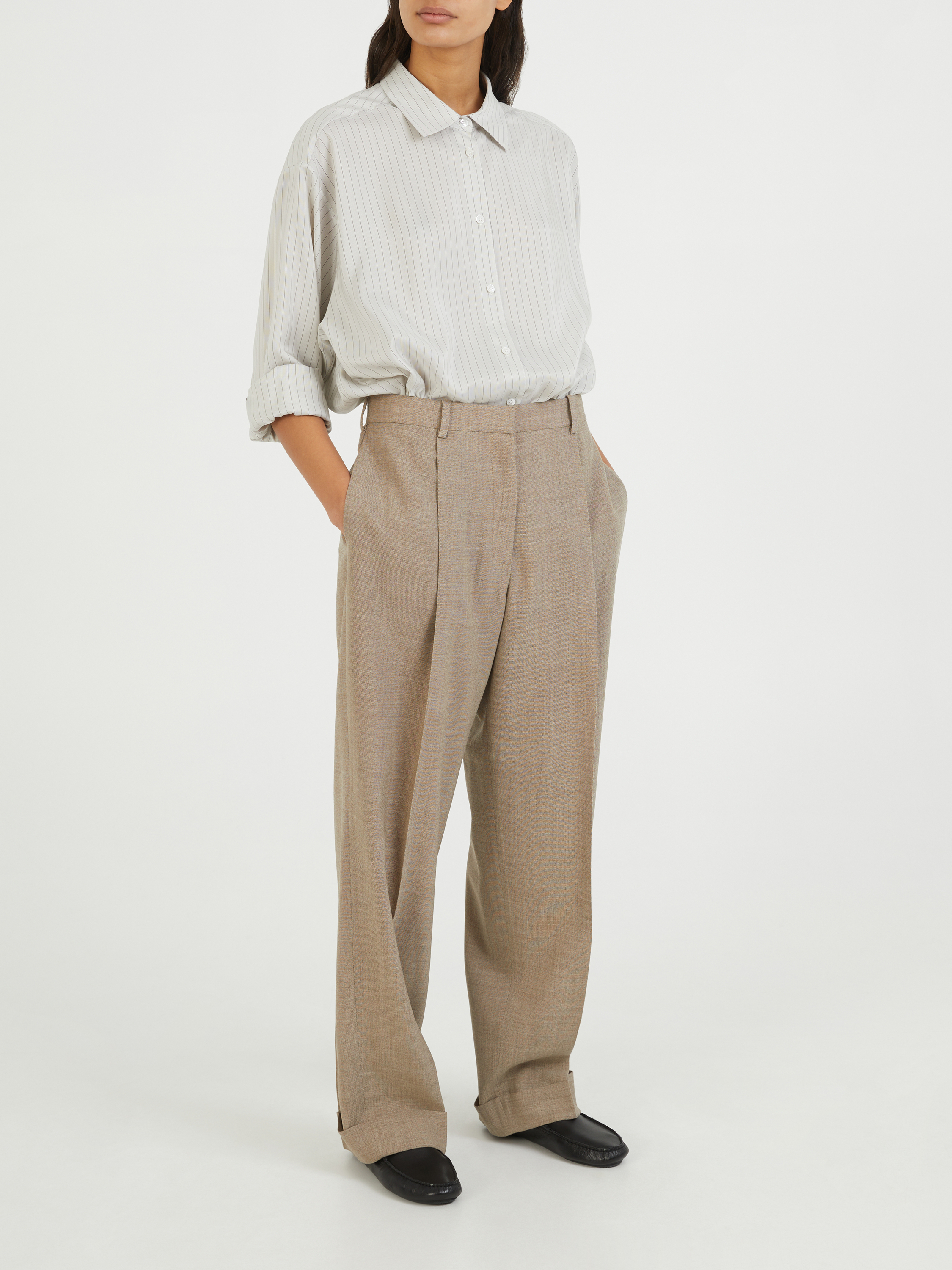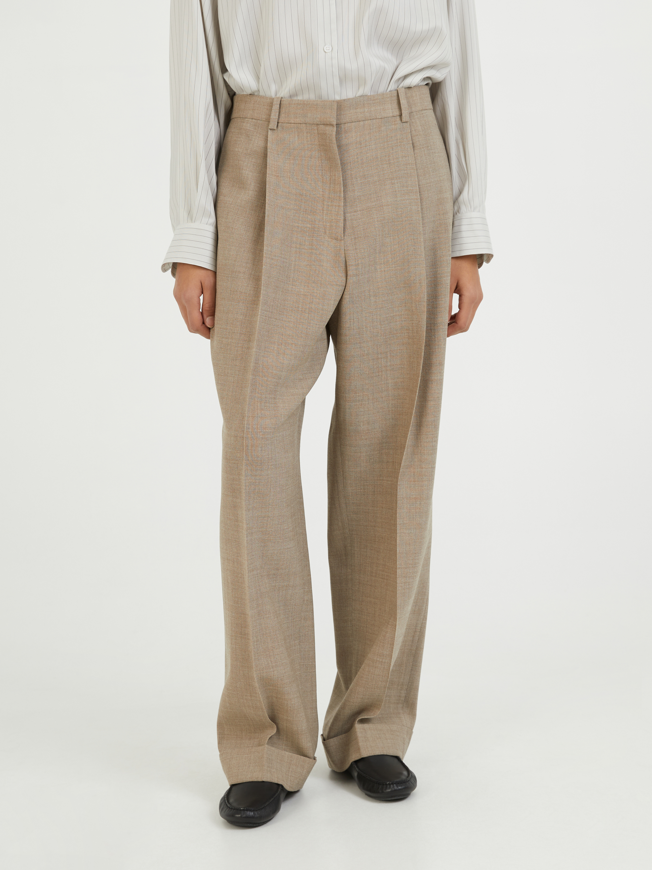 Die Hose 'Tor' in Beige von The Row wurde aus leichtem Woll-Canvas gefertigt und besticht durch ein zeitloses Design. Das gerade Bein, die Besentaschen und die Bügelfalten zeichnen dieses Modell aus. Der umgeschlagene Saumabschluss und die Gürtellaschen vollenden dieses hochwertige Modell.