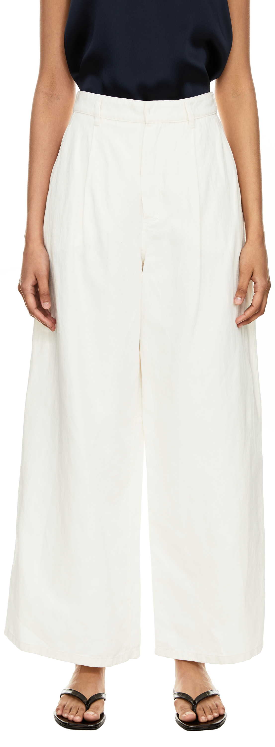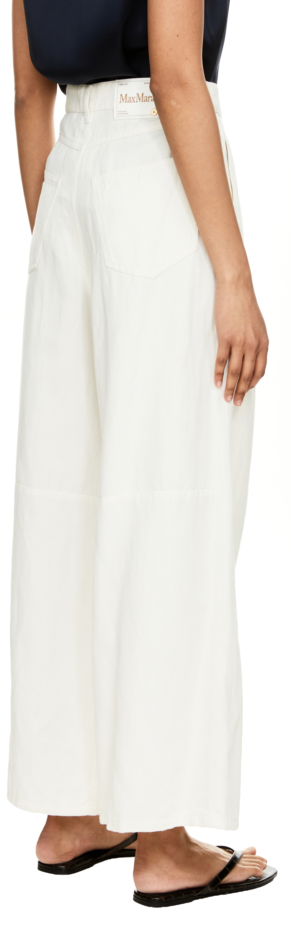 Die Hose 'Aloa' in Weiß von 'S Max Mara' wurde aus einer hochwertigen Baumwoll- und Leinenmischung gefertigt und besticht durch das weite Bein. Bundfalten setzen elegante Akzente und unterstreichen die klare Silhouette. Das hochwertige Flachsleinen ist besonders strapazierfähig, atmungsaktiv und sorgt mit seinen kühlenden Eigenschaften für ein angenehm leichtes Tragegefühl an warmen Tagen.