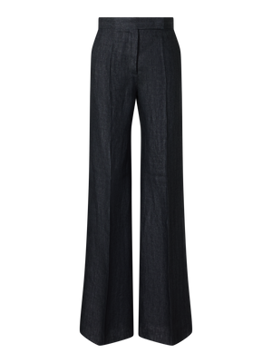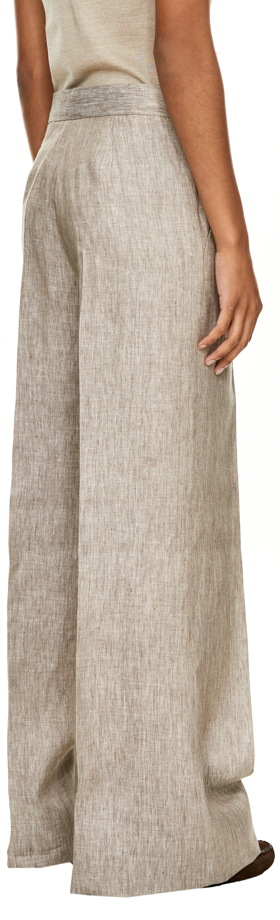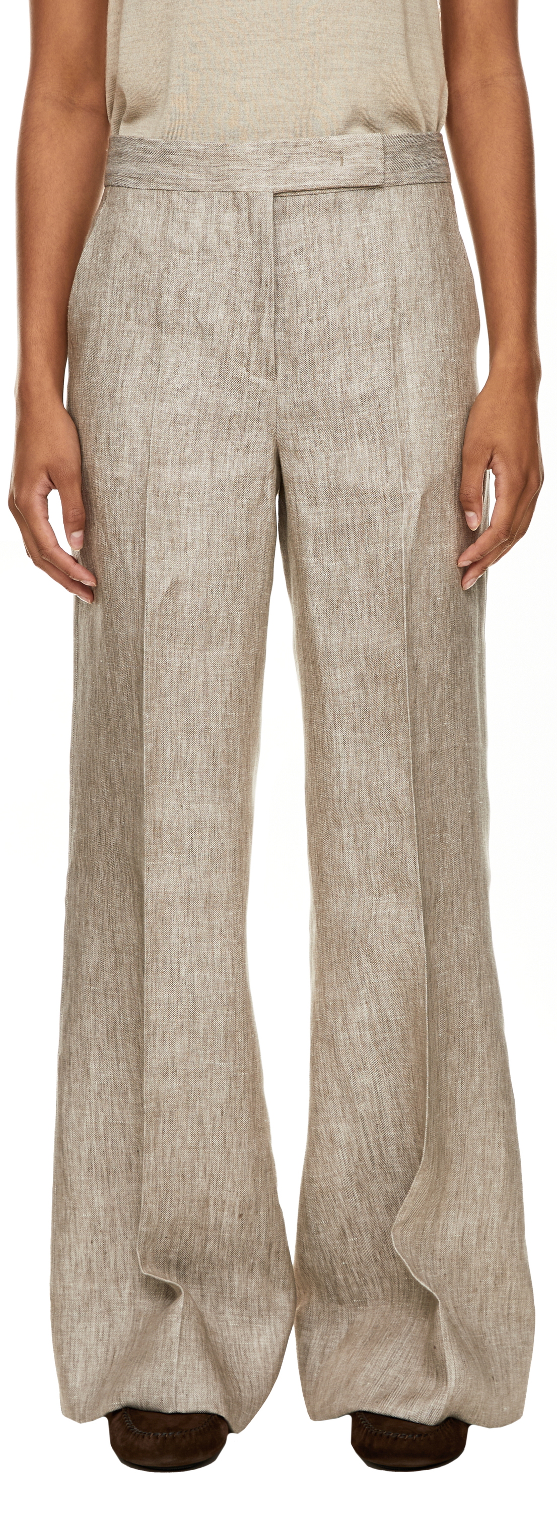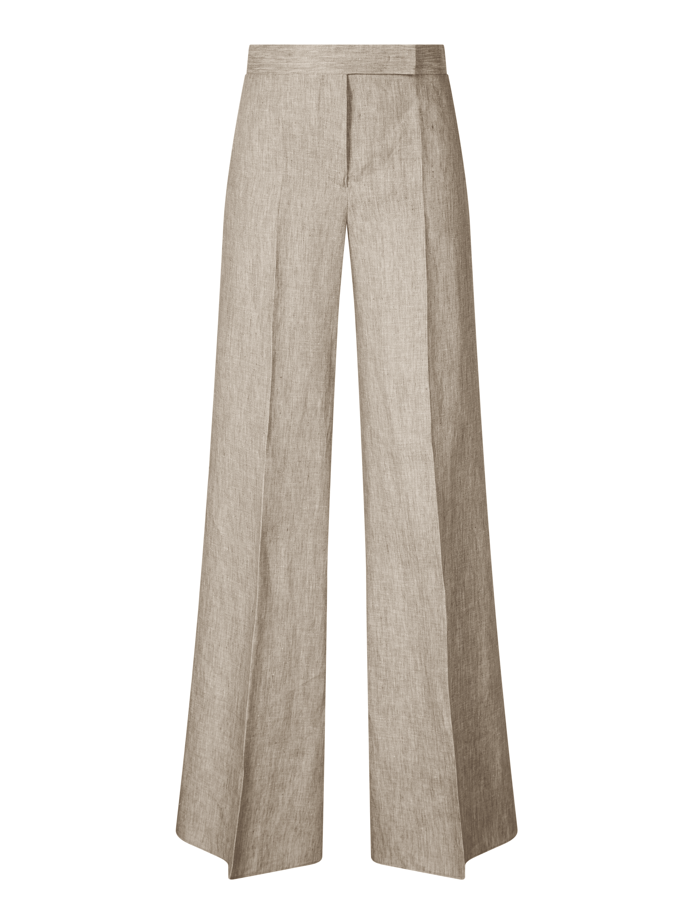 Die Hose 'Deserto' in Beige von Max Mara wurde aus hochwertigem Flachsleinen gefertigt und besticht durch den weiten Palazzo-Schnitt. Die hohe Leibhöhe sowie Bügelfalten entlang des Beins akzentuieren das raffinierte Design. Das hochwertige Material ist besonders strapazierfähig, atmungsaktiv und sorgt mit seinen kühlenden Eigenschaften für ein angenehm leichtes Tragegefühl an warmen Tagen.