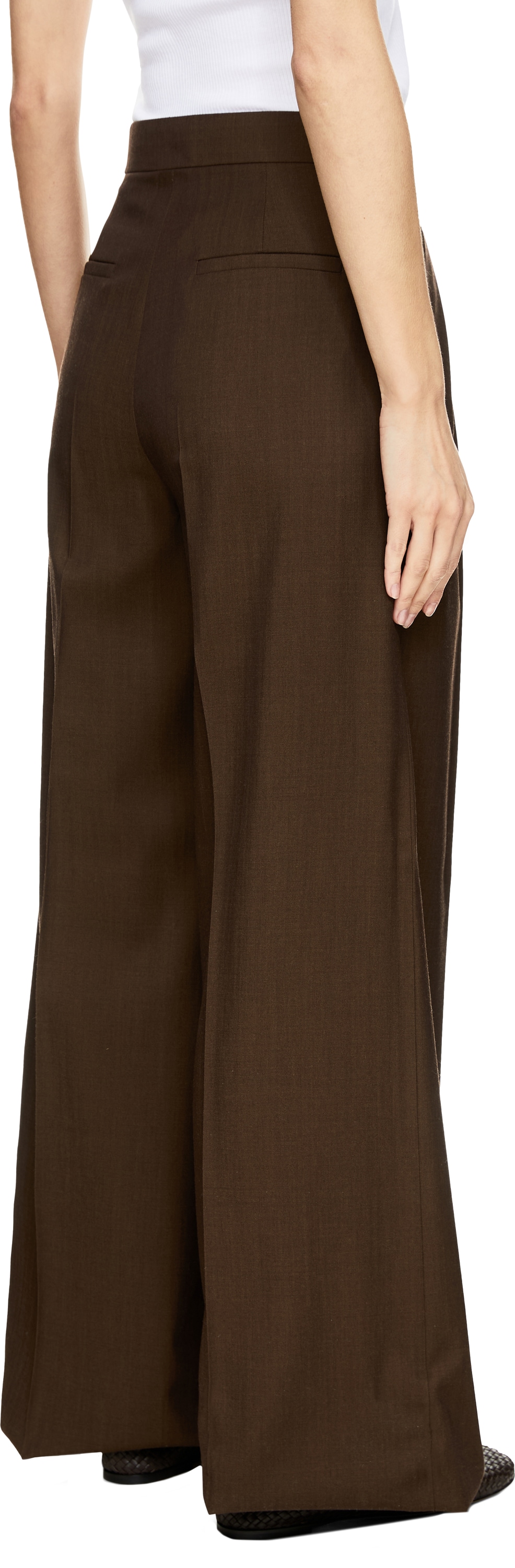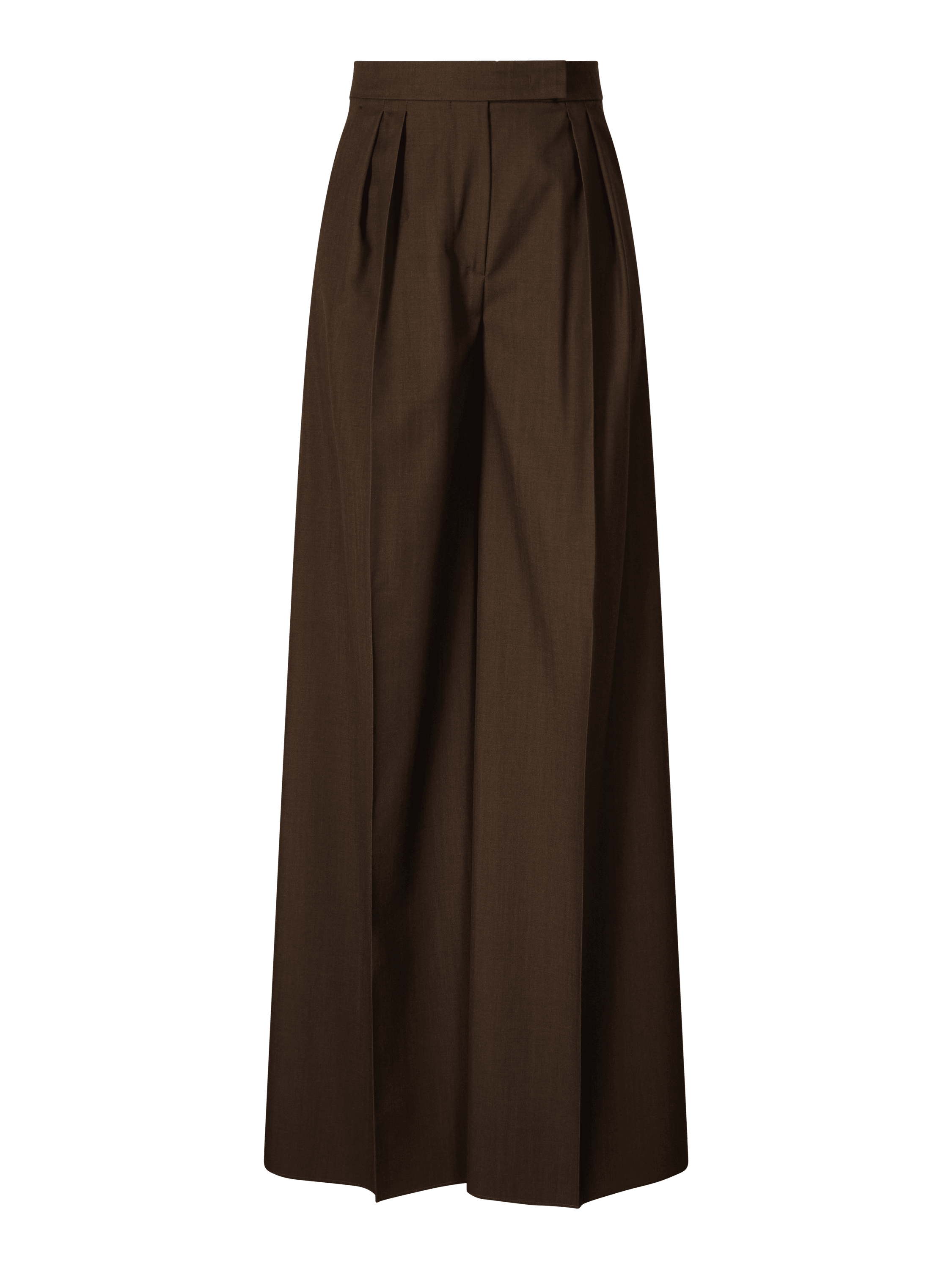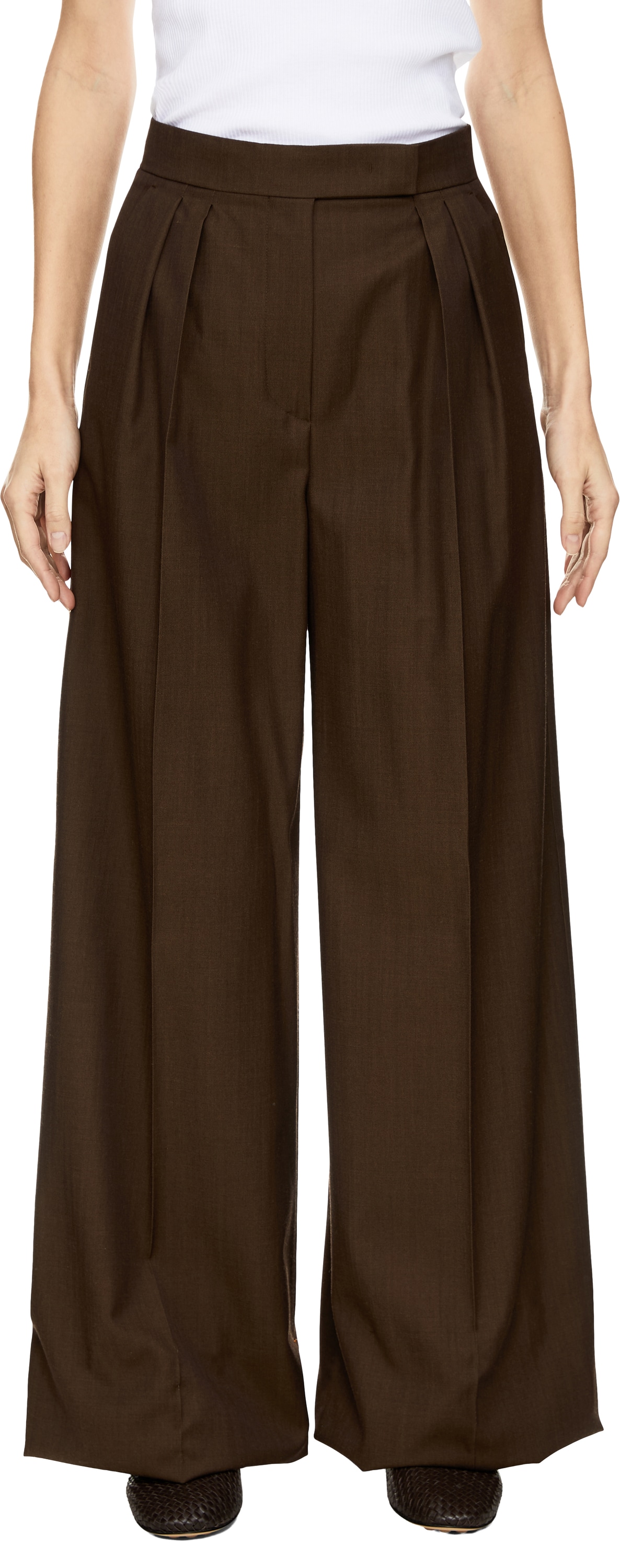 Die Hose 'Quorum' in Braun von Max Mara wurde aus hochwertiger Schurwolle gefertigt und besticht durch das weite- ausgestellte Bein. Die hohe Leibhöhe wird durch dekorative Bundfalten betont, die dem Modell eine elegante Silhouette verleihen.