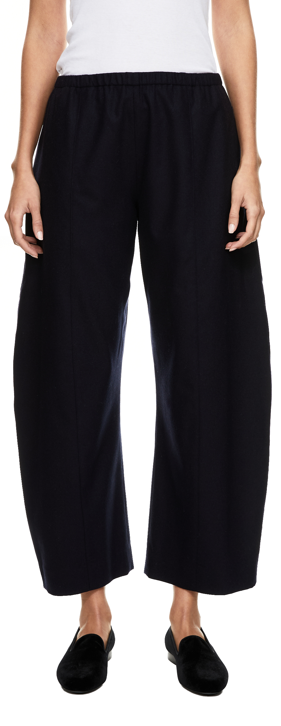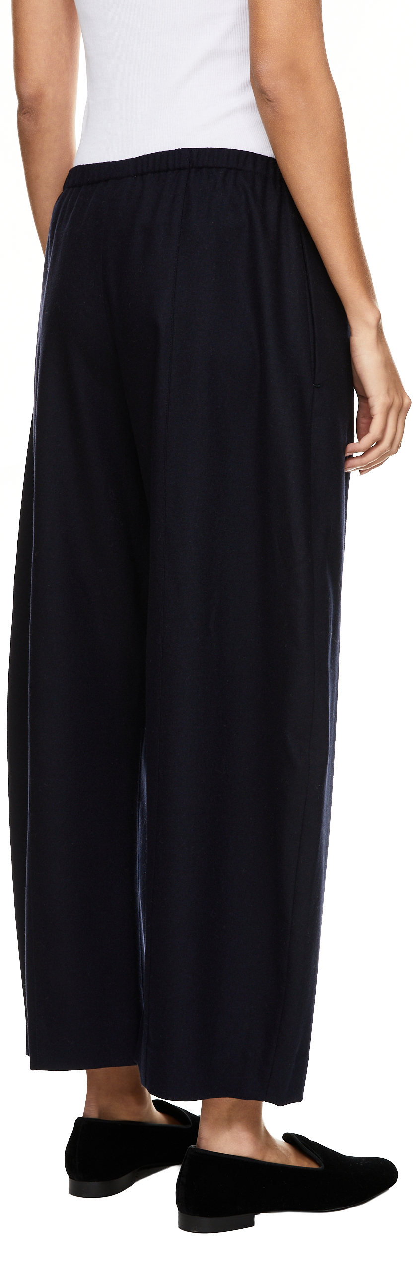Die Hose 'Clover' in Marineblau von Khaite wurde aus einer edlen Schurwoll-Cashmere-Mischung gefertigt und besticht durch die moderne O-Bein-Silhouette. Der elastische Bund sorgt für ein bequemes Tragegefühl, während die seitlichen Eingrifftaschen praktische Details bieten. Das hochwertige Material verleiht dem Modell eine geschmeidige Textur und einen eleganten Look.