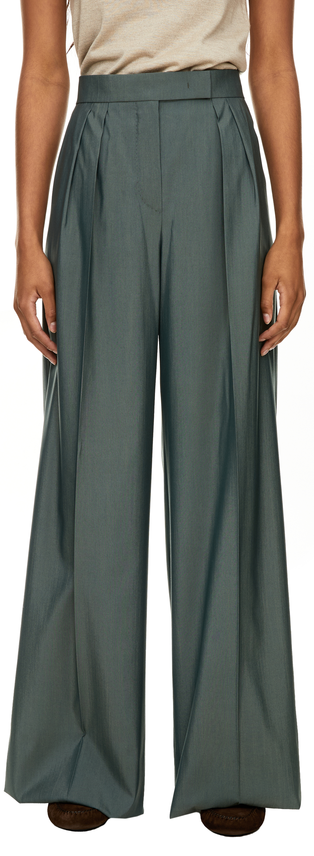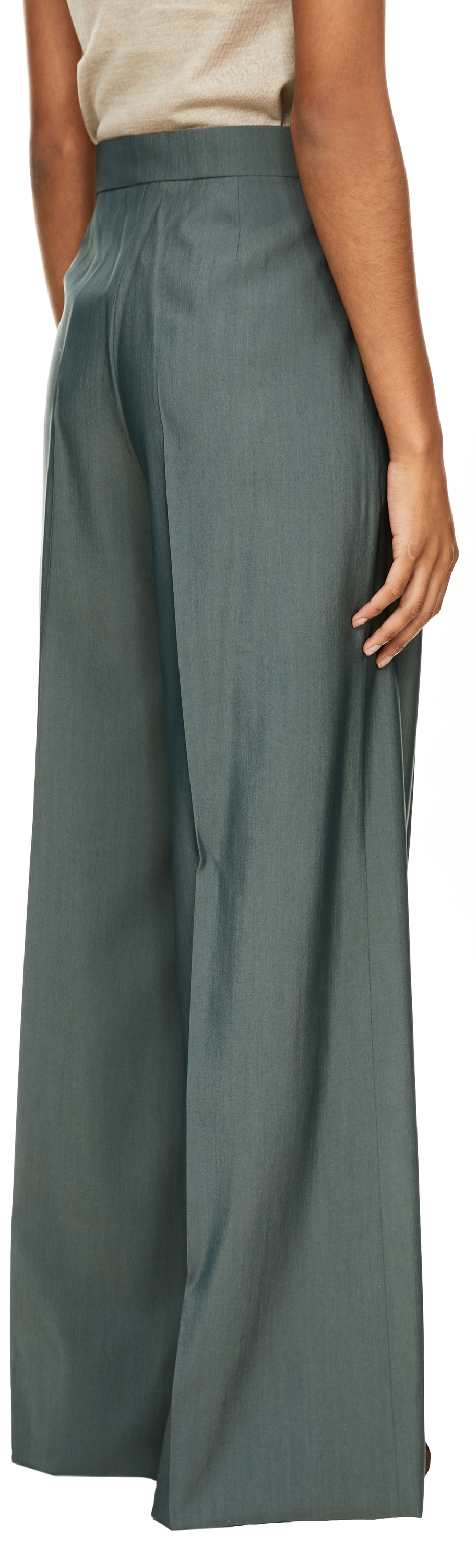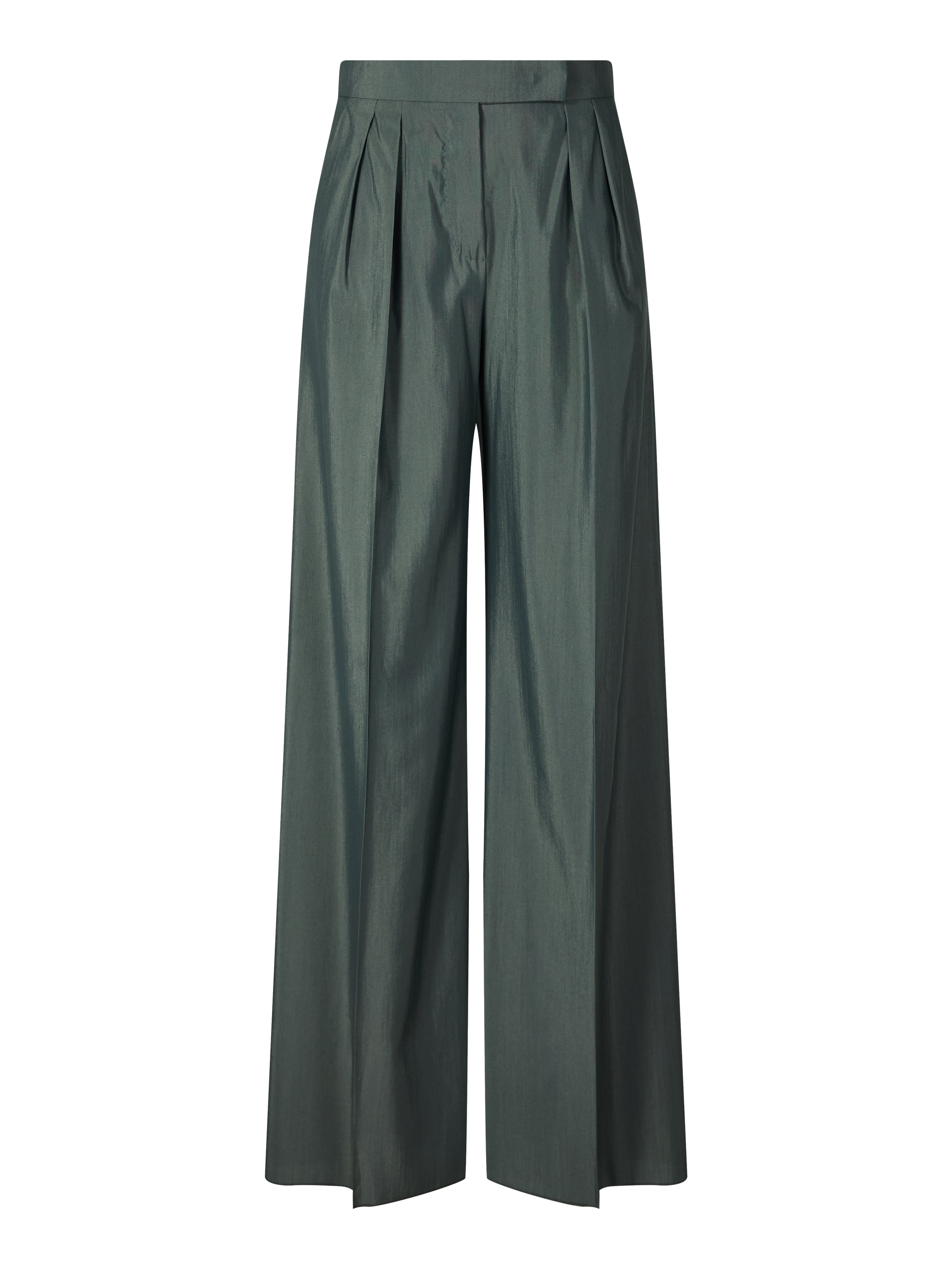 Die Hose 'Giallo' in Khaki von Max Mara wird aus einer fließenden Wollpopeline-Seidenmischung gefertigt und besticht durch die weite Passform. Vordere Bundfalten akzentuieren die fließende Silhouette und verleihen dem Modell Eleganz und Bewegung. Der leichte Schimmer der hochwertigen Materialmischung unterstreicht die edle Optik und zeichnet das Design aus.
