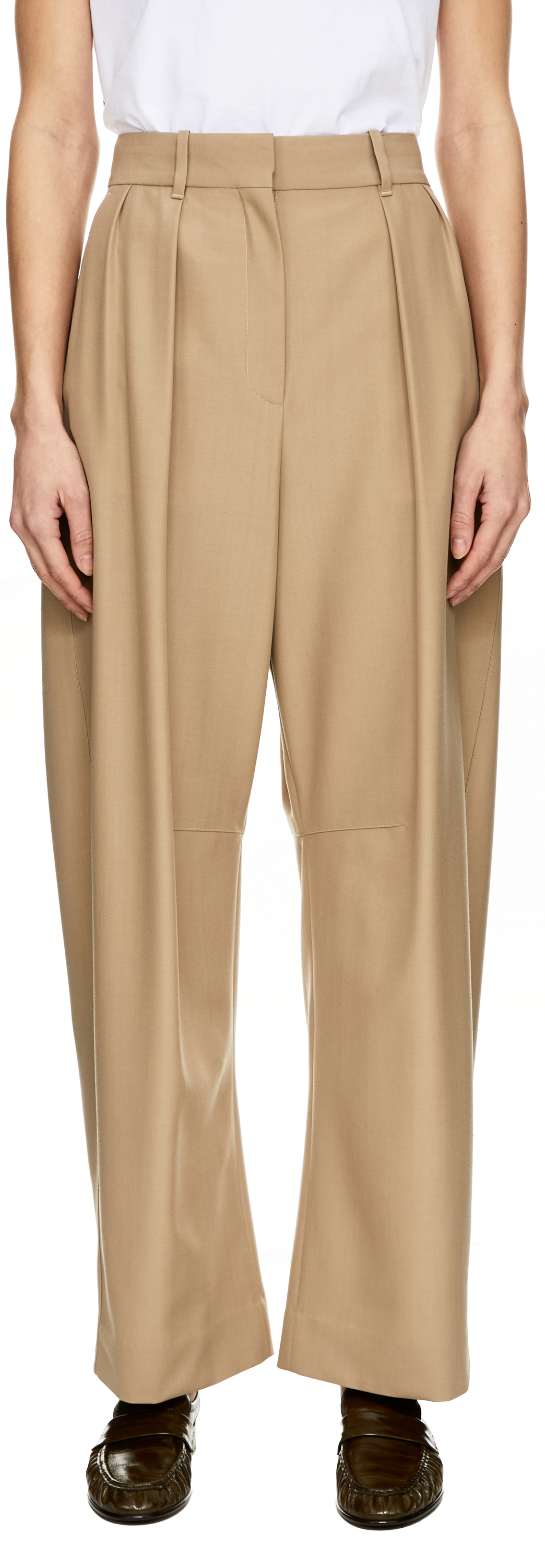 Die Hose 'Barrel' in Beige von LOEWE wurde aus leichter, fließender Wolle gefertigt und besticht durch die entspannte Passform. Die Falten auf der Vorderseite, die mittlere Taille, das fassförmige Hosenbein sowie die Anagram-Stickerei auf der Rückseite runden das Design auf klassische Weise ab.