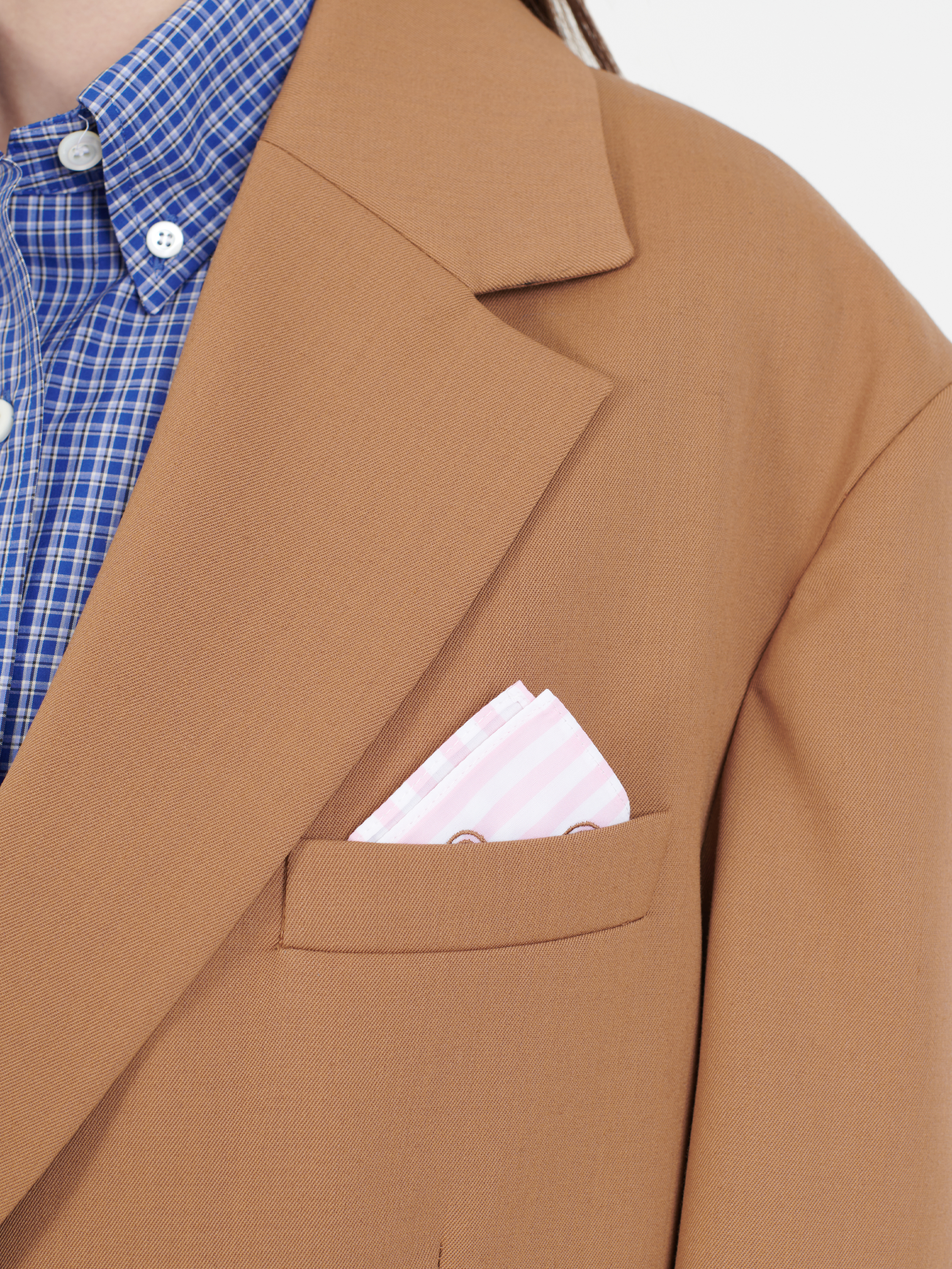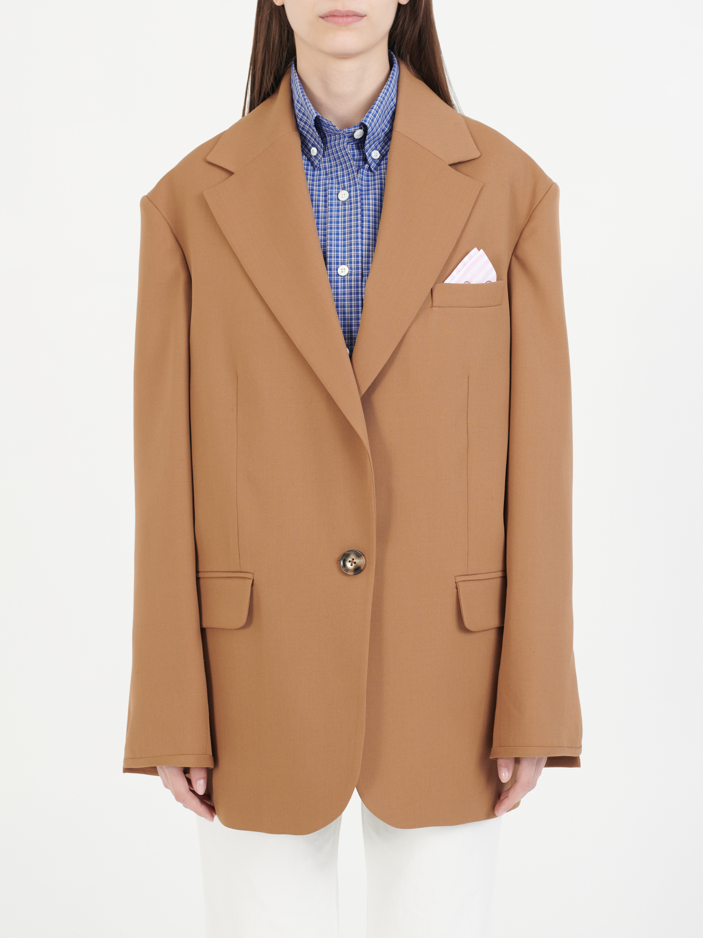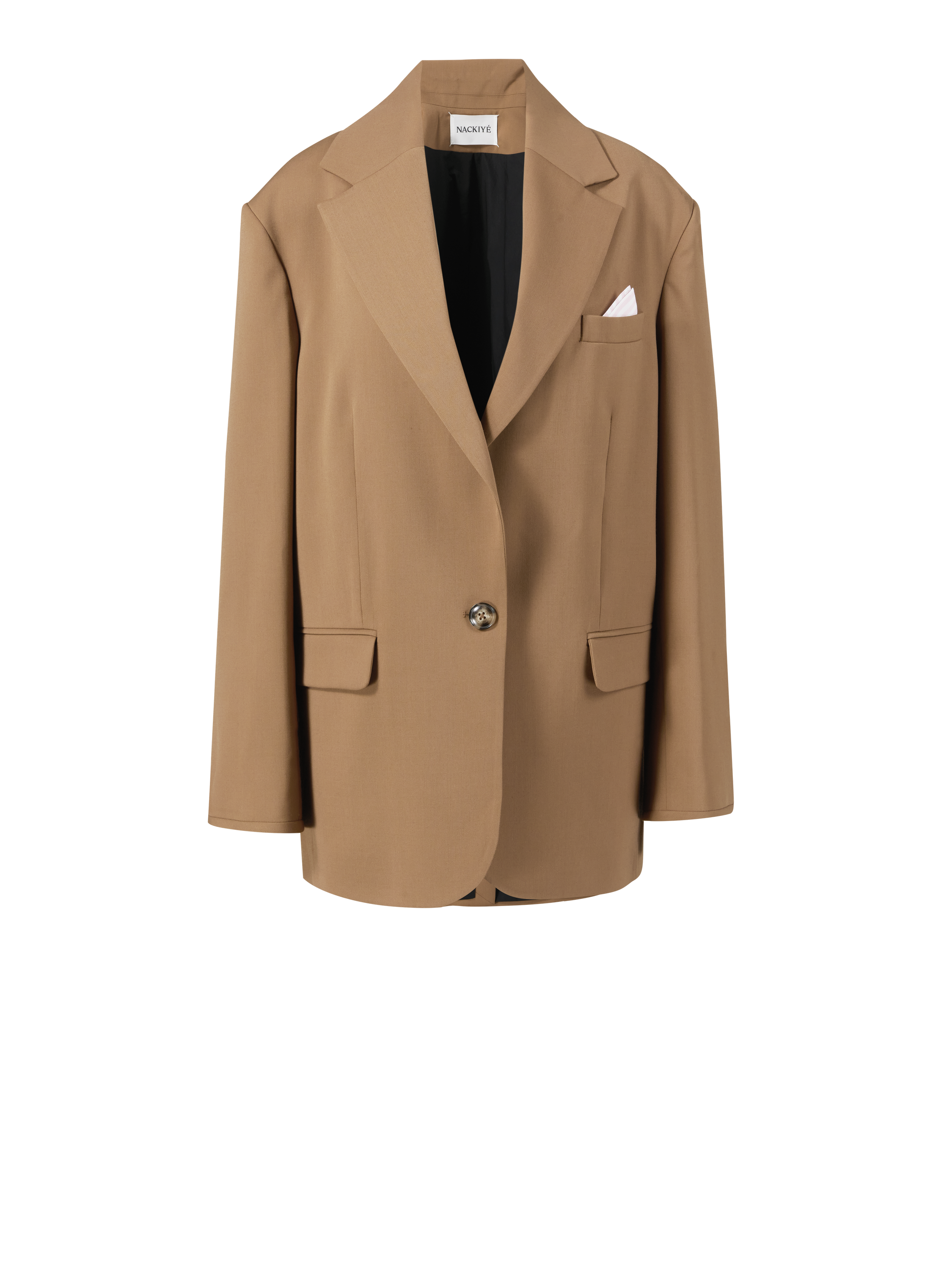 Der Blazer 'Miami Vice' in Braun von NACKIYÉ wurde aus einem Materialgemisch gefertigt und besticht durch eine oversized Passform. Der aufsteigende Reverskragen, der Knopfleiste und die aufgesetzten Taschen vollenden dieses Modell.