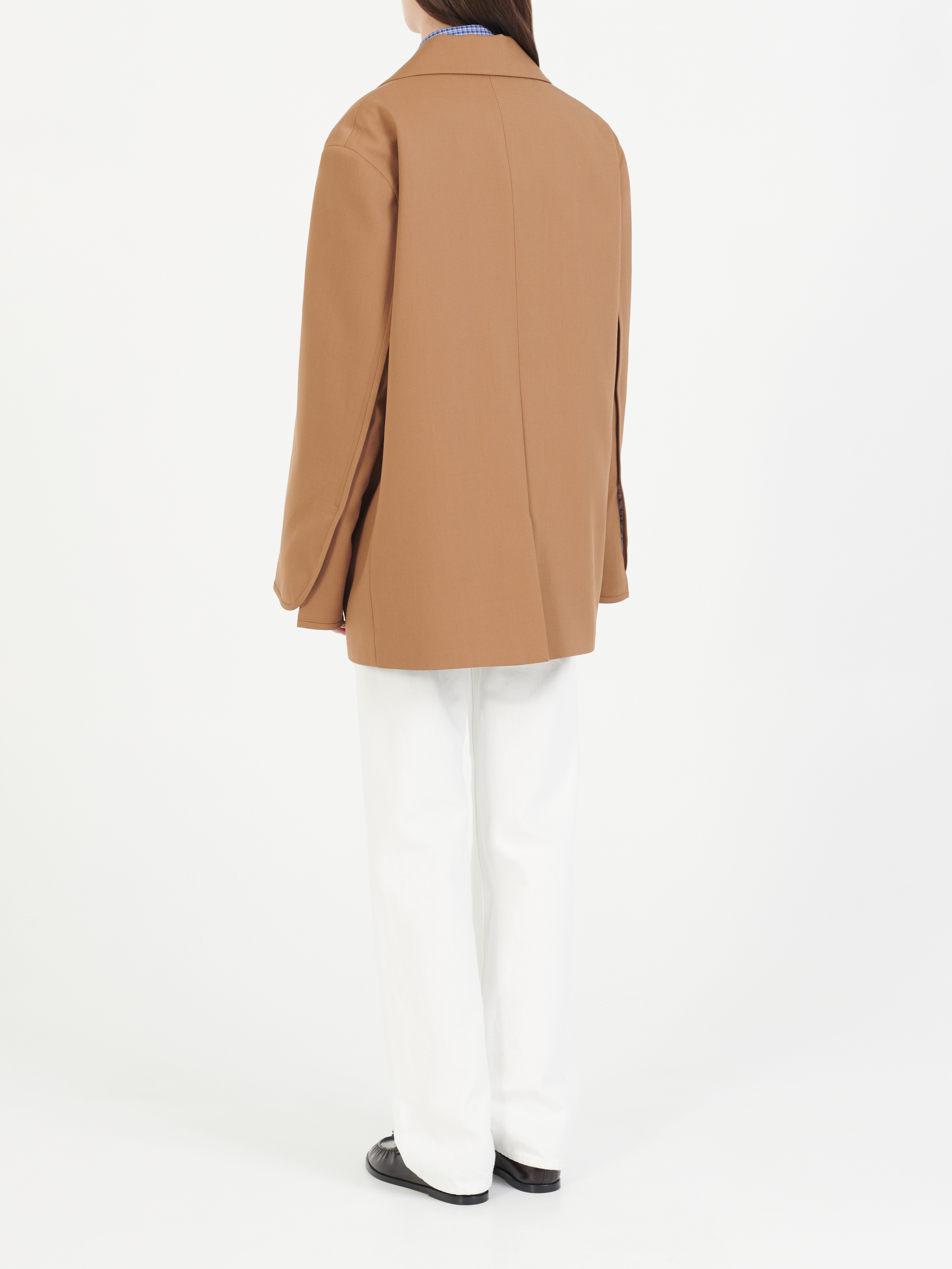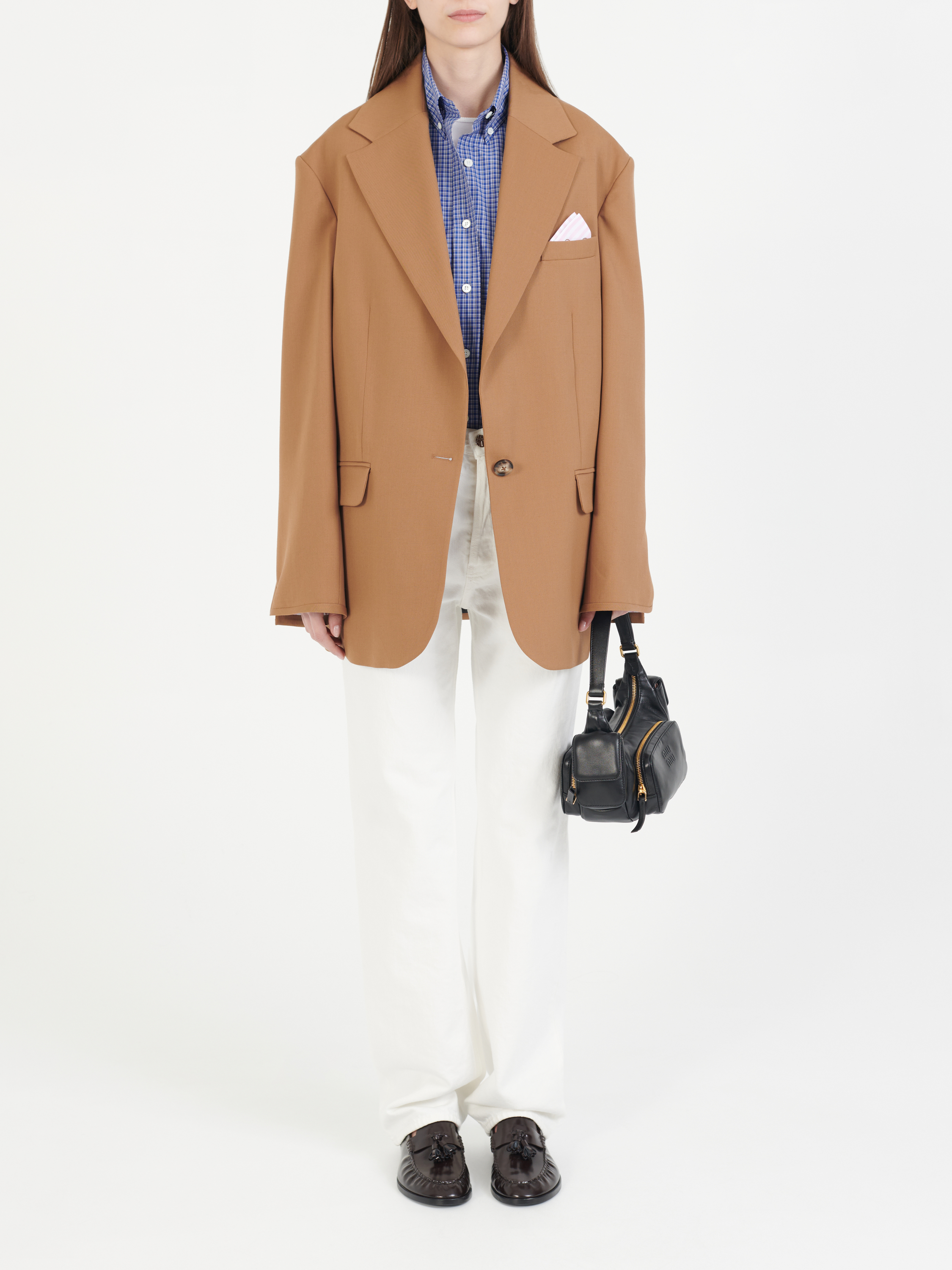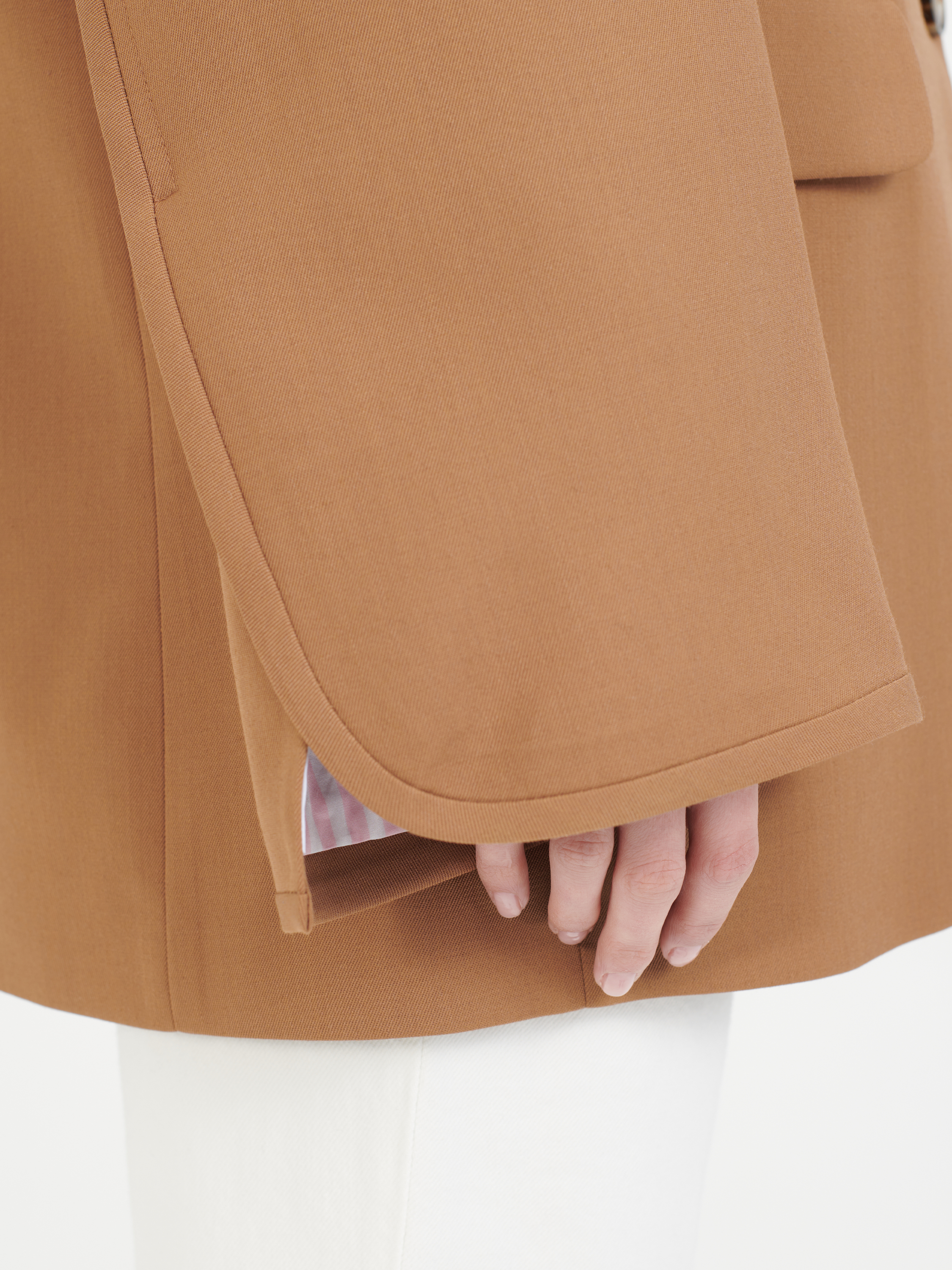 Der Blazer 'Miami Vice' in Braun von NACKIYÉ wurde aus einem Materialgemisch gefertigt und besticht durch eine oversized Passform. Der aufsteigende Reverskragen, der Knopfleiste und die aufgesetzten Taschen vollenden dieses Modell.