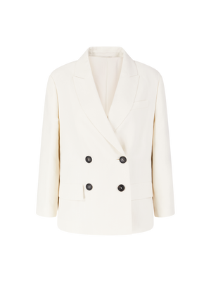 Dieser Blazer in Bordeaux von Brunello Cucinelli wurde aus einer Leinenmischung gefertigt und besticht durch die strukturierte Optik und Haptik. Das Modell wird durch die doppelreihige Knopfleiste und die Paspeltaschen stilvoll ergänzt. Einen stimmigen Abschluss schafft der steigende Reverskragen sowie die Monili Perlen am Kragen.