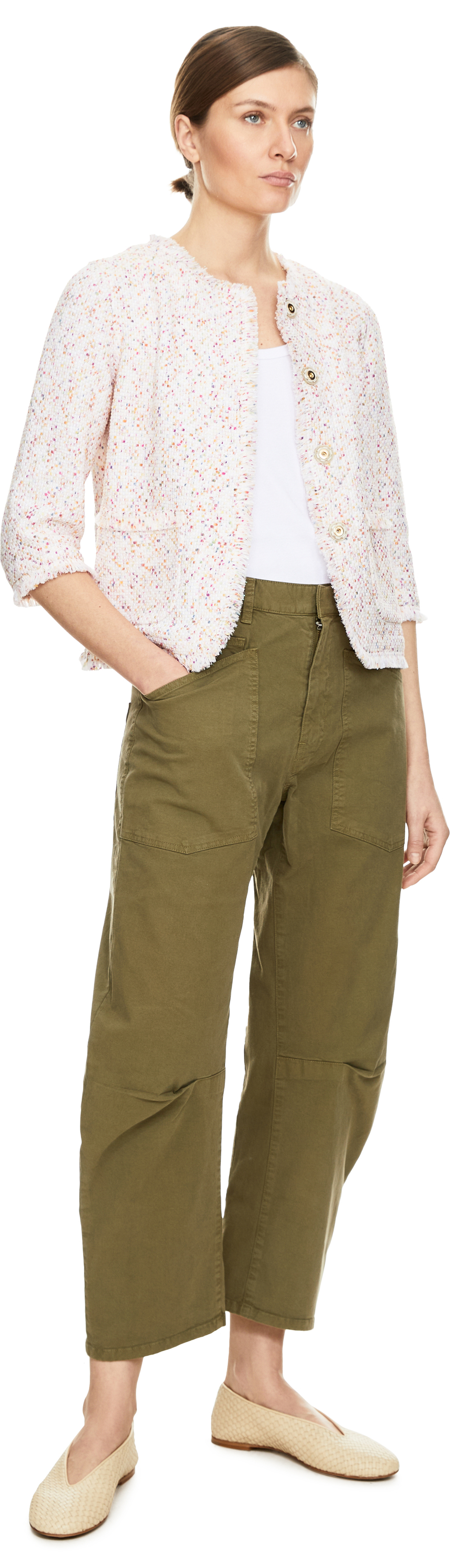 Das Model ist 178 cm groß und trägt Größe 36.