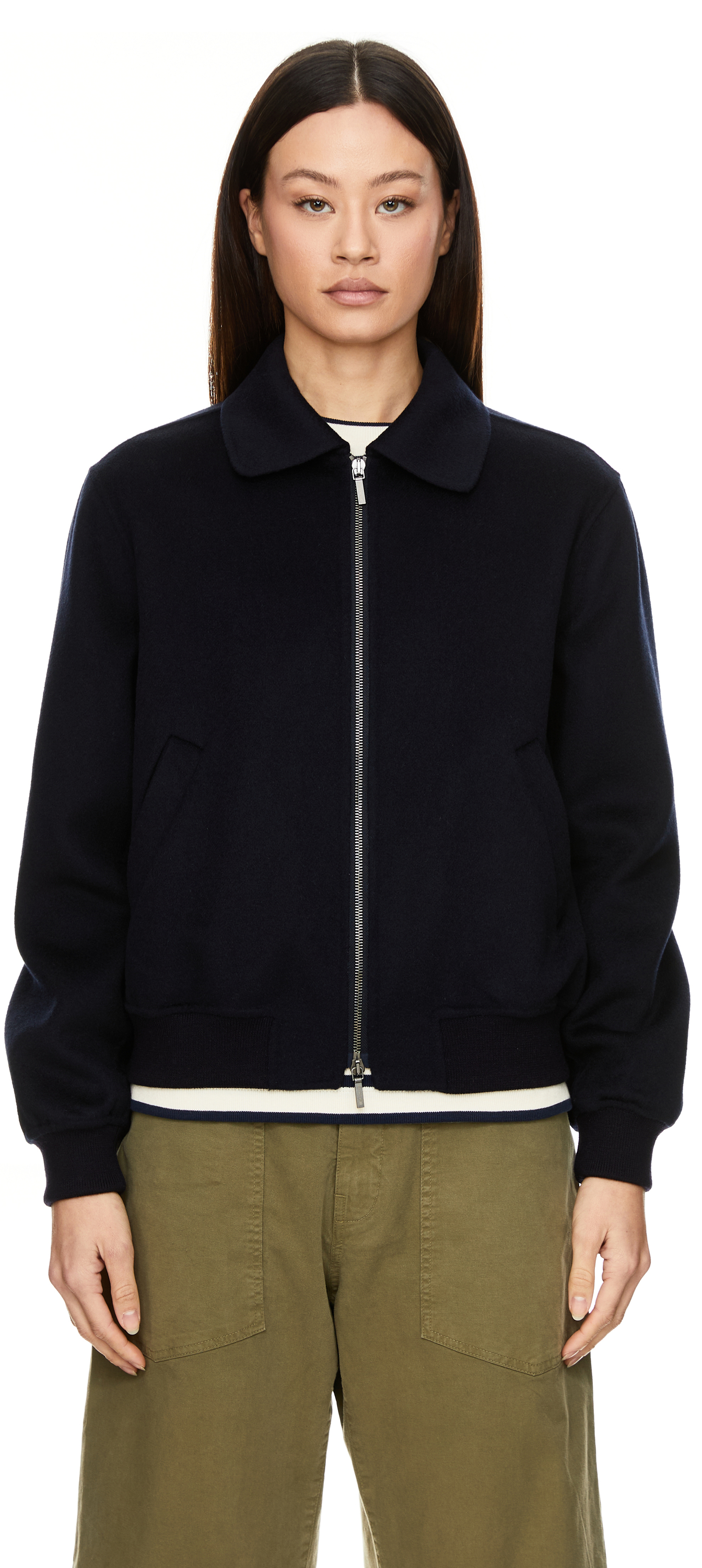 Die Jacke 'Zinnia' in Navy von Iris von Arnim wurde aus einer weichen Woll-Cashmere-Mischung gefertigt und besticht durch das klassisch-sportliche Design. Der Zwei-Wege-Reißverschluss mit Logo-Prägung ermöglicht ein flexibles Schließen, während der Umlegekragen sowie die Strickbündchen an Ärmeln und Saum dem Modell einen stilvollen Charakter verleihen. Dezente Leistentaschen runden das Design harmonisch ab und machen die Jacke zu einem echten Hingucker.