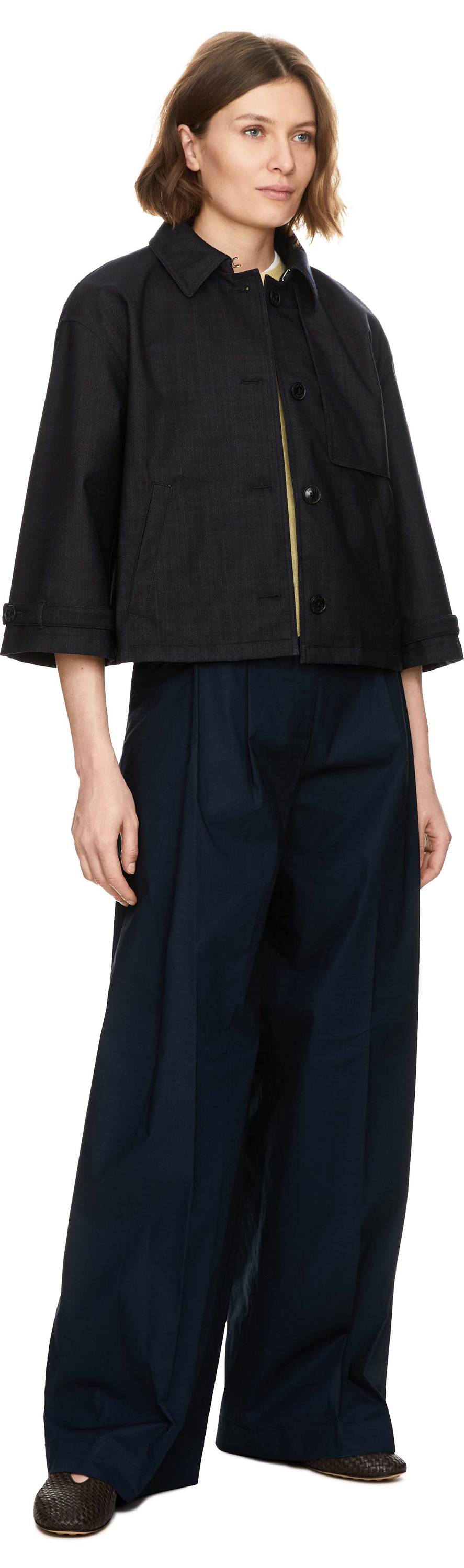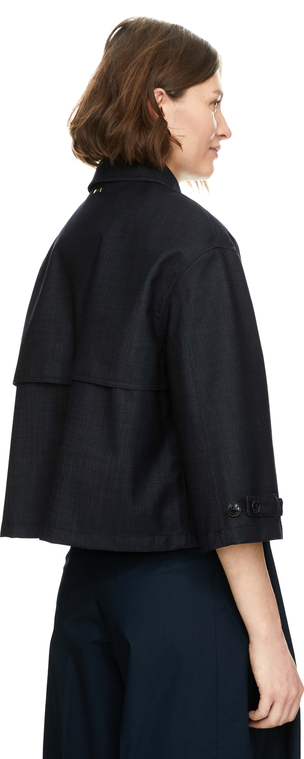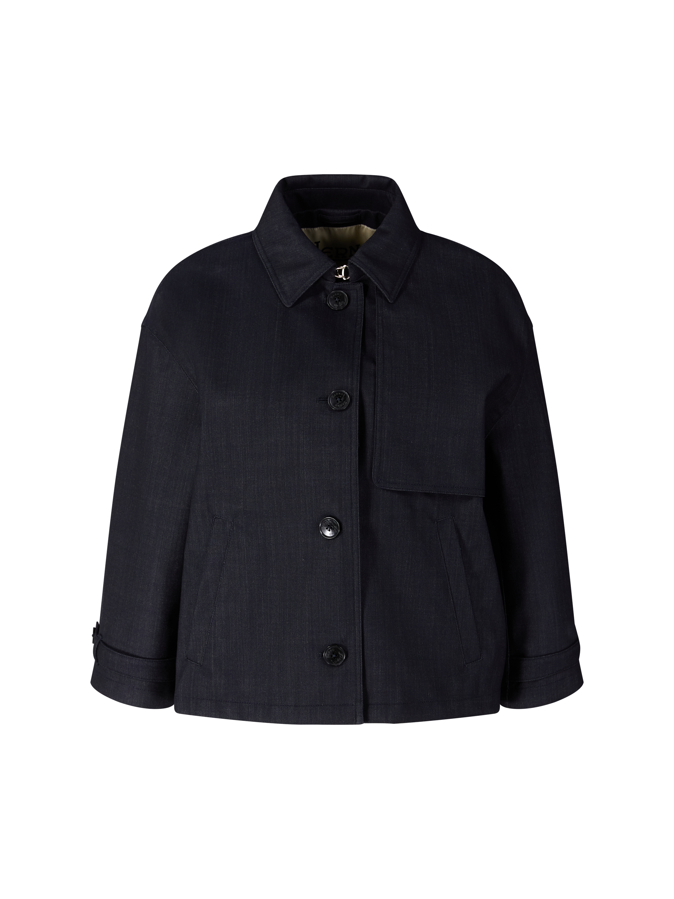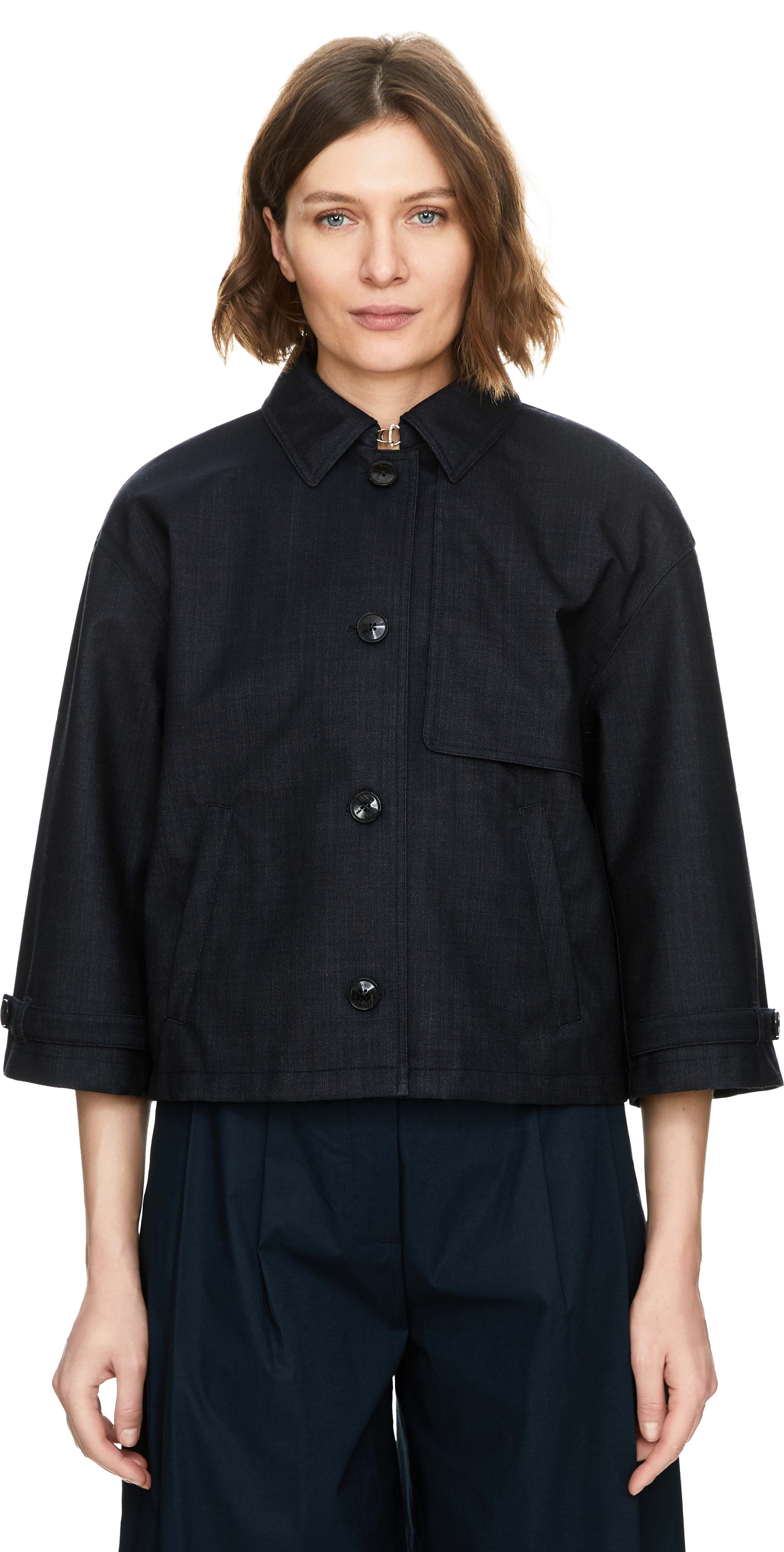Diese Jacke in Marineblau von Herno wurde aus einer Wollmischung gefertigt und besticht durch die leicht verkürzte Silhouette. Der klassische Umlegekragen, die dekorativen Ärmelriegel und die Knopfleiste mit Logo-Prägung verleihen dem Design einen eleganten Charakter.