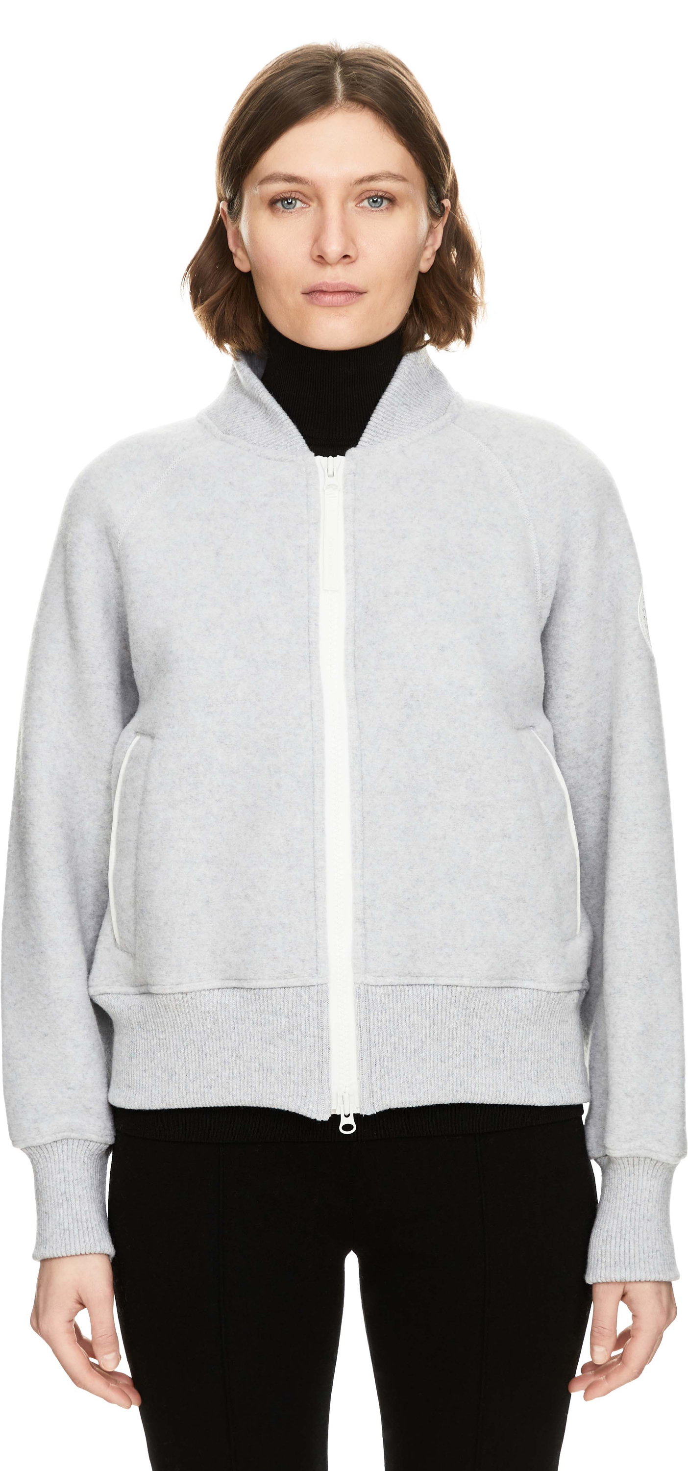 Die Jacke 'Sierra' in Hellgrau von Canada Goose wurde aus einer hochwertigen Wollmischung gefertigt und besticht durch den modernen Charakter. Die lässige Passform, die Raglanärmel mit markentypischem Logo-Patch sowie die Rippstrickbündchen zeichnen das sportive Design aus.