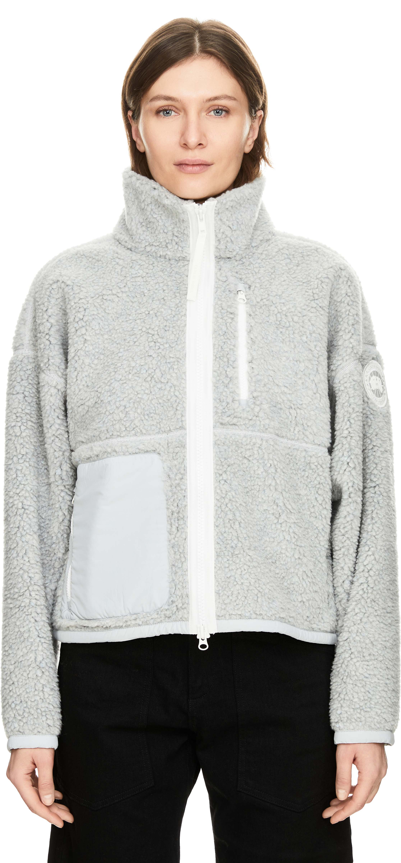 Die Jacke 'Simcoe' in Grau von Canada Goose wurde aus einer hochwertigen Wollmischung gefertigt und besticht durch die High Pile Fleece. Der Zwei-Wege-Reißverschluss, die seitlichen Eingrifftaschen mit Reißverschluss, die überschnittene Schulter, der hohe Kragen sowie der verstellbare Taillensaum mit innenliegendem Kordelzug zeichnen dieses Modell aus.
