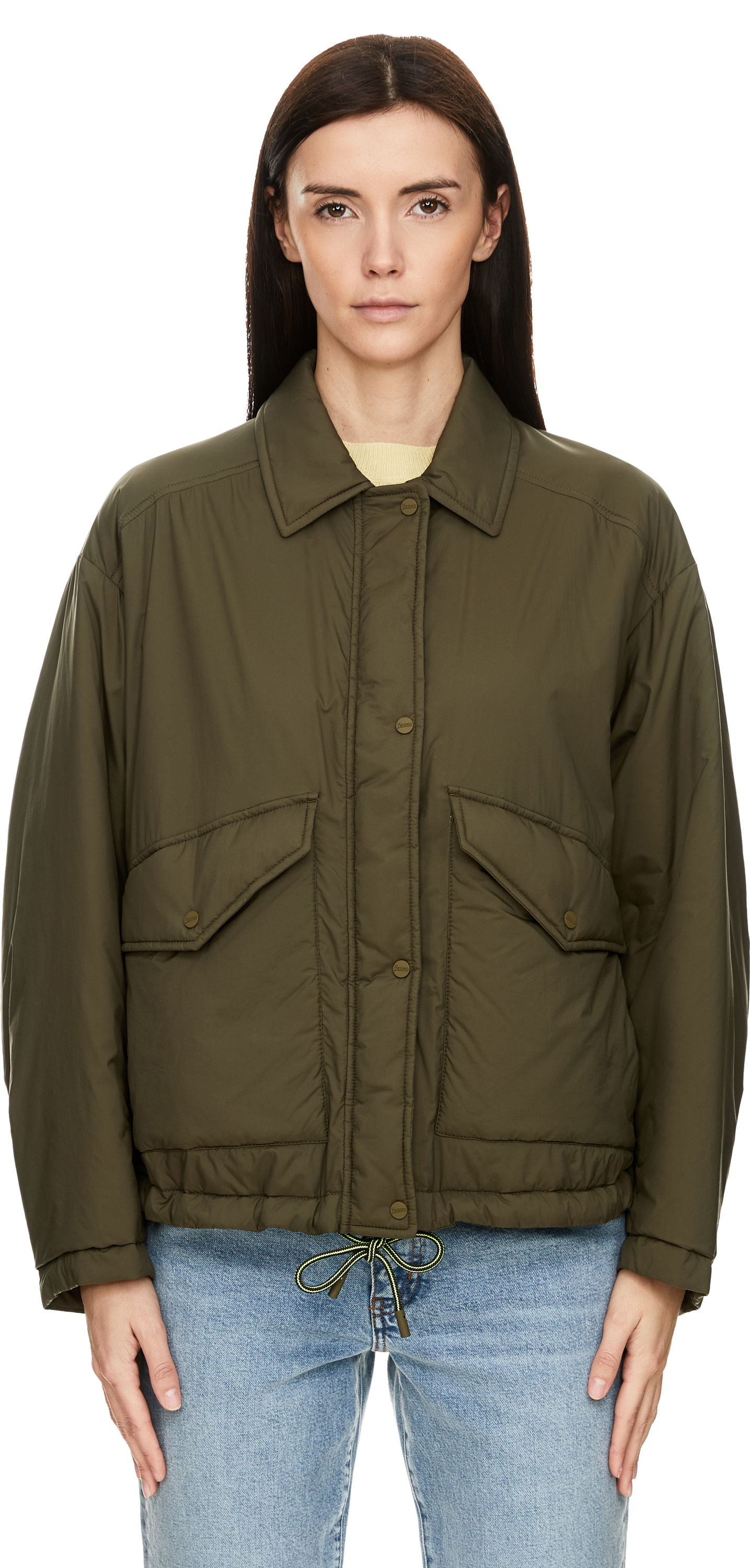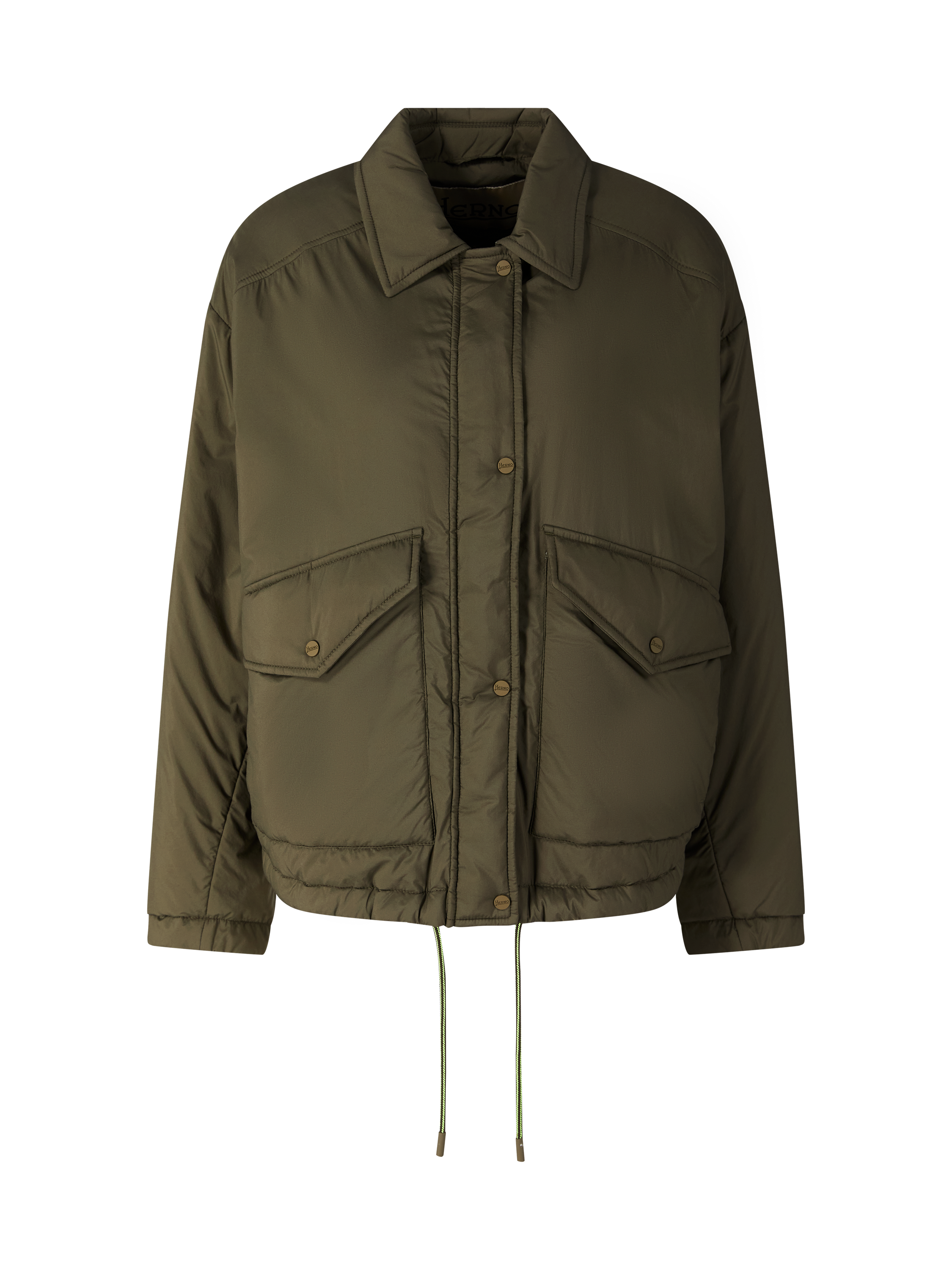 Diese Jacke in Olivgrün von Herno wurde aus Polyamid gefertigt und besticht durch die lässige Passform. Der Umlegekragen, die zwei aufgesetzten Taschen, die zwei Eingrifftaschen mit Druckknopf und Logoprägung sowie der Reißverschluss mit verdeckter Druckknopfleiste machen das Modell zu einem wertvollen Begleiter.