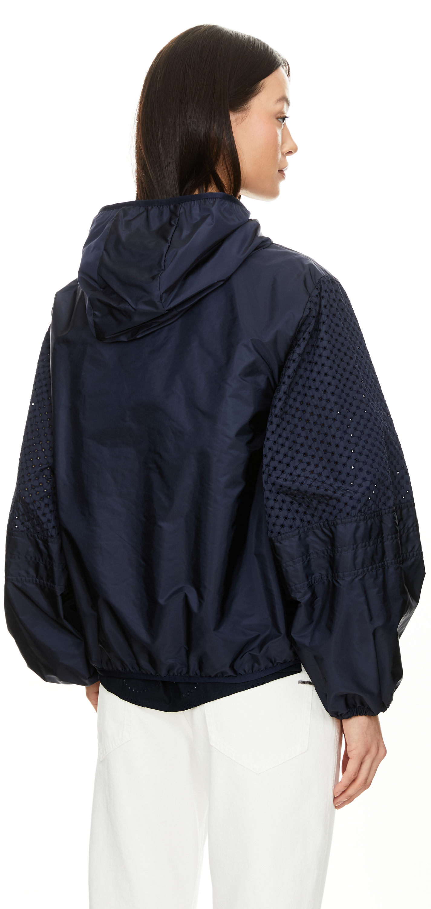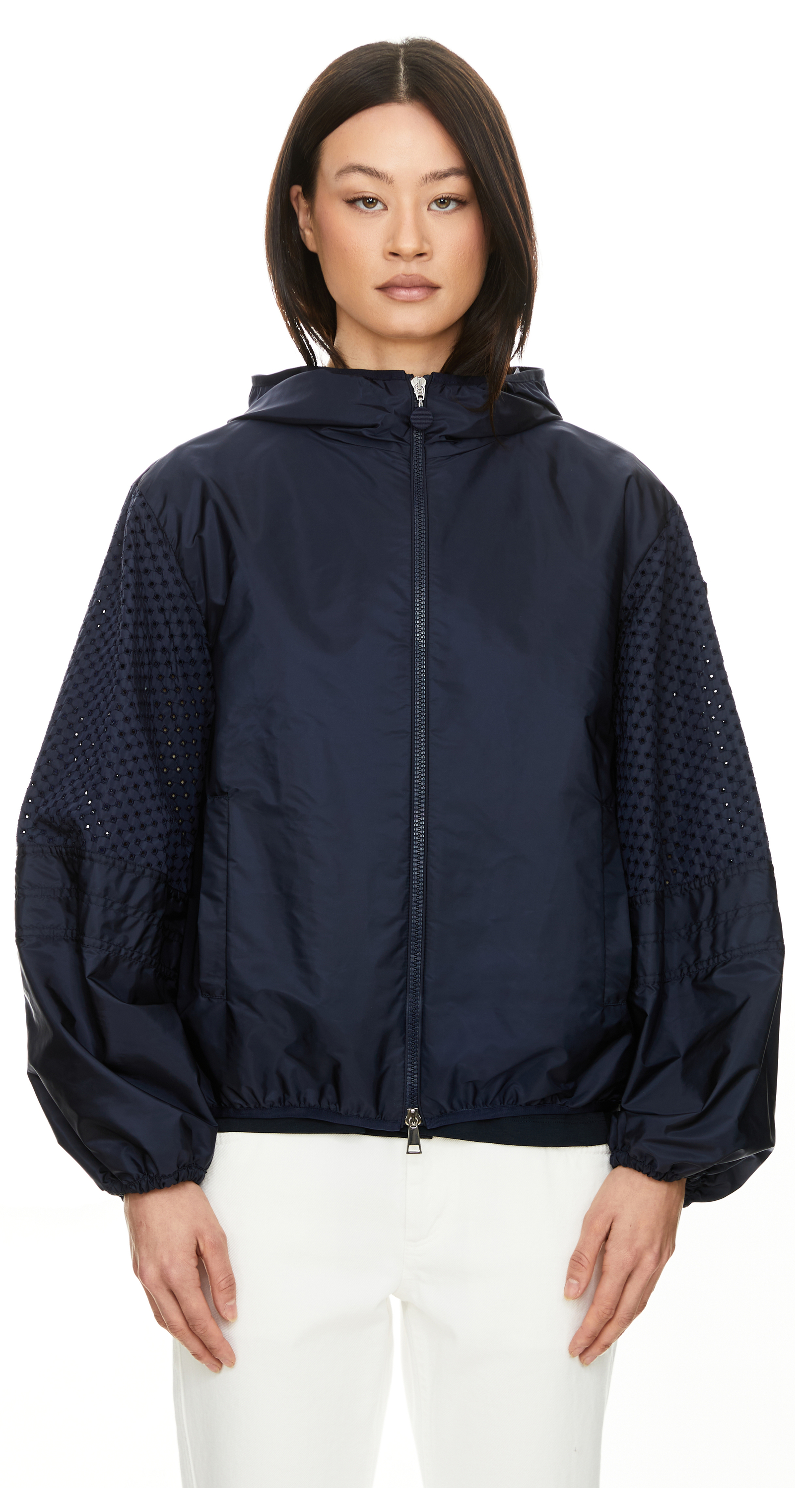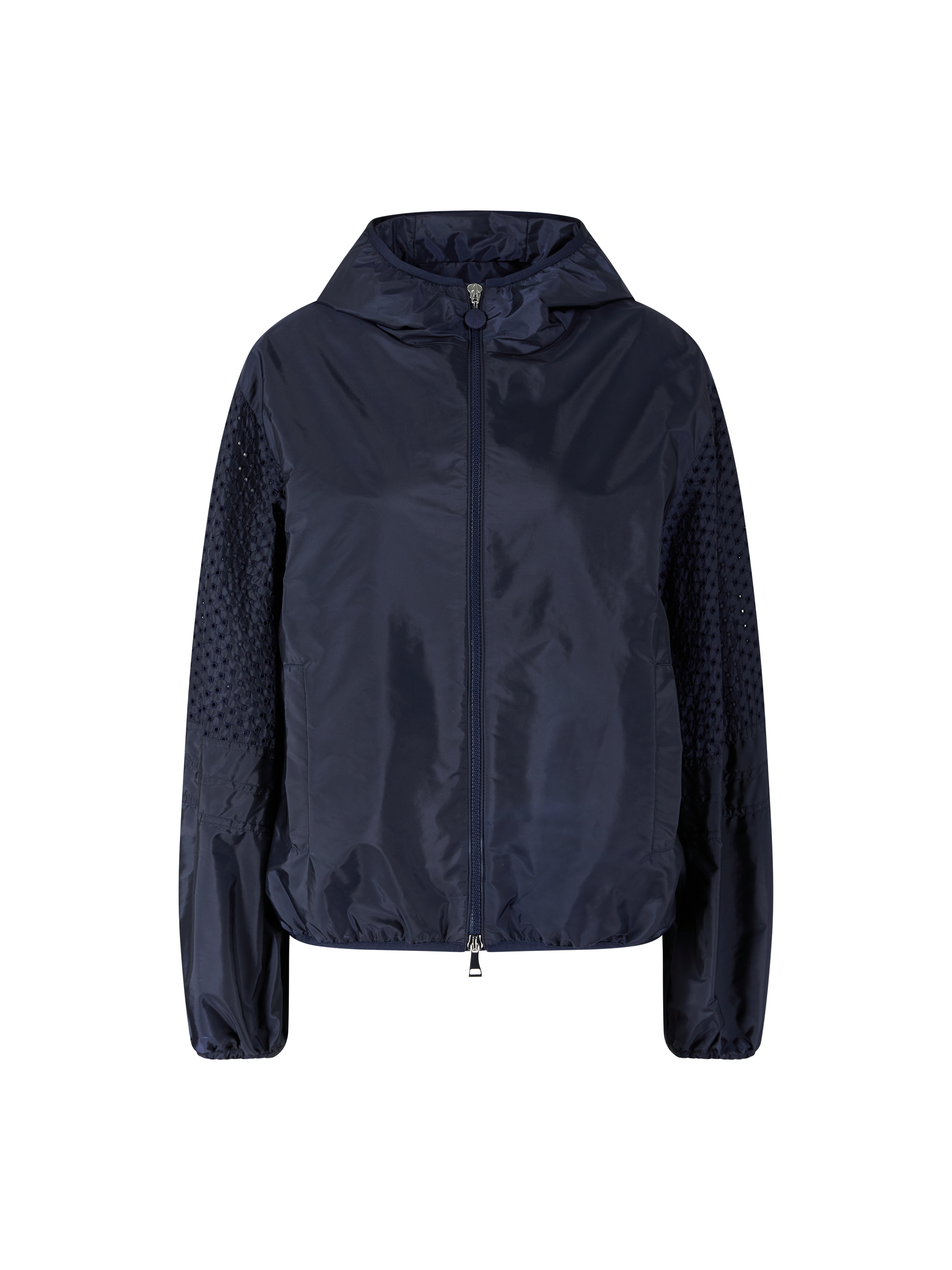 Regenjacke 'Zelkova' mit Kapuze und San Gallo-Besatz Marineblau