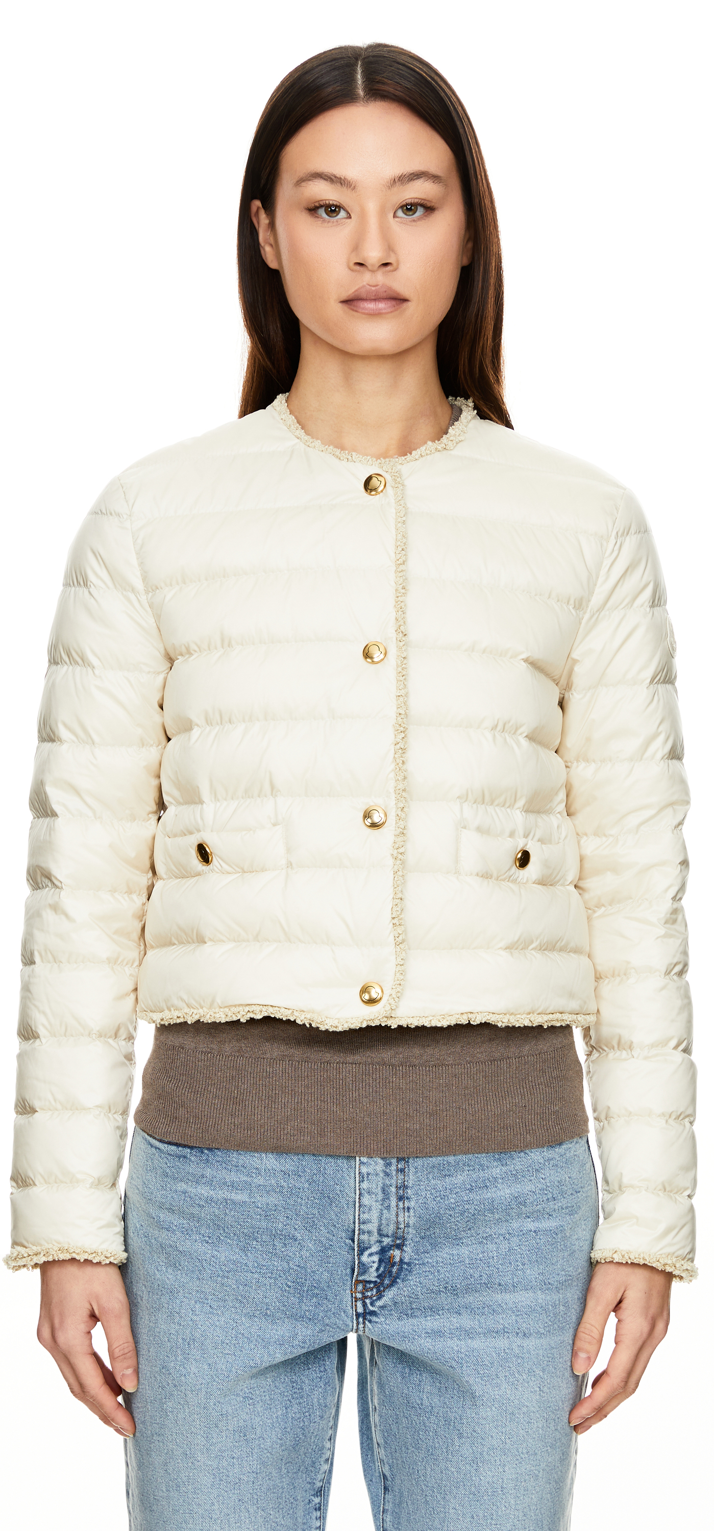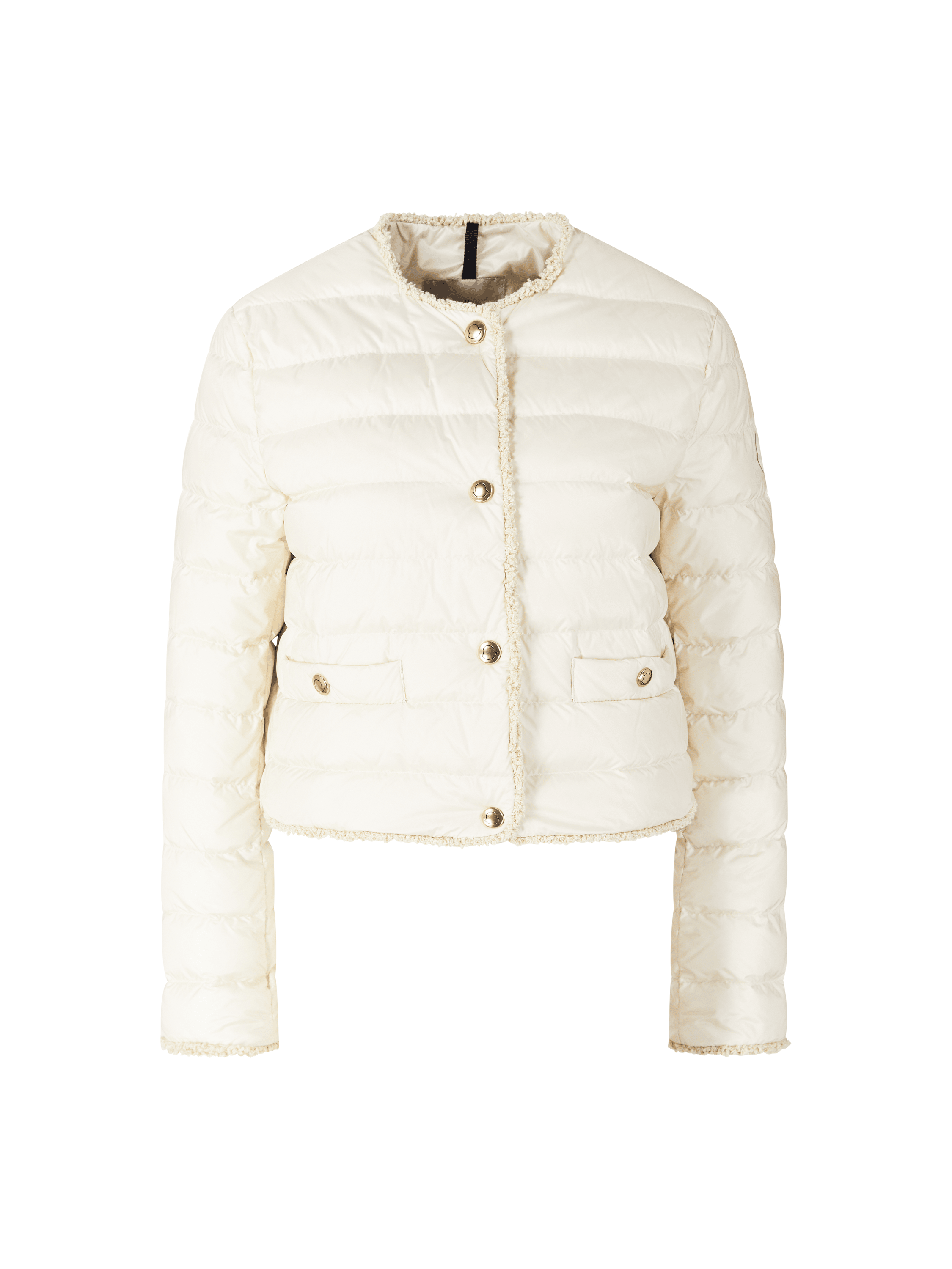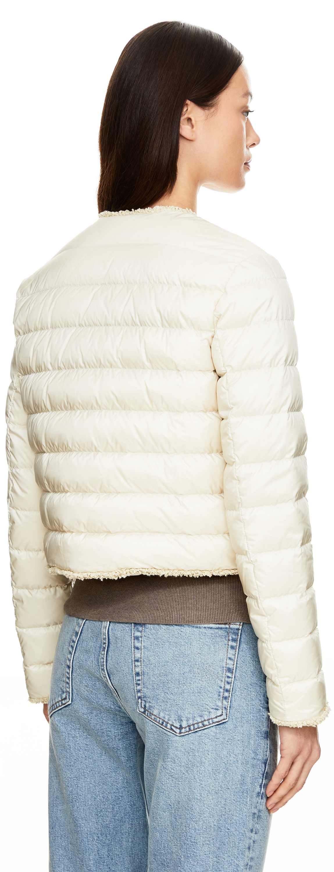 Kurze Daunenjacke 'Fleurs' mit Bouclé-Besatz Beige