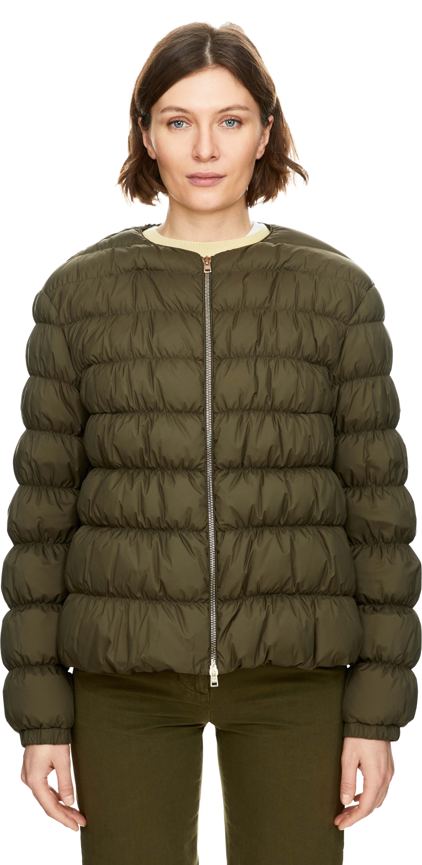 Diese Jacke in Olivgrün von Herno wurde aus recycelter Nylonmikrofaser gefertigt und mit wärmenden Daunen gefüttert. Die wasserabweisende Ausrüstung, die Streifensteppung sowie das Herno-Logo aus Metall auf der Rückseite zeichnen dieses Modell aus. Der Rundhalsausschnitt, die langen Ärmel und der Zwei-Wege-Reißverschluss runden das Design elegant ab.