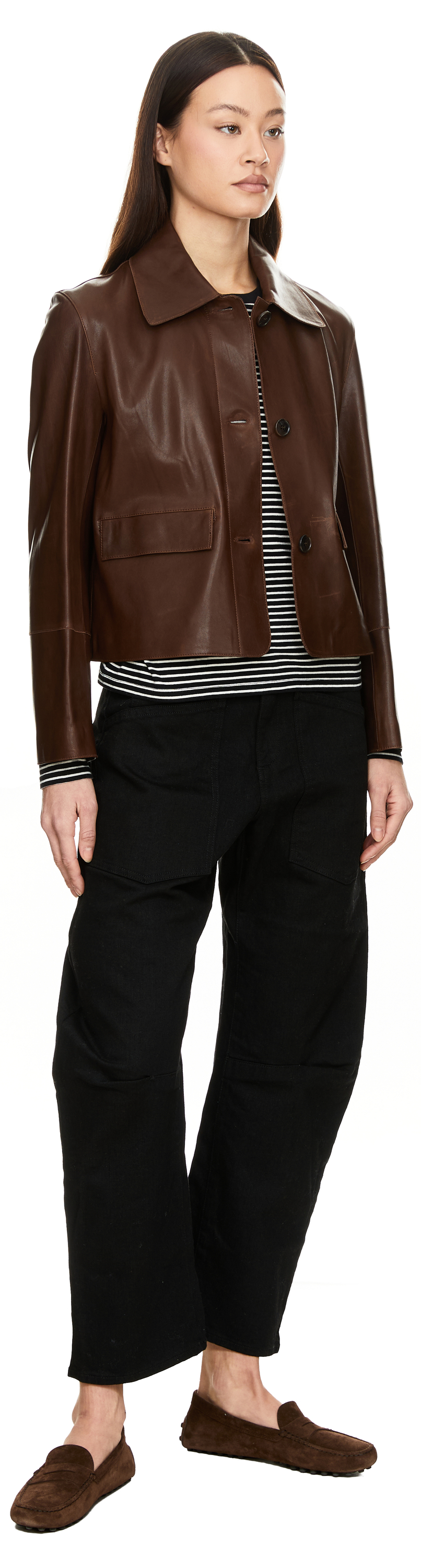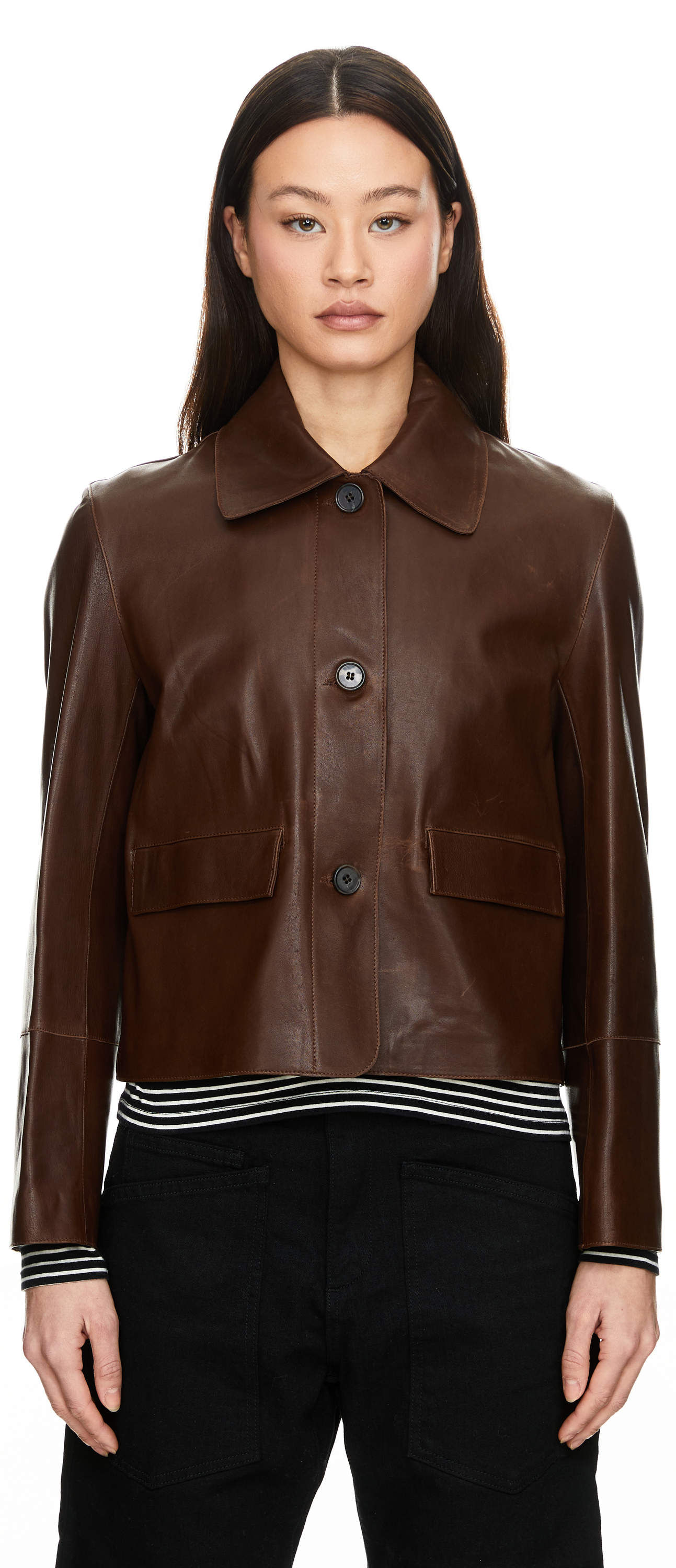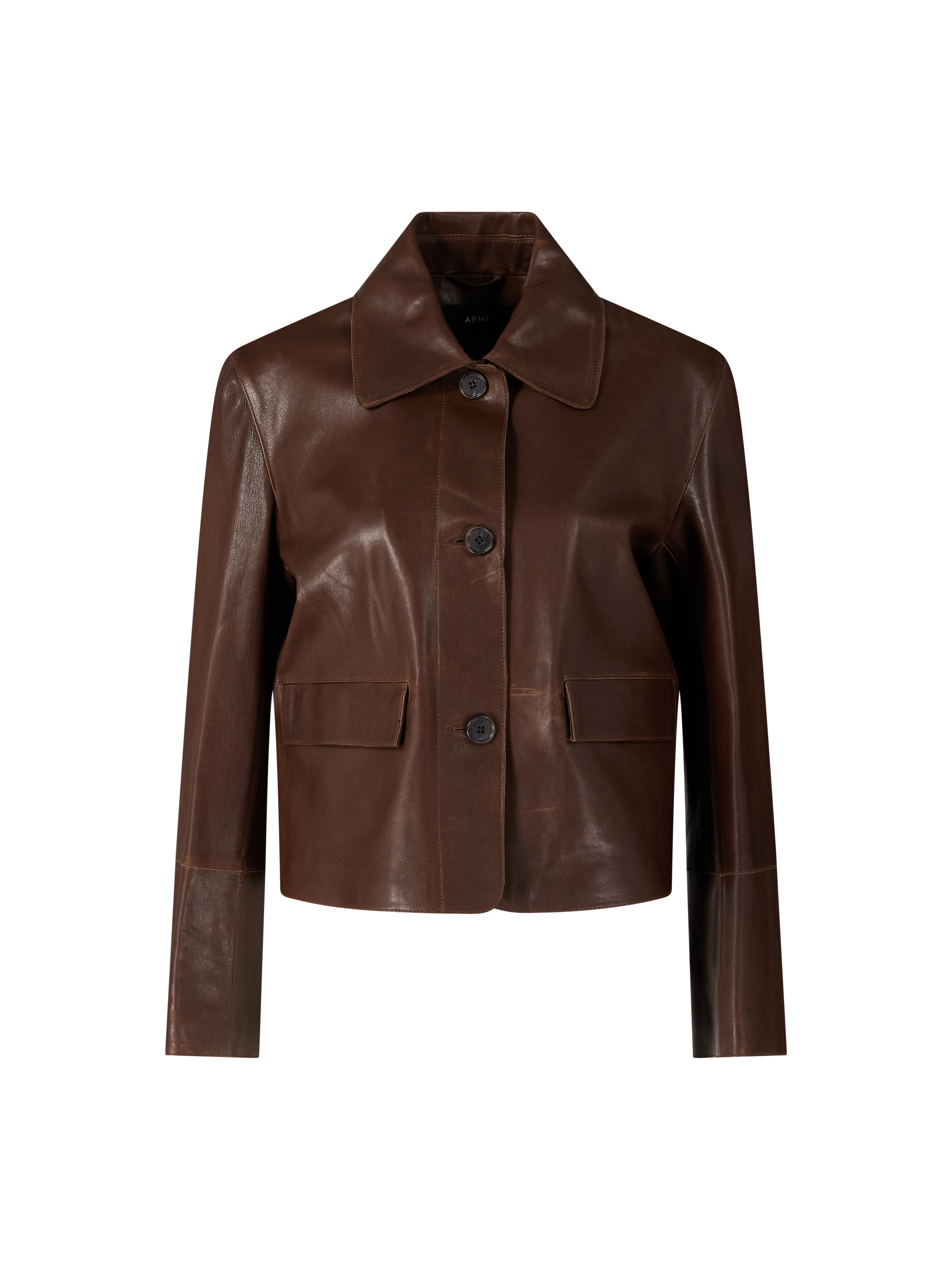 Die Jacke 'Vintage Vegetal' in Dunkelbraun von ARMA wurde aus hochwertigem Plongé-Lammleder gefertigt und besticht durch die lässige, authentische Optik. Die taillierte Silhouette und die drei Hornknöpfe setzen stilvolle Akzente, während die aufgesetzten Taschen und der klassische Kragen das Design harmonisch abrunden. Das Leder weist einen dezent strukturierten Look mit charaktervollen Details auf, die der Jacke einen authentischen Vintage-Charme verleihen. Mit dem Tragen entwickelt sich das Leder weiter.