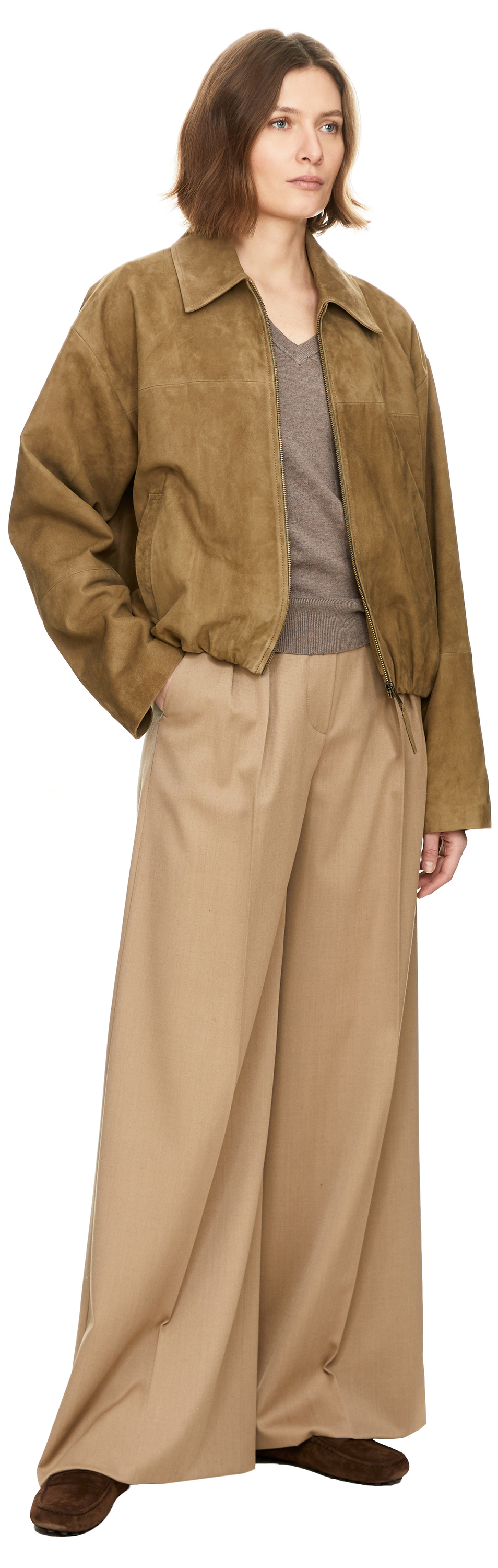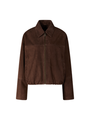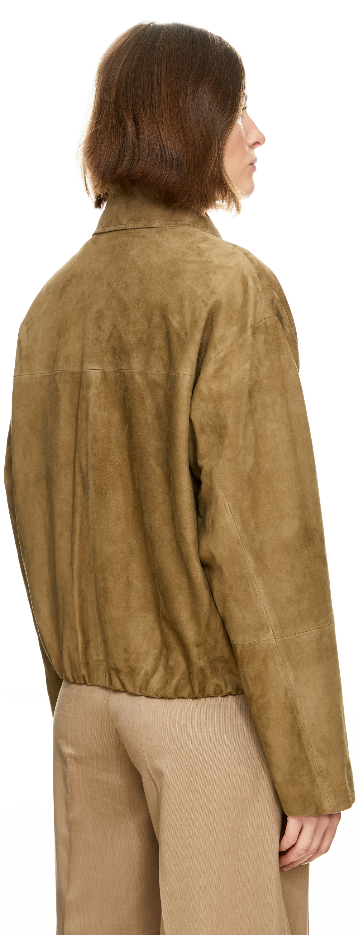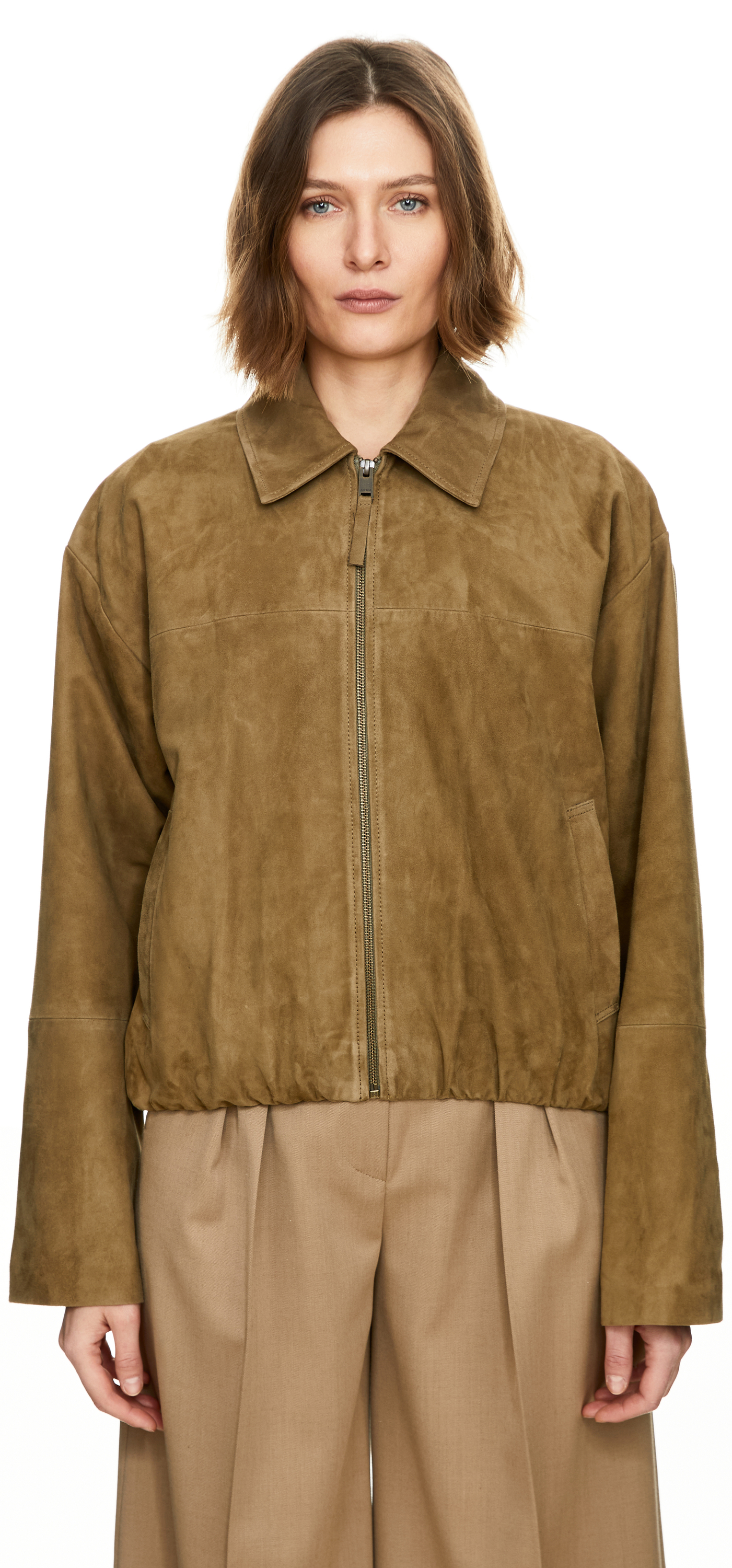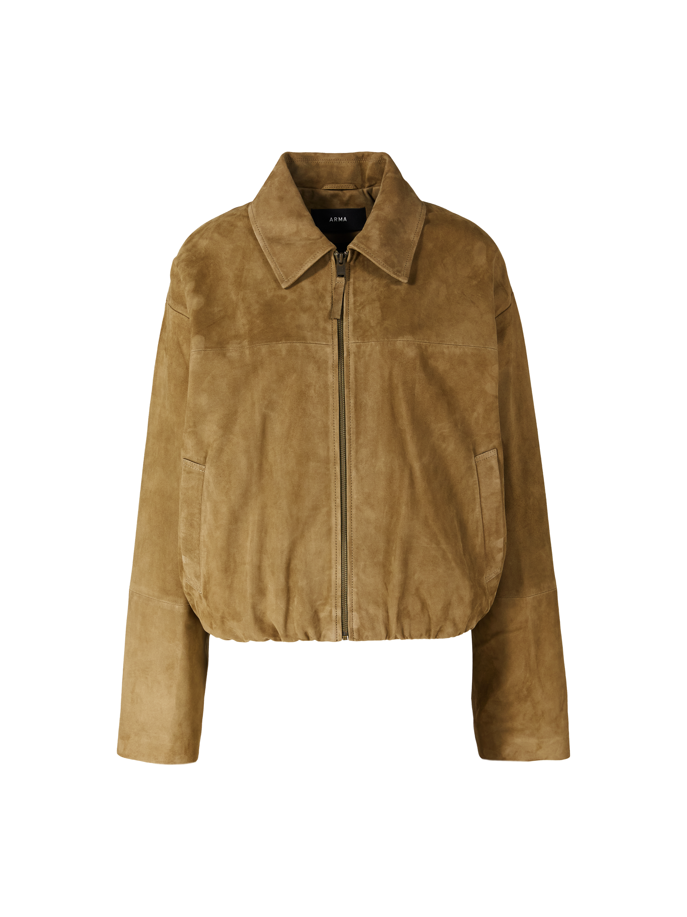 Die Jacke 'Loua' in Olivgrün von ARMA wurde aus hochwertigem Veloursleder gefertigt und besticht durch die lässige Passform. Der Reißverschluss, die seitlichen Eingrifftaschen und die langen Ärmel prägen das Design, während der elastische Saum und die weiche Haptik das Modell perfekt abrunden.