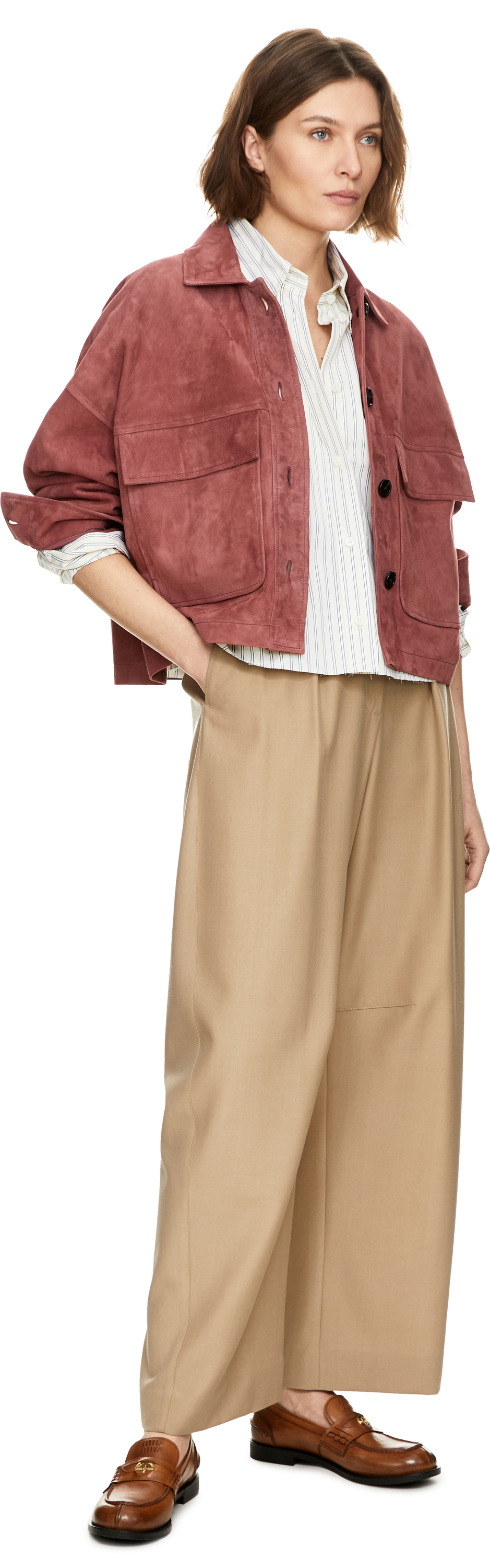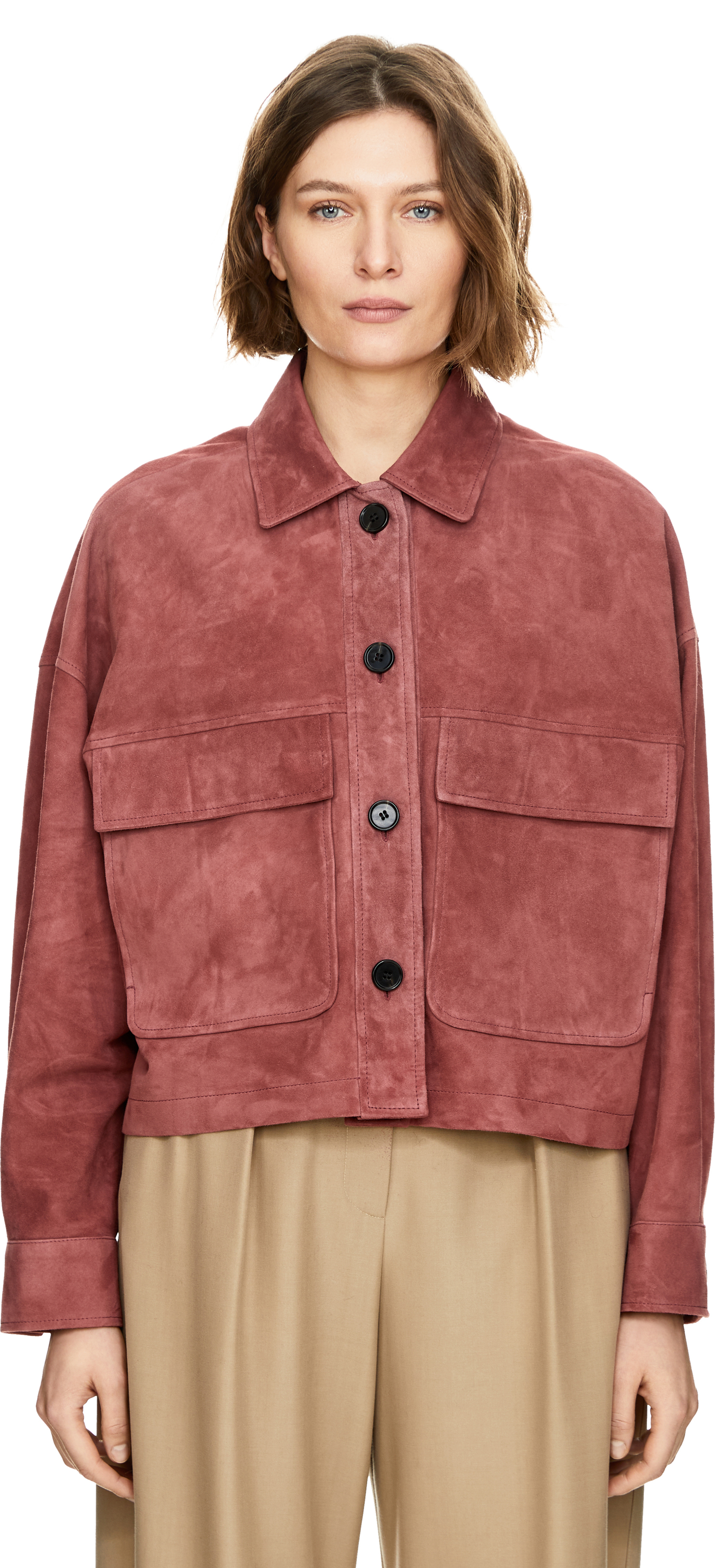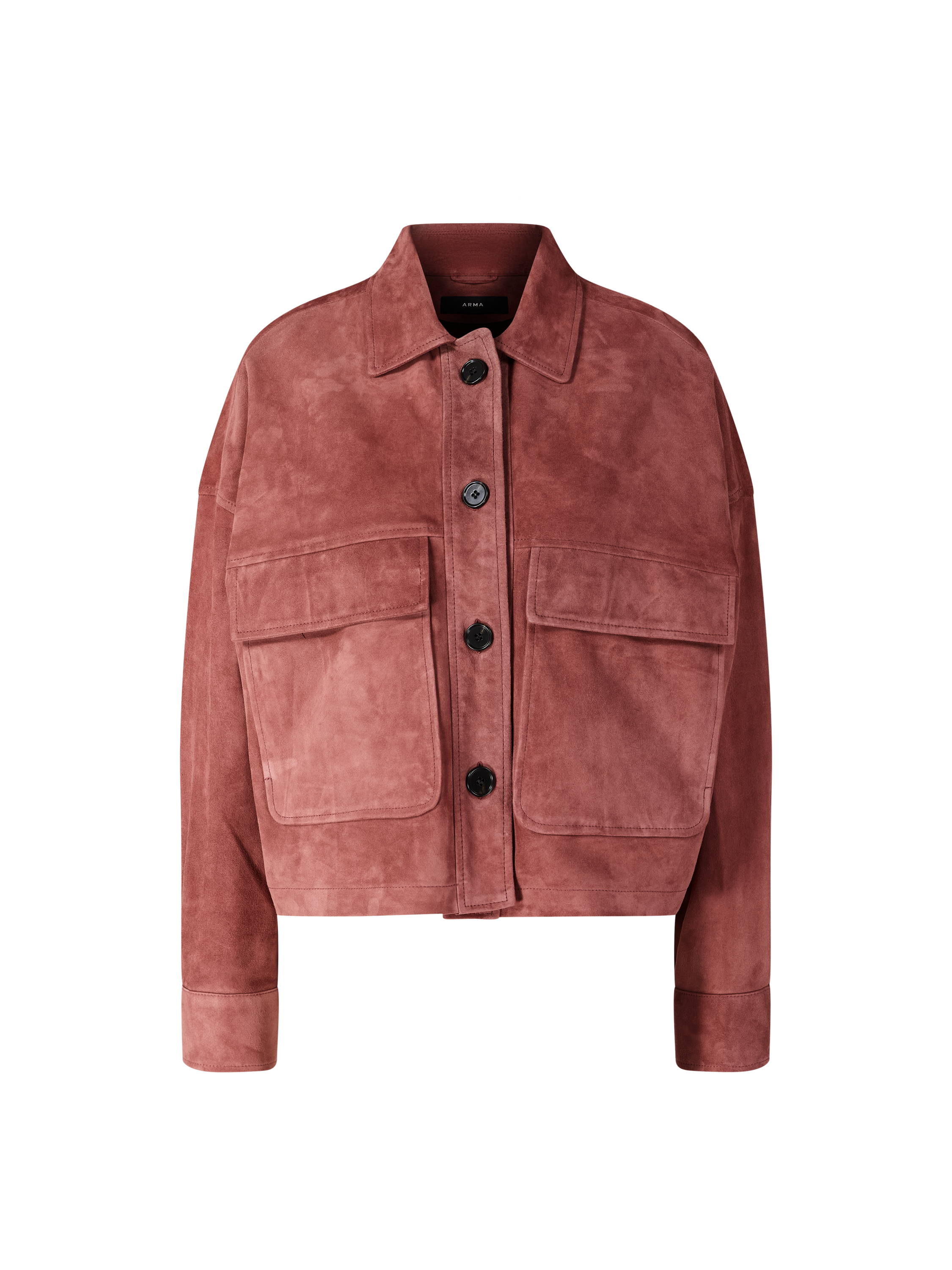 Die Jacke 'Miri' in Pink Shade von ARMA wurde aus Lammleder gefertigt und besticht durch die leicht verkürzte Passform. Die langen Ärmel setzen einen femininen Akzent, während die aufgesetzten Vordertaschen und der Hemdblusenkragen das Design abrunden.