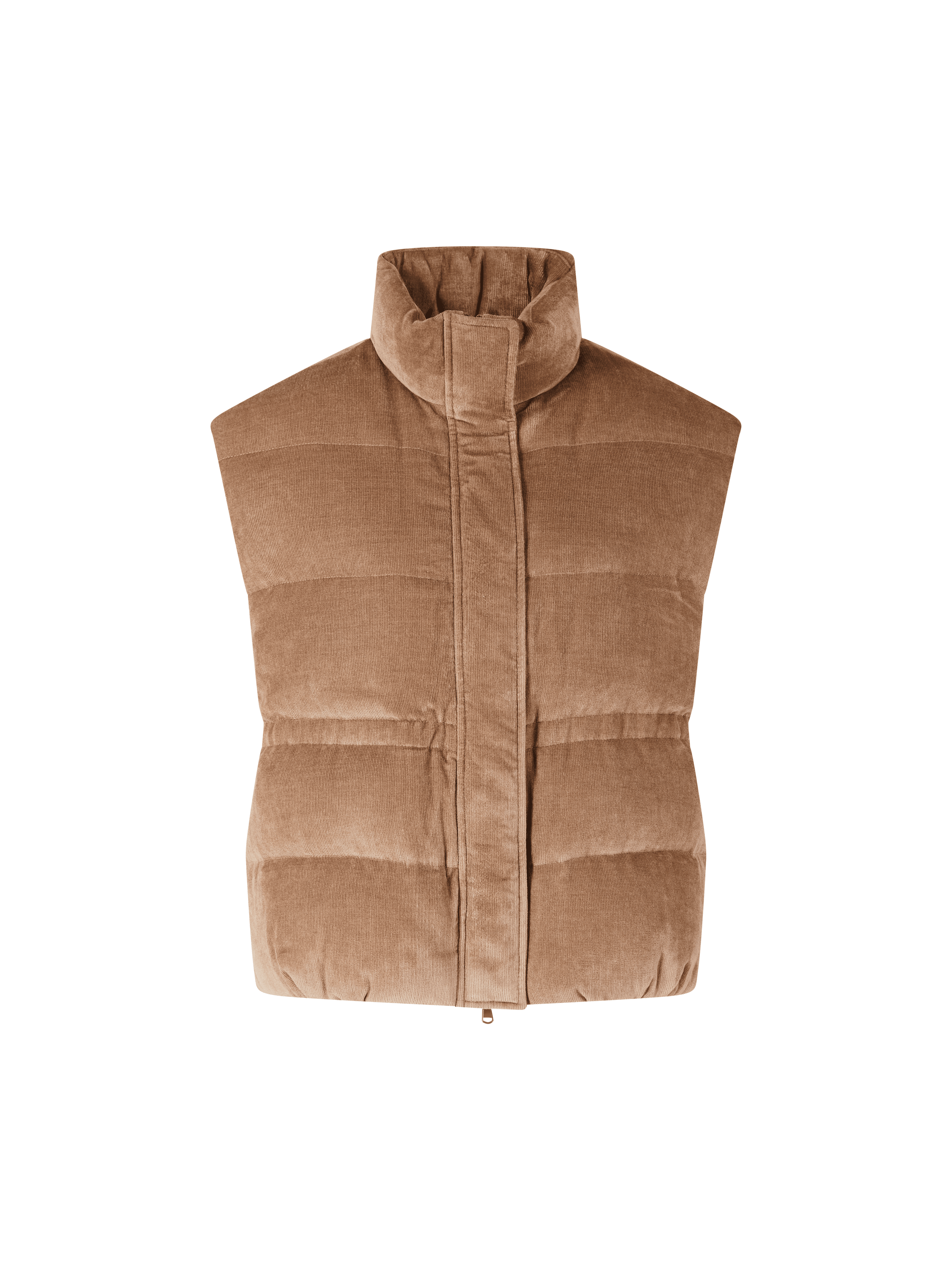 Daunenweste aus Cord mit Monili-Perlen Hellbraun