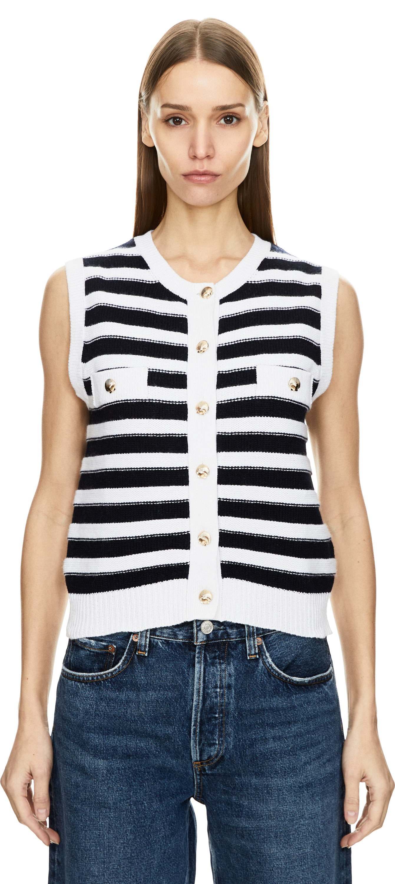Gestreifte Cashmere-Weste Marineblau