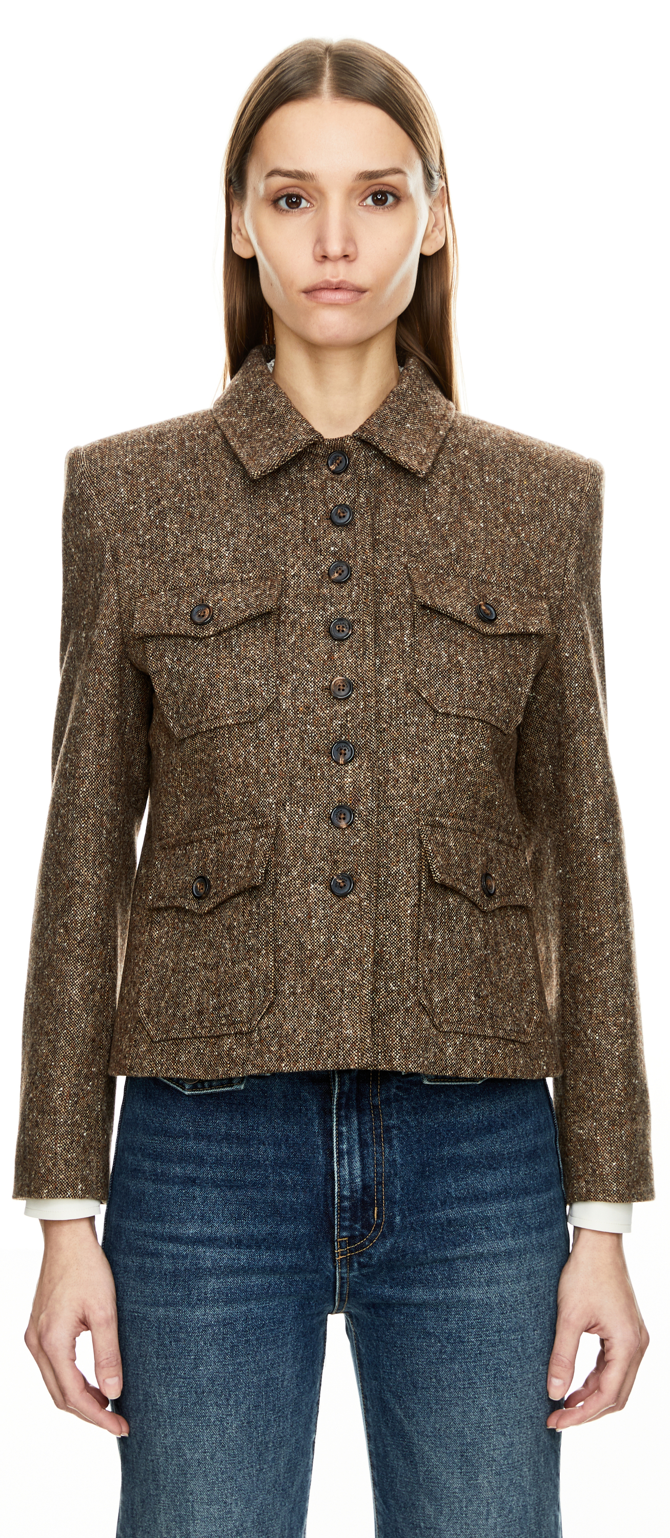 Die Jacke 'Jamison' in Braun von Nili Lotan wurde aus einer hochwertigen Wollmischung gefertigt und überzeugt durch die schmal geschnittene Passform. Der Kragen, die Brusttaschen mit Patten, die aufgesetzten Taschen sowie die Hornknöpfe mit Logo verleihen dem Modell einen modernen Look.