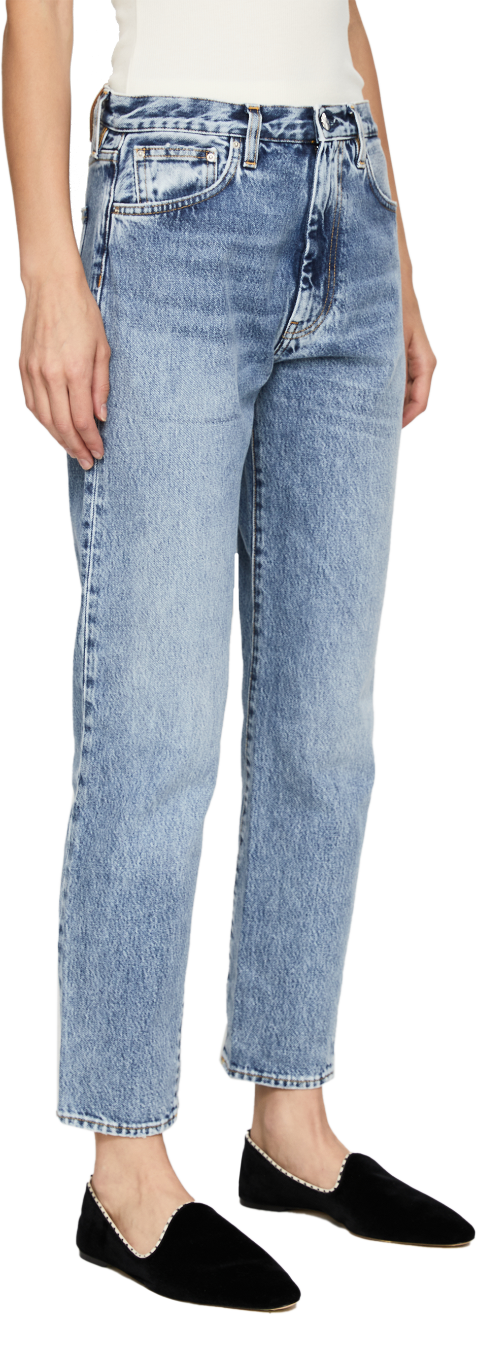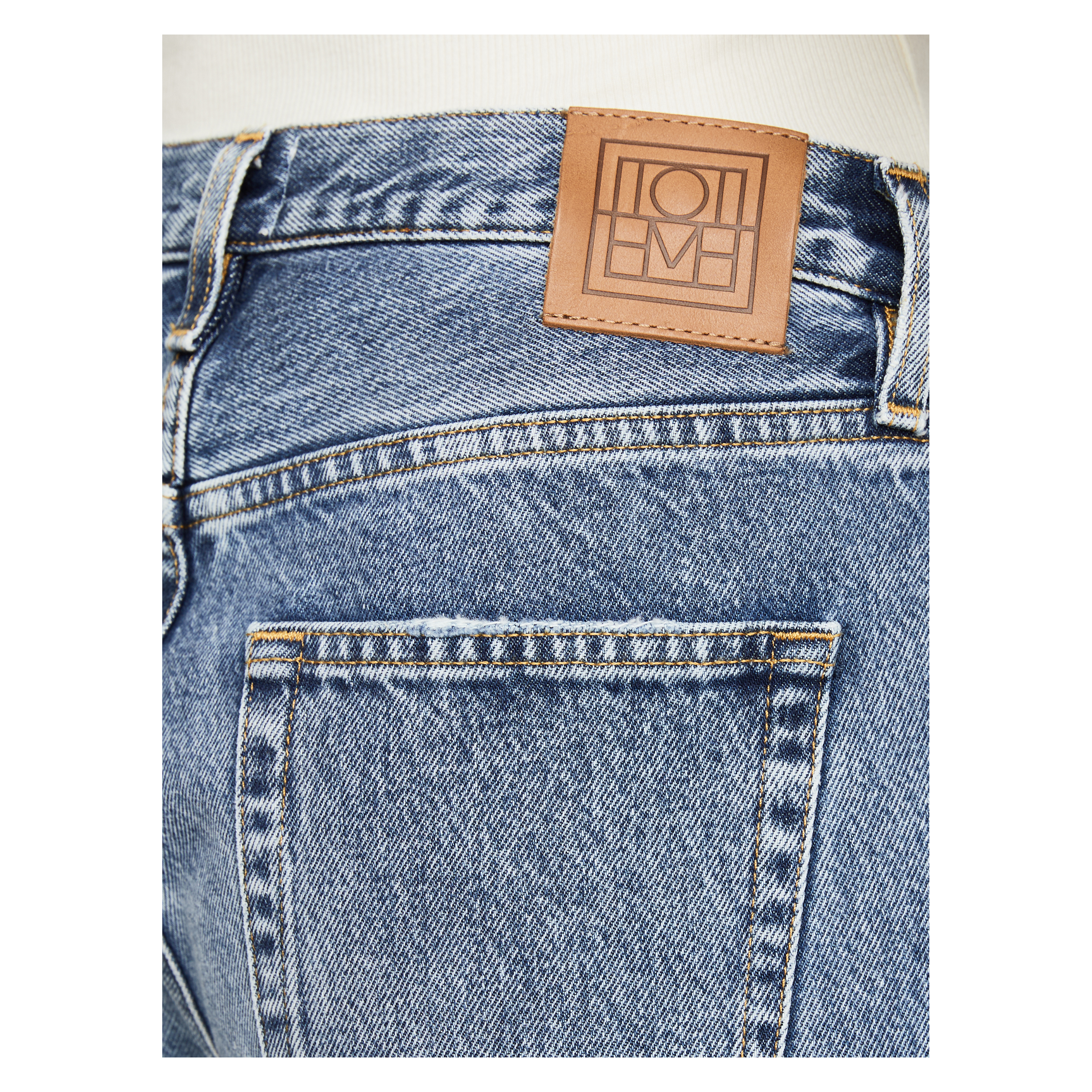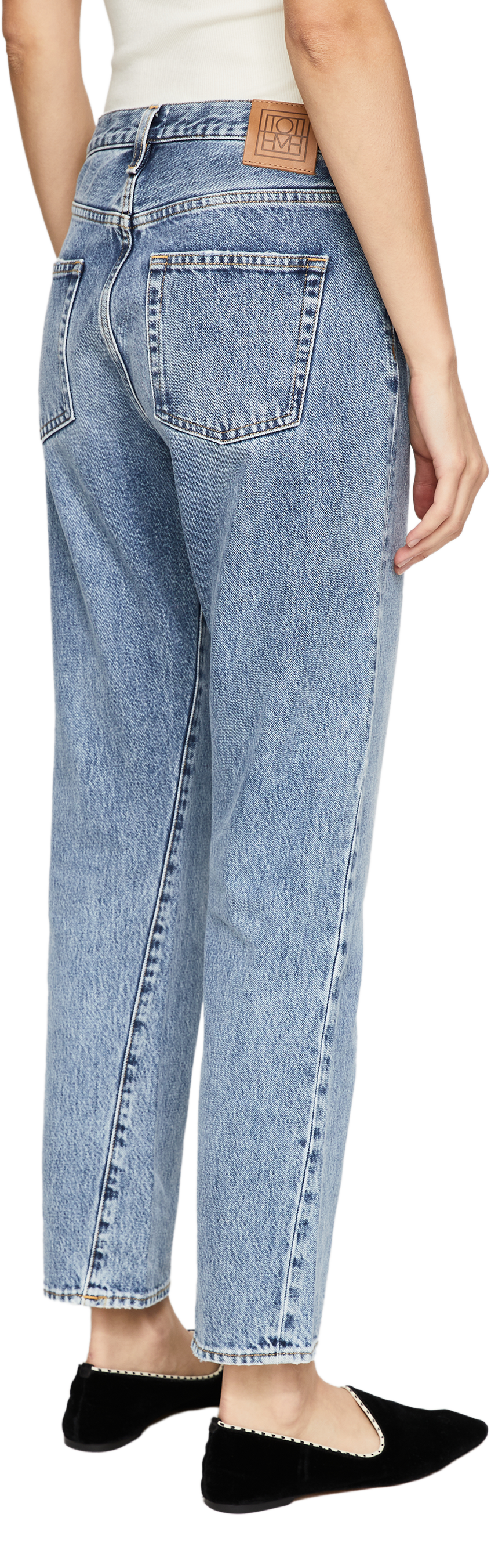 Die Jeans 'Twisted Seam' in Hellblau von TOTEME wurde aus hochwertiger Baumwolle gefertigt und besticht durch ein schmal zulaufendes, verkürztes Bein. Das Modell wird durch die mittlere Leibhöhe und den klassischen Schnitt perfektioniert.