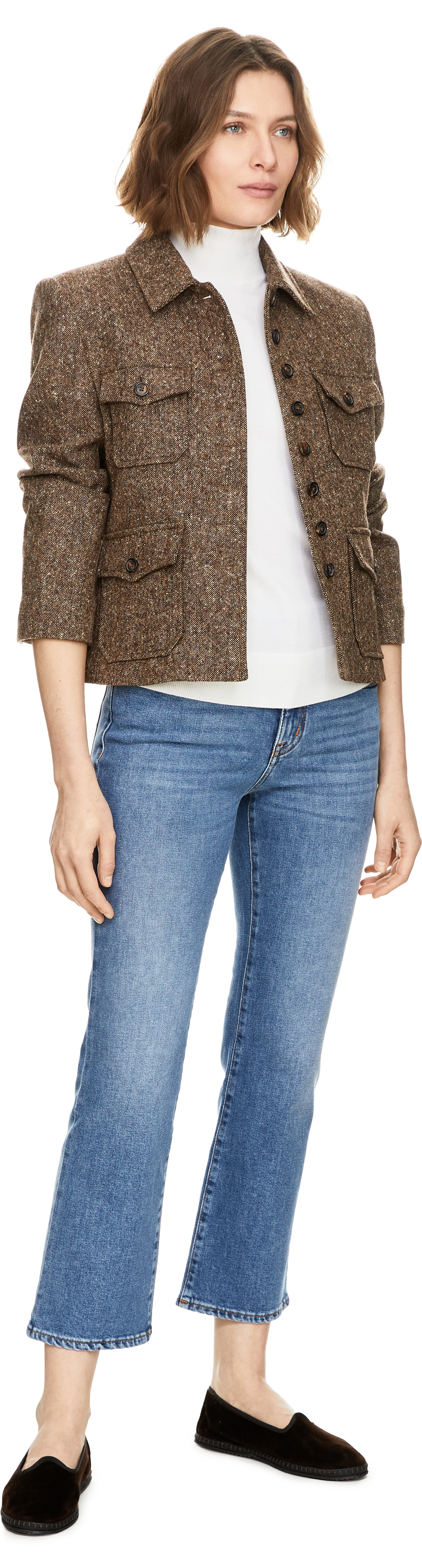 Das Model ist 175 cm groß und trägt Größe 27.