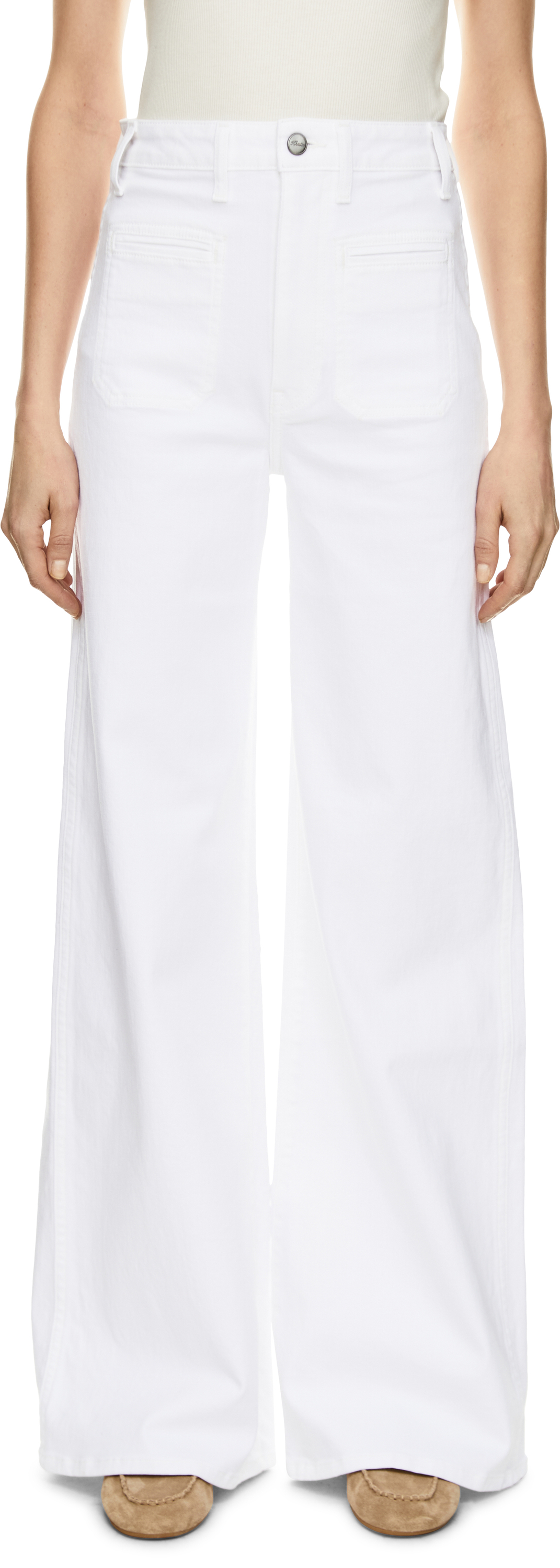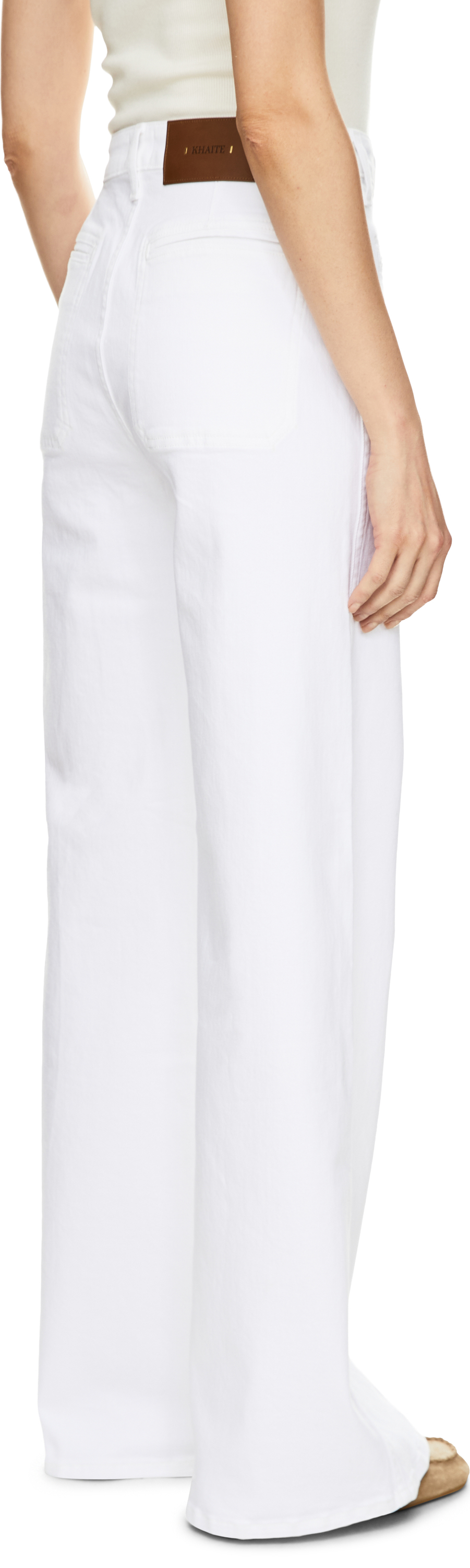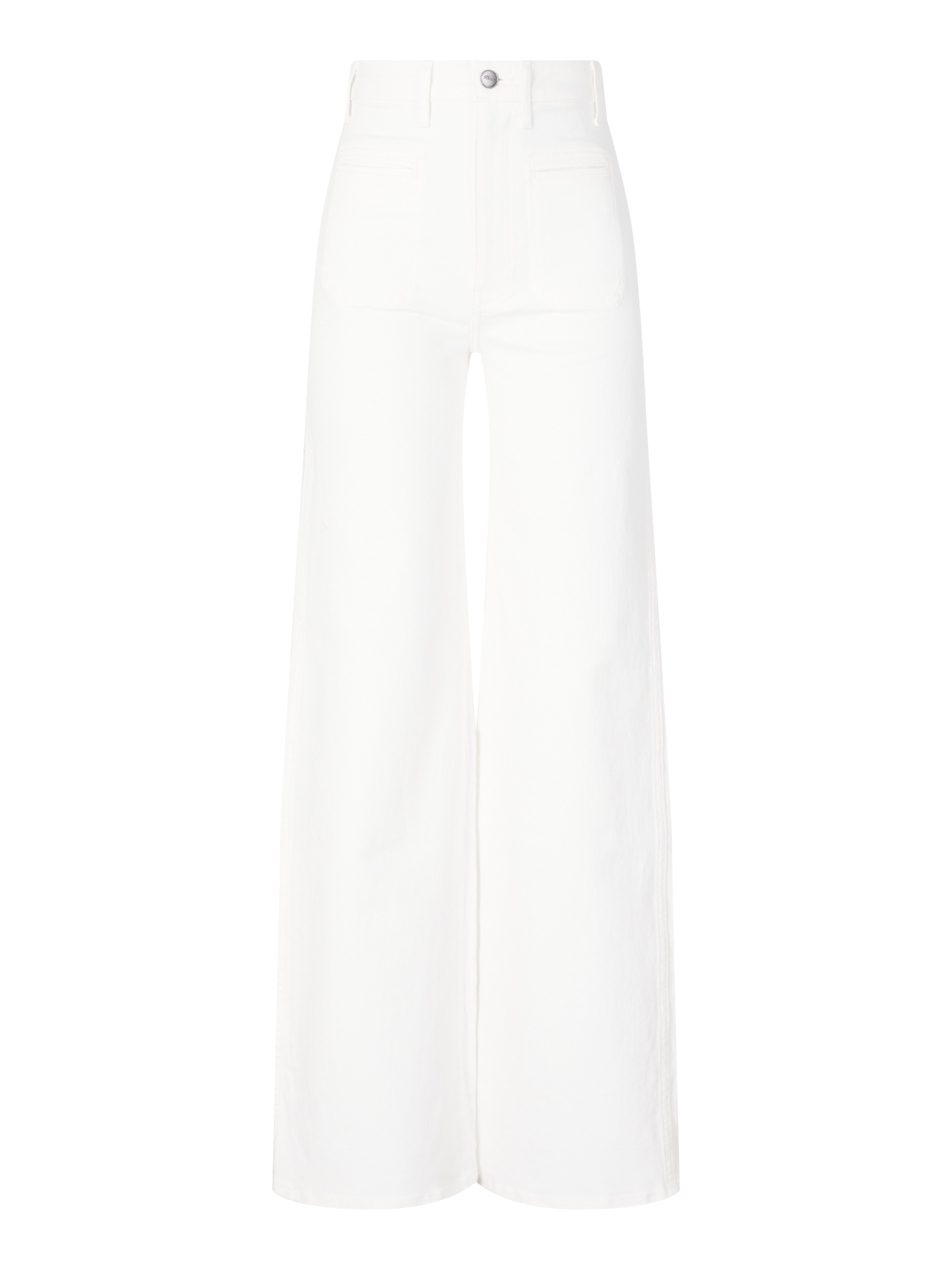 Die Jeans 'Delmonico' in Weiß von Khaite wurde aus Baumwolle gefertigt und besticht durch das ausgestellte Bein. Die hochgeschnittene Silhouette mit aufgesetzten Paspeltaschen vorne, der elegante, weite Beinausschnitt sowie der Knopf mit Logoprägung verleihen der Jeans besondere Raffinesse.