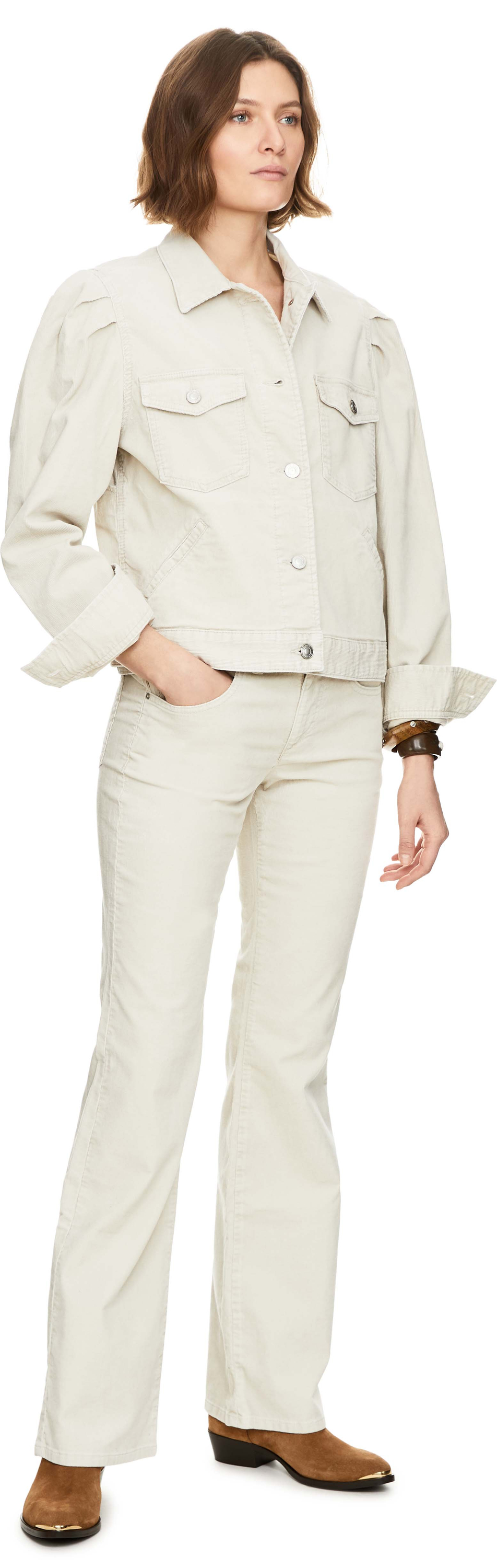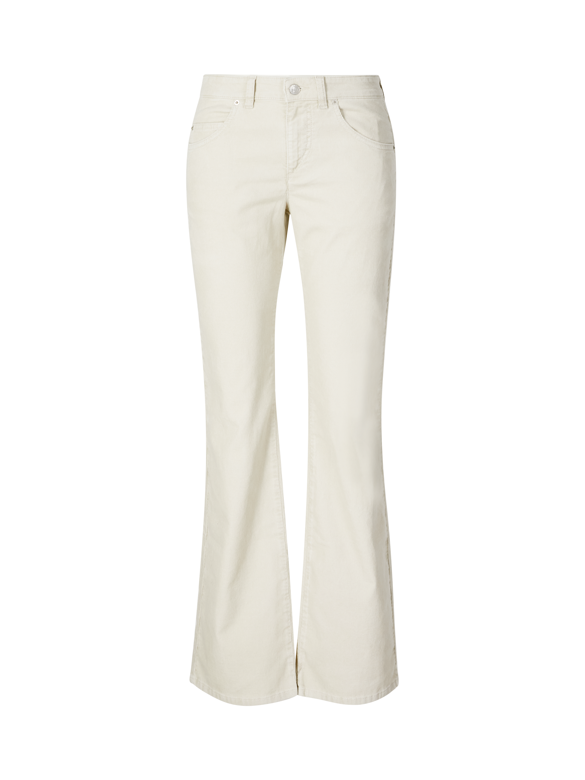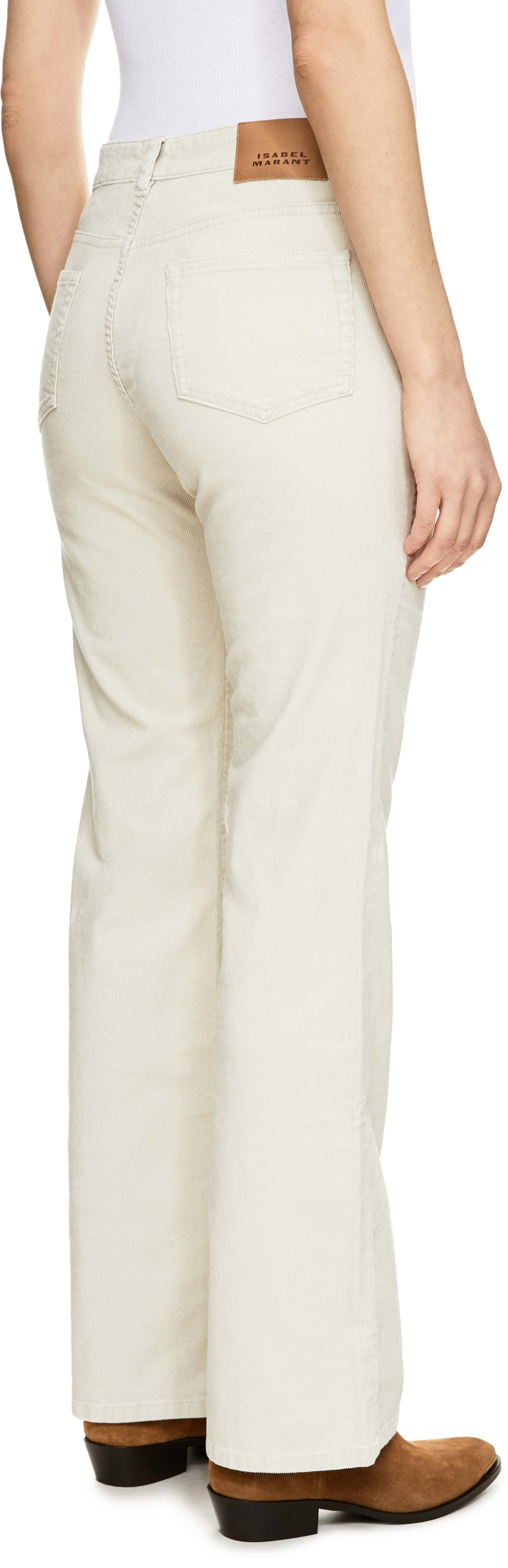 Die Jeans 'Kelly' in Crème von Marant Étoile wurde aus Baumwolle gefertigt und besticht durch das ausgestellte Bein. Die niedrige Leibhöhe, das Lederetikett mit geprägtem „Isabel Marant“-Logo auf der Rückseite, die Nieten aus Metall sowie die gravierte Knopfleiste aus Metall und der verdeckte Reißverschluss vollenden den modernen Look.