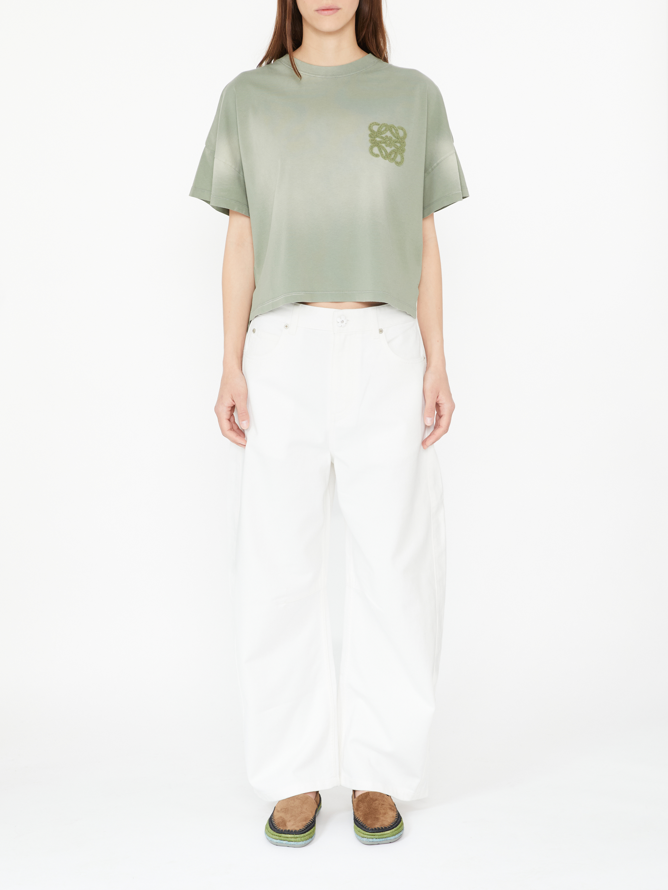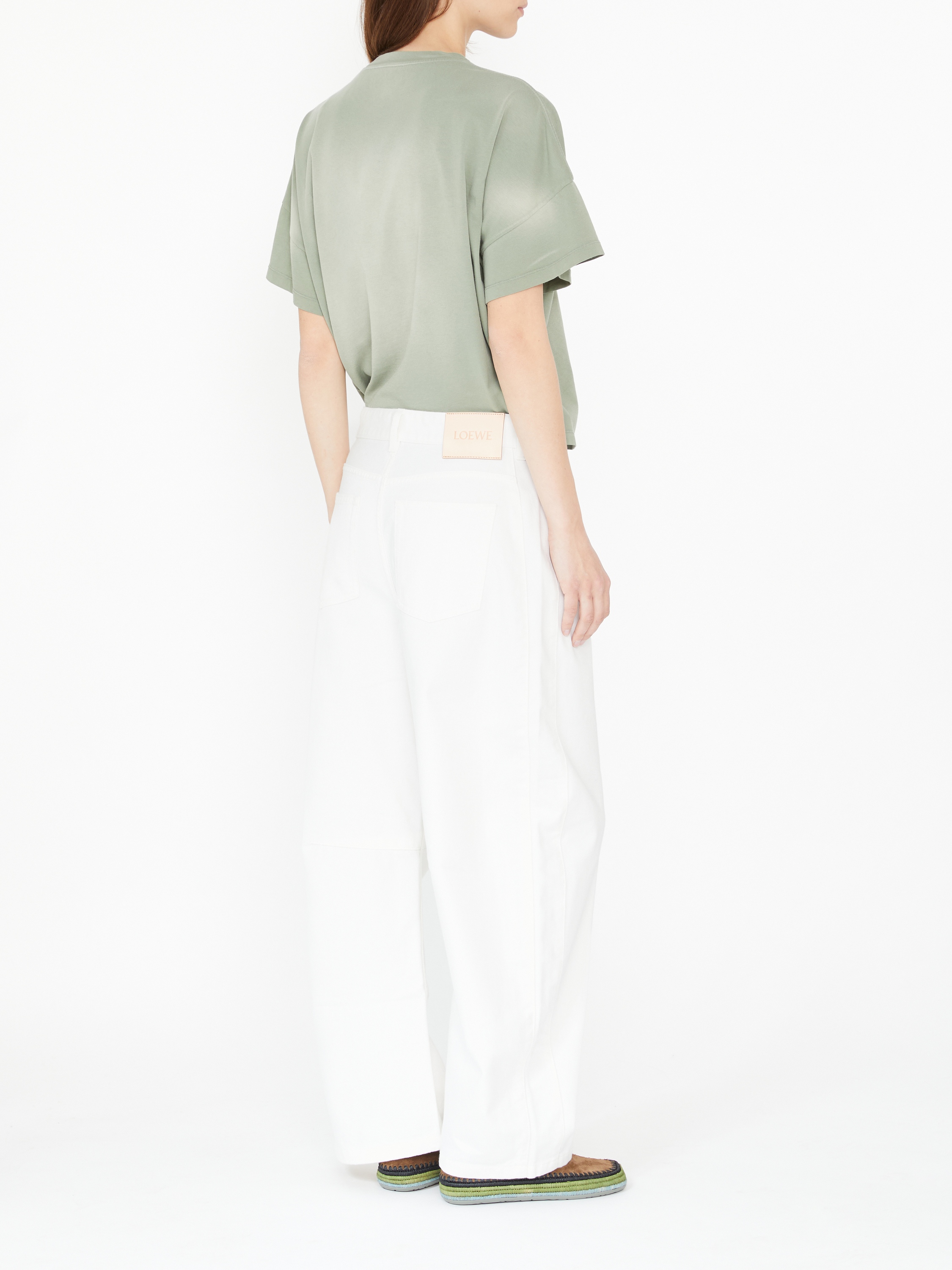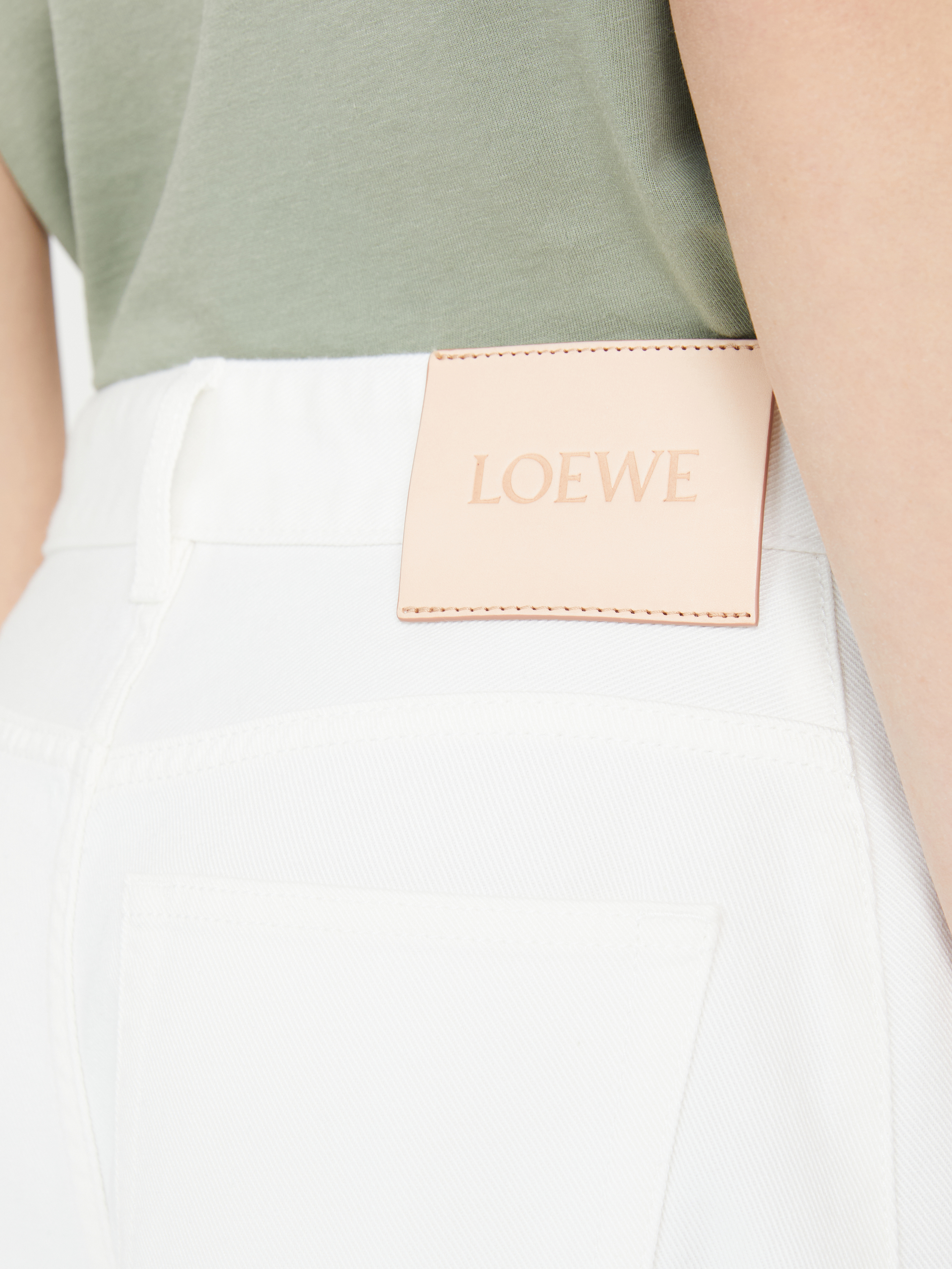 -30 %Die Jeans 'Anagram Barrel' in Weiß von LOEWE aus der Kooperation mit Paula's Ibiza wurde aus Baumwolle gefertigt und besticht durch die ballonförmige Silhouette. Die mittlere Leibhöhe, das 5-Pocket-Design und die Gürtelschlaufen zeichnen dieses moderne Modell aus. Abgerundet wird dieser Look auf der Rückseite mit dem LOEWE Wildlederaufnäher.