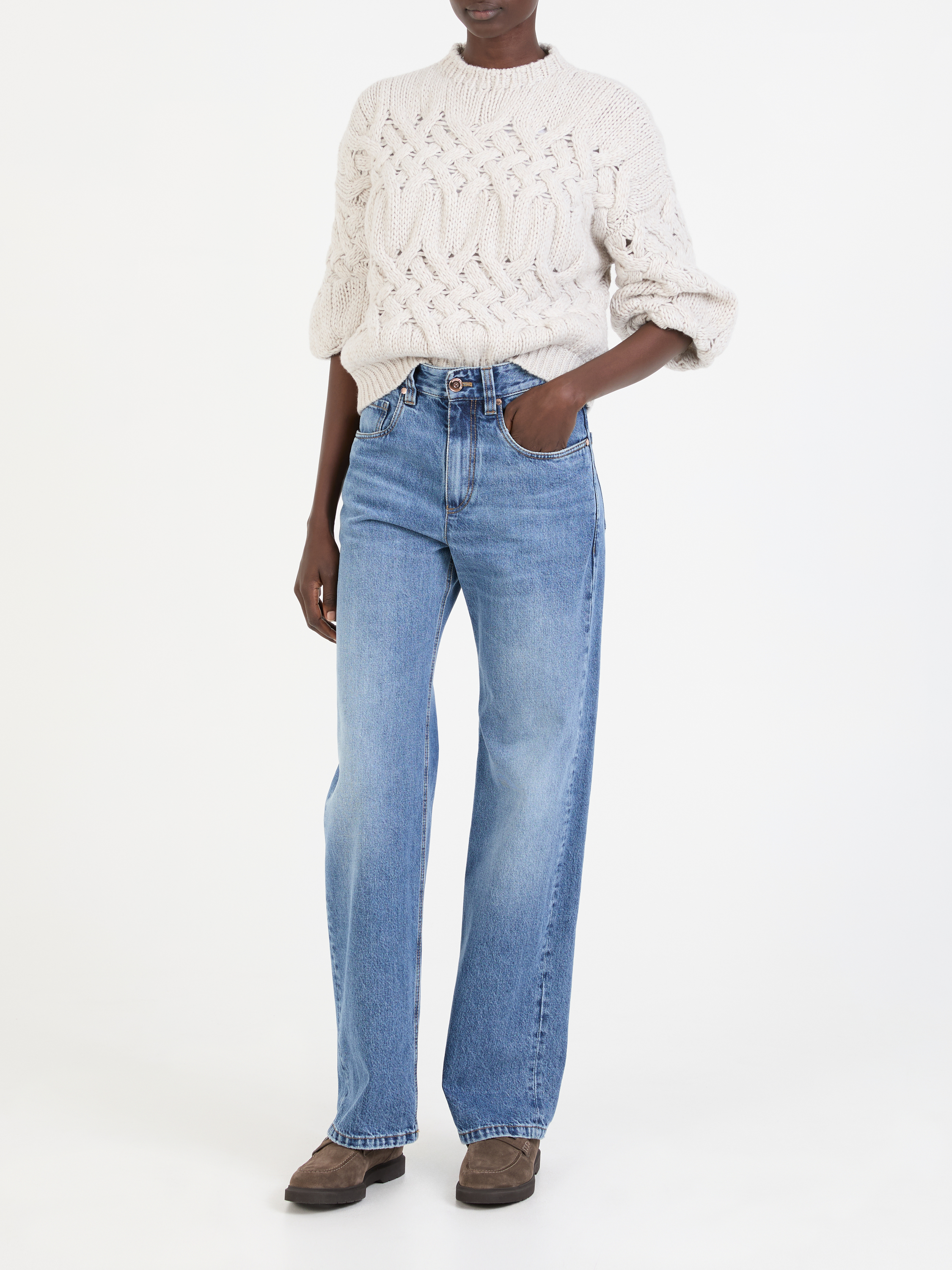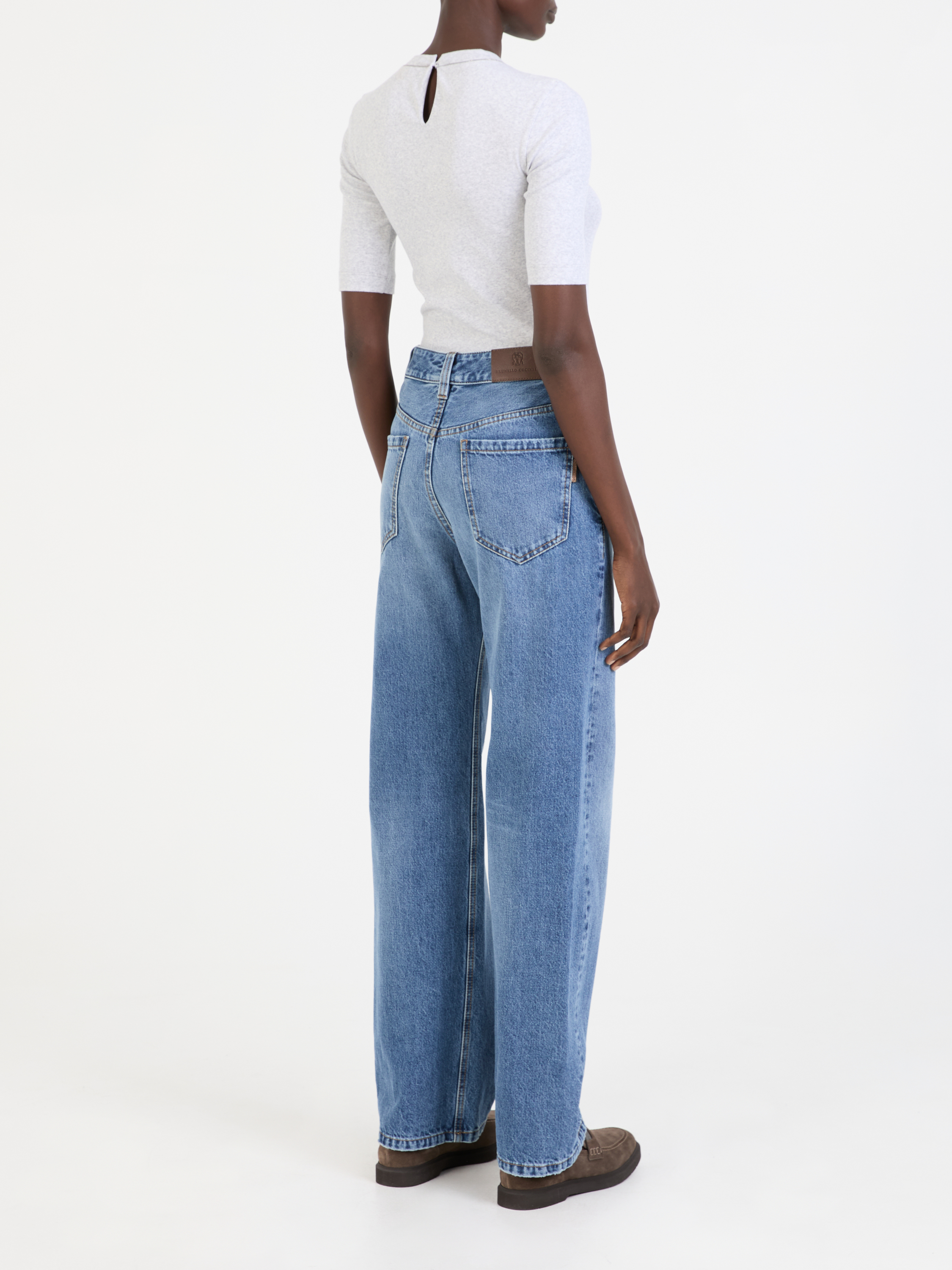Diese Jeans in Mittelblau von Brunello Cucinelli wurde aus einer hochwertigen Baumwolle gefertigt und mit Nieten Stickereien abgerundet. Das gerade Bein, die mittlere Leibhöhe und die dezente Waschung vollenden diesen modernen Look.