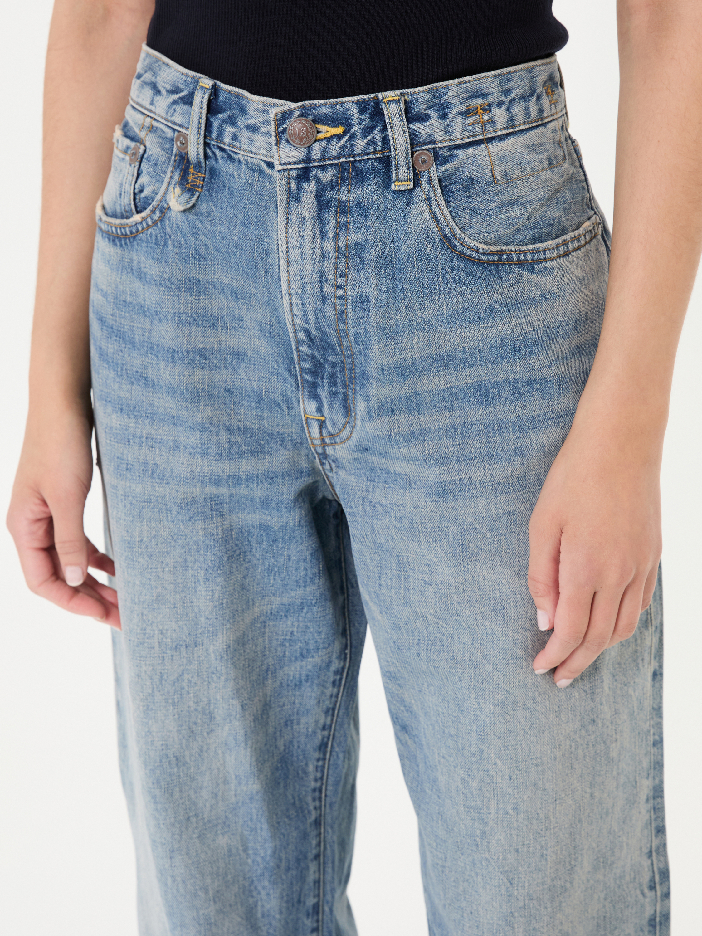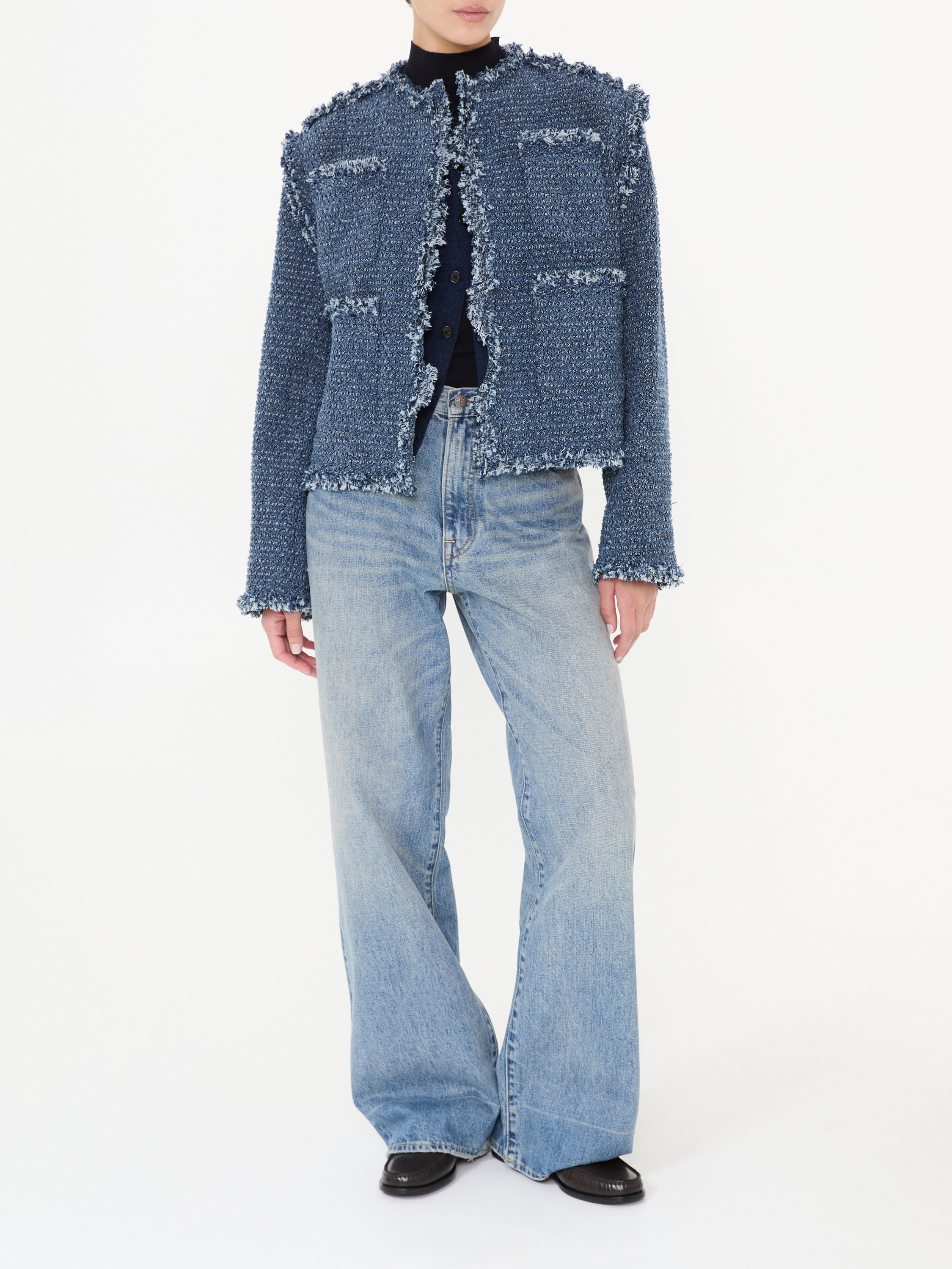 - Dezent ausgefranster Saumabschluss