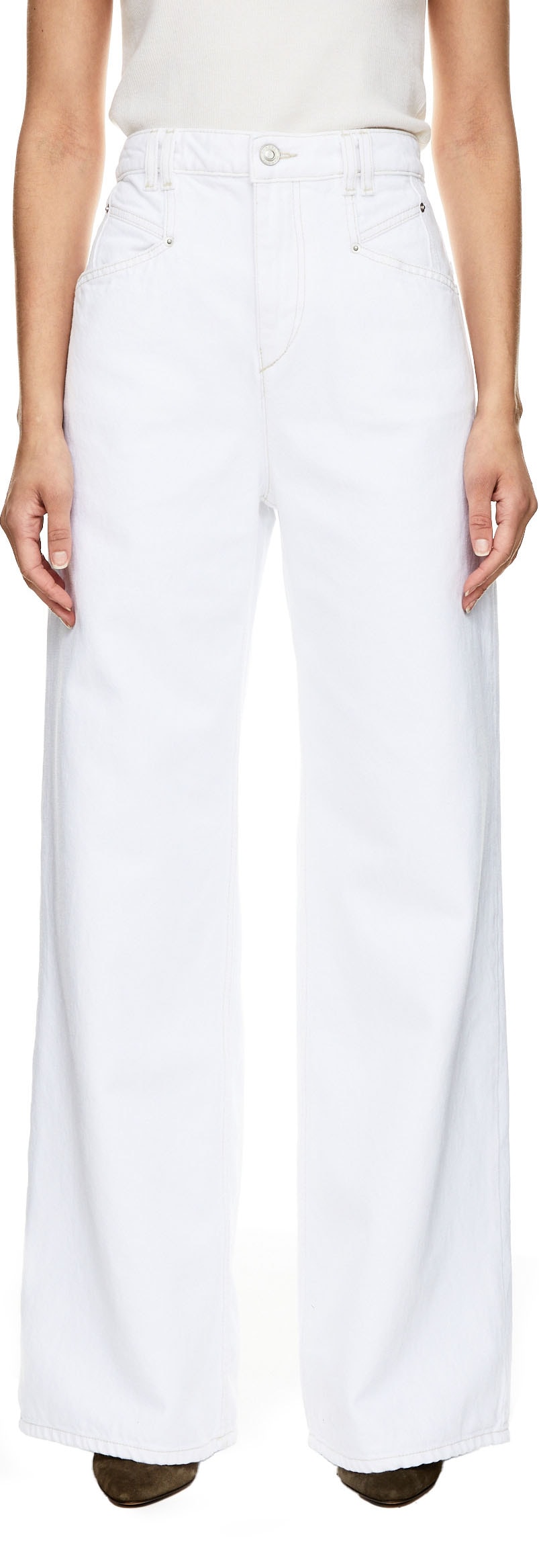 Die Jeans 'Lemony' in Weiß von Isabel Marant wurde aus reiner Baumwolle gefertigt und besticht durch das weit geschnittene Bein. Die kontrastierenden Nähte setzen dezente Akzente, während das rückseitige Logo-Patch aus Leder einen hochwertigen Abschluss bildet.