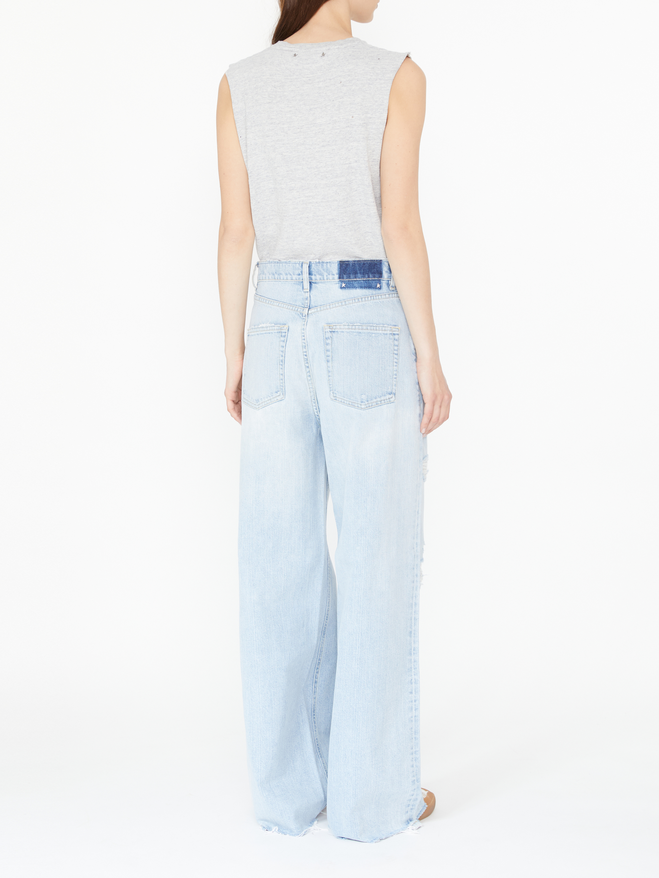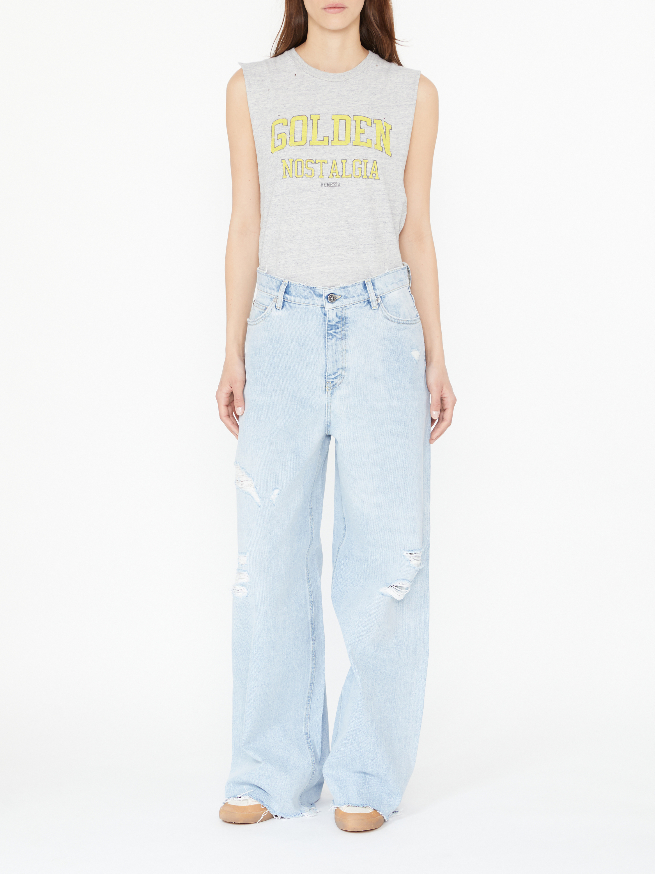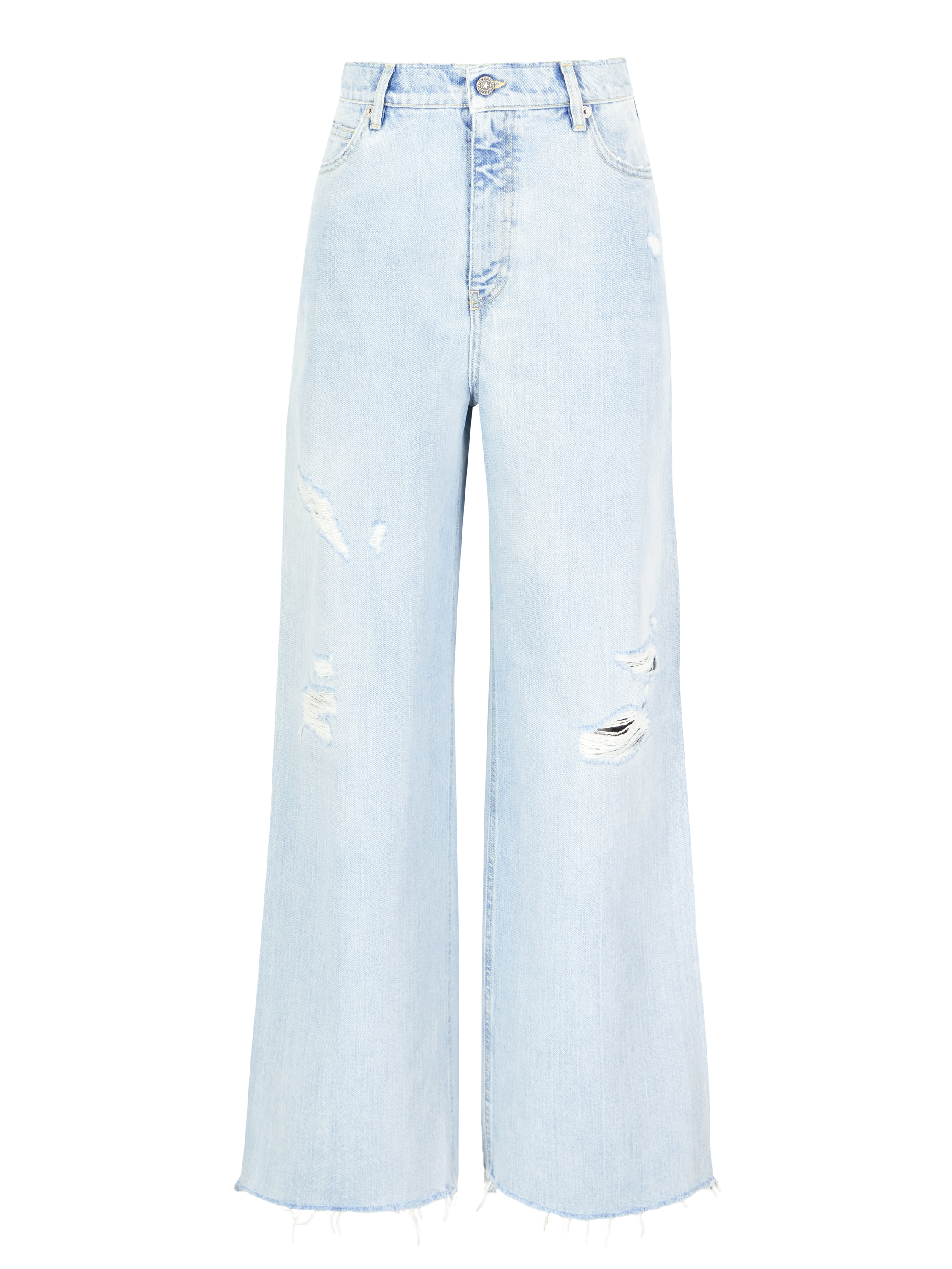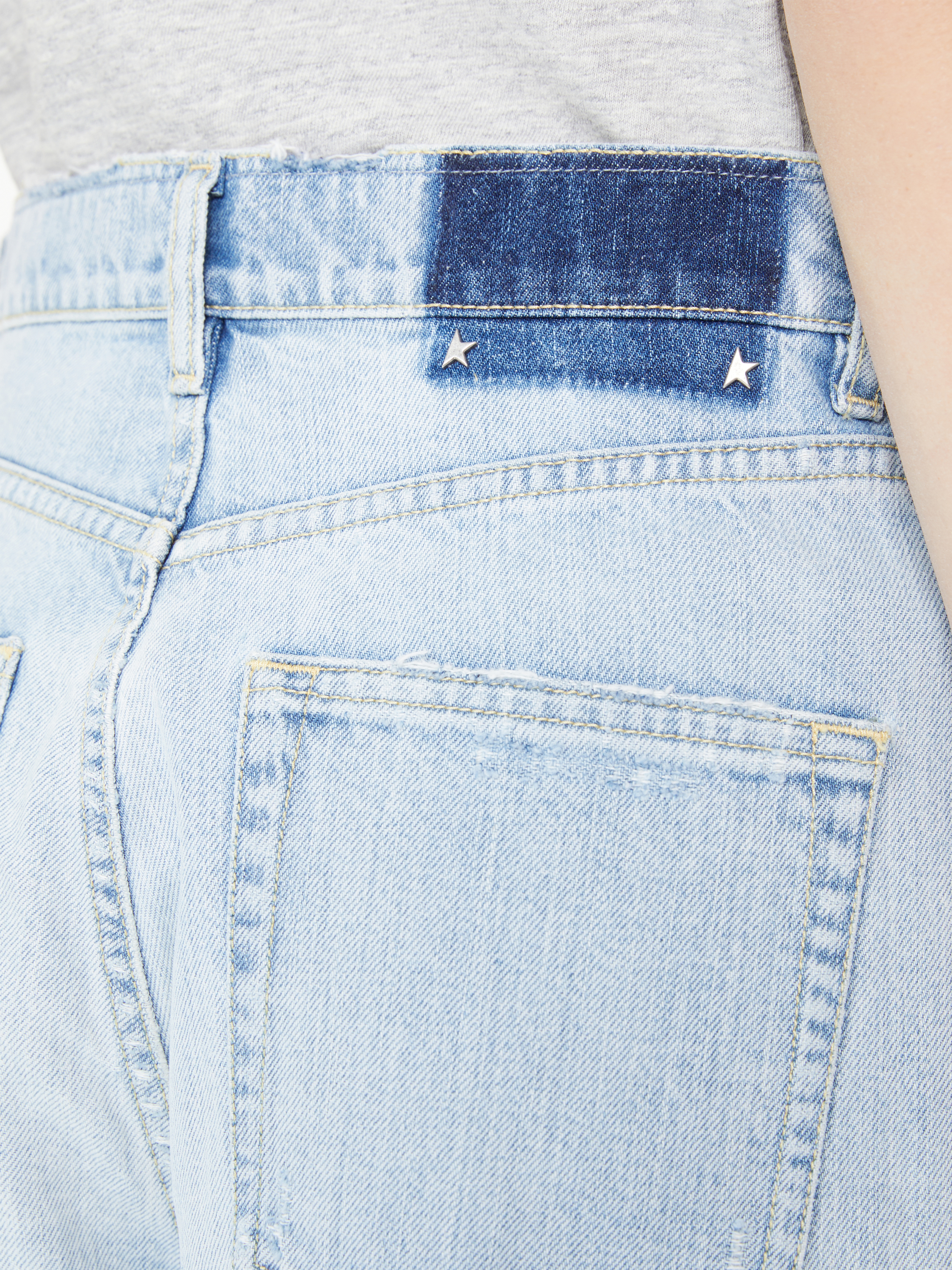 Die Jeans 'Melody' in Hellblau von GOLDEN GOOSE wurde aus reiner Baumwolle gefertigt und besticht durch den Used-Look. Das weite Bein, die Fransen und das 5-Pocket-Design zeichnen dieses hochwertige Modell aus. Die markentypischen Stern-Nieten auf der Rückseite verleihen der Hose einen modernen Touch.
